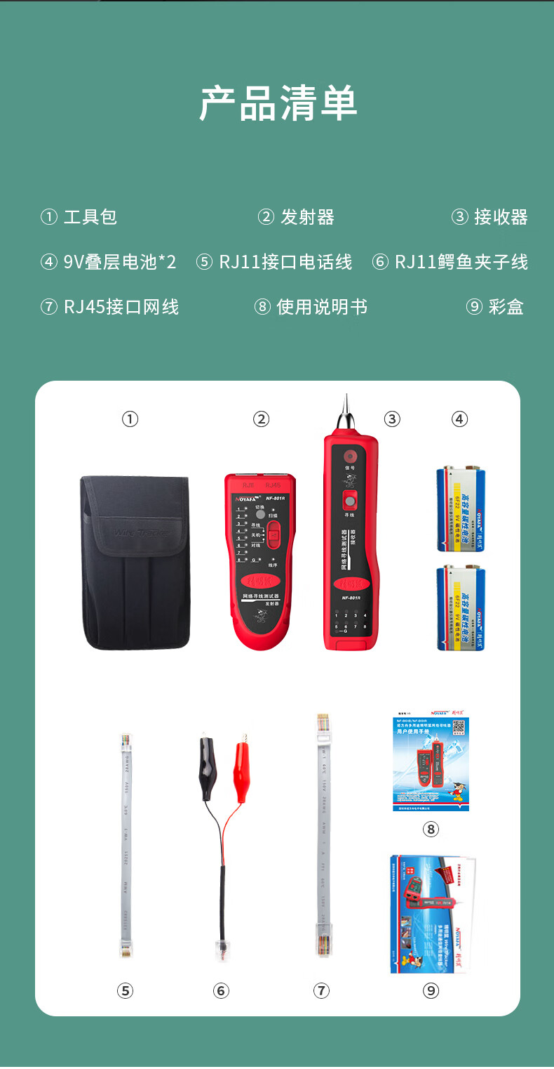 商品名称:精明鼠NF-801R寻线仪巡线仪网络寻线器网线测试仪测线仪测试仪器电工多功能套装防烧poe 新升级耐压60V可接交换机,高亮LED灯,声音更清晰,十年产品,性能稳定