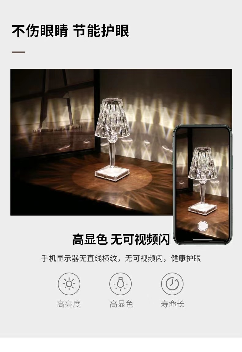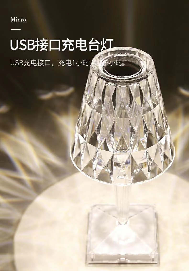 轻奢钻石台灯床头卧室创意水晶浪漫氛围充电小夜灯