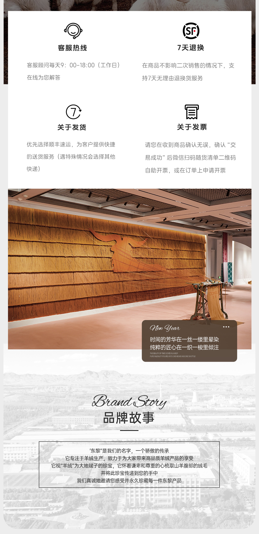 东黎羊绒是赤峰东荣集团自主品牌,自有牧场/羊绒制品全产业链优势,实现了羊绒从“牧场”到“商场”的华丽转变。