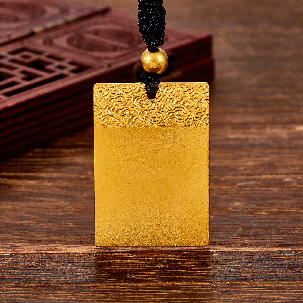 【限时克减150元】足金999 古法平安无事方牌吊坠含珠挂绳无事牌吊坠(厚约1.4mm)(YGFDZ00002-3)(预售产品下单后不退款不退货不换货不补差价)