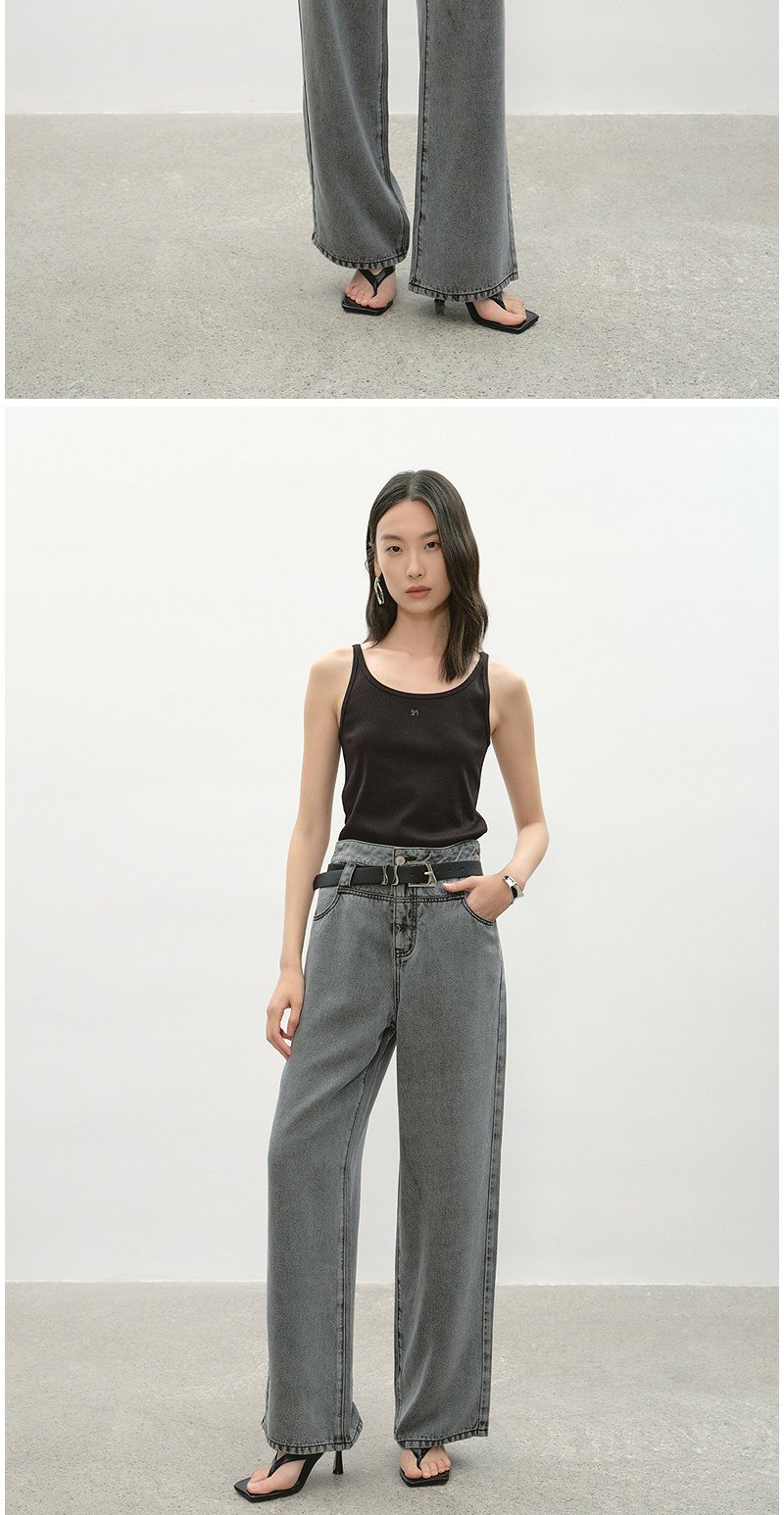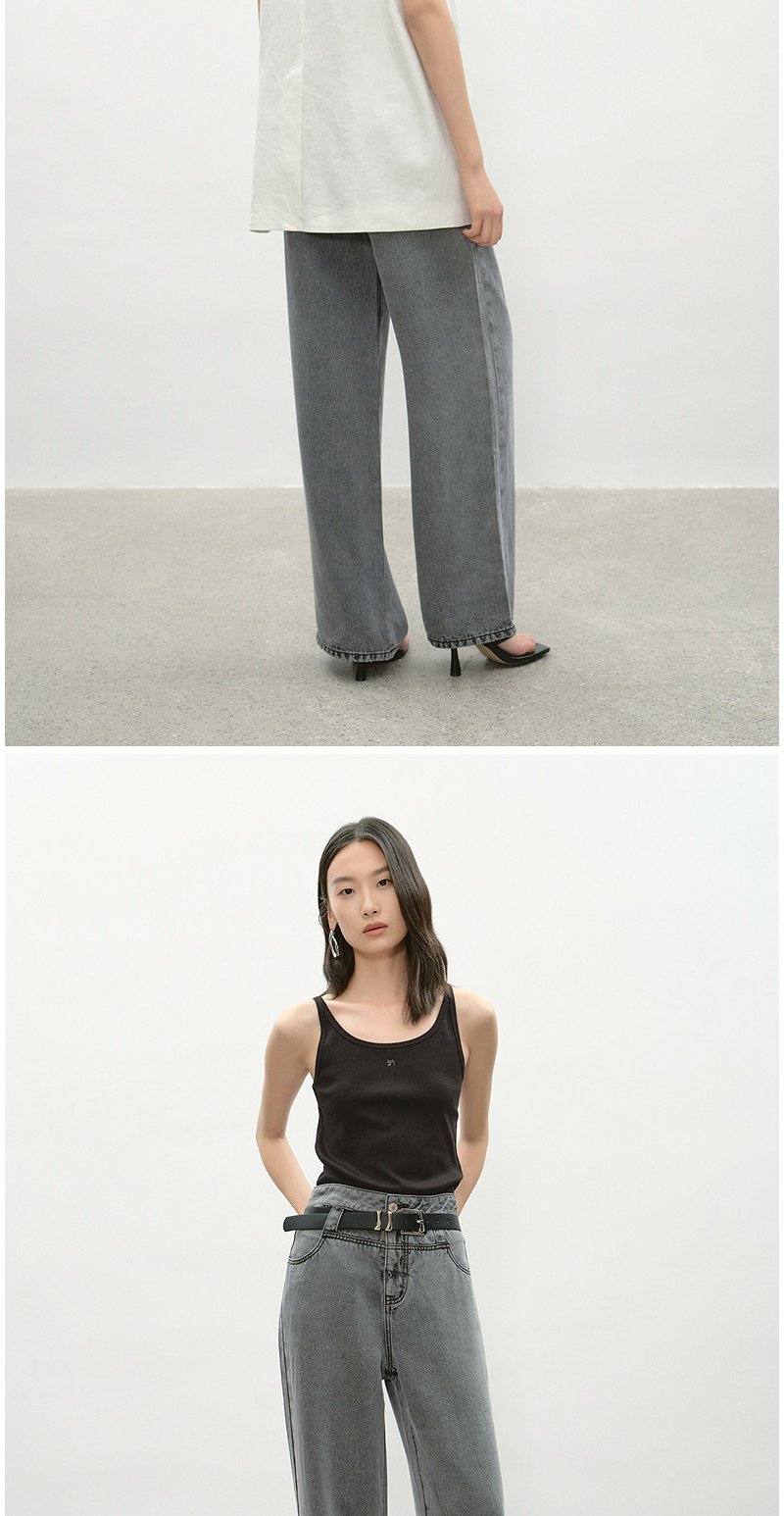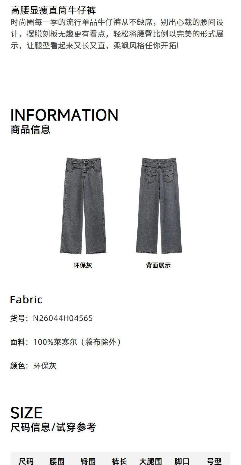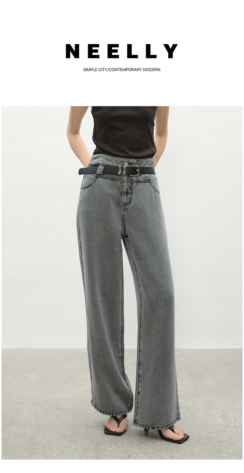 NEELLY纳俪商场同款夏季新款时尚高腰直筒牛仔裤女复古烟灰阔腿裤N26044H04565