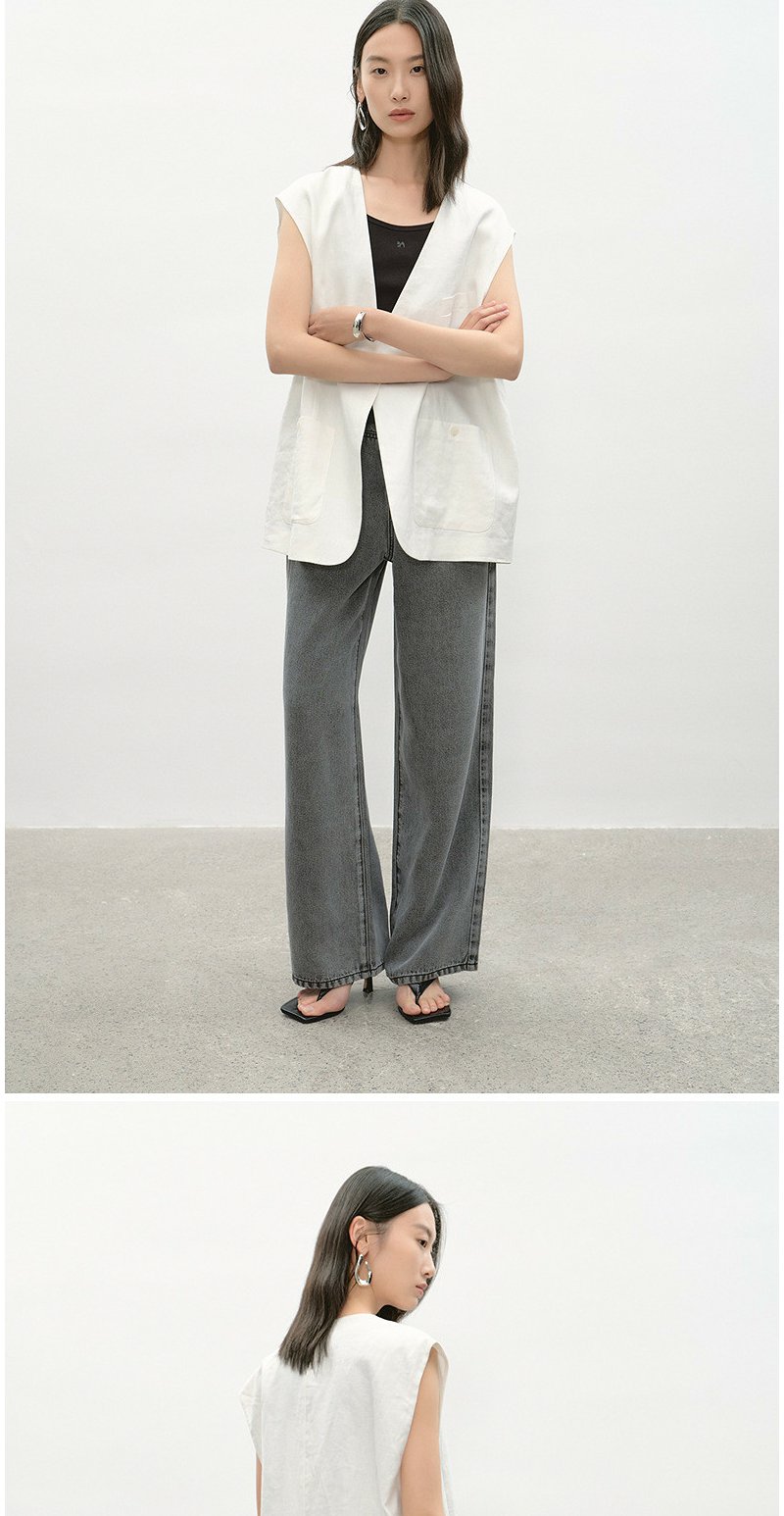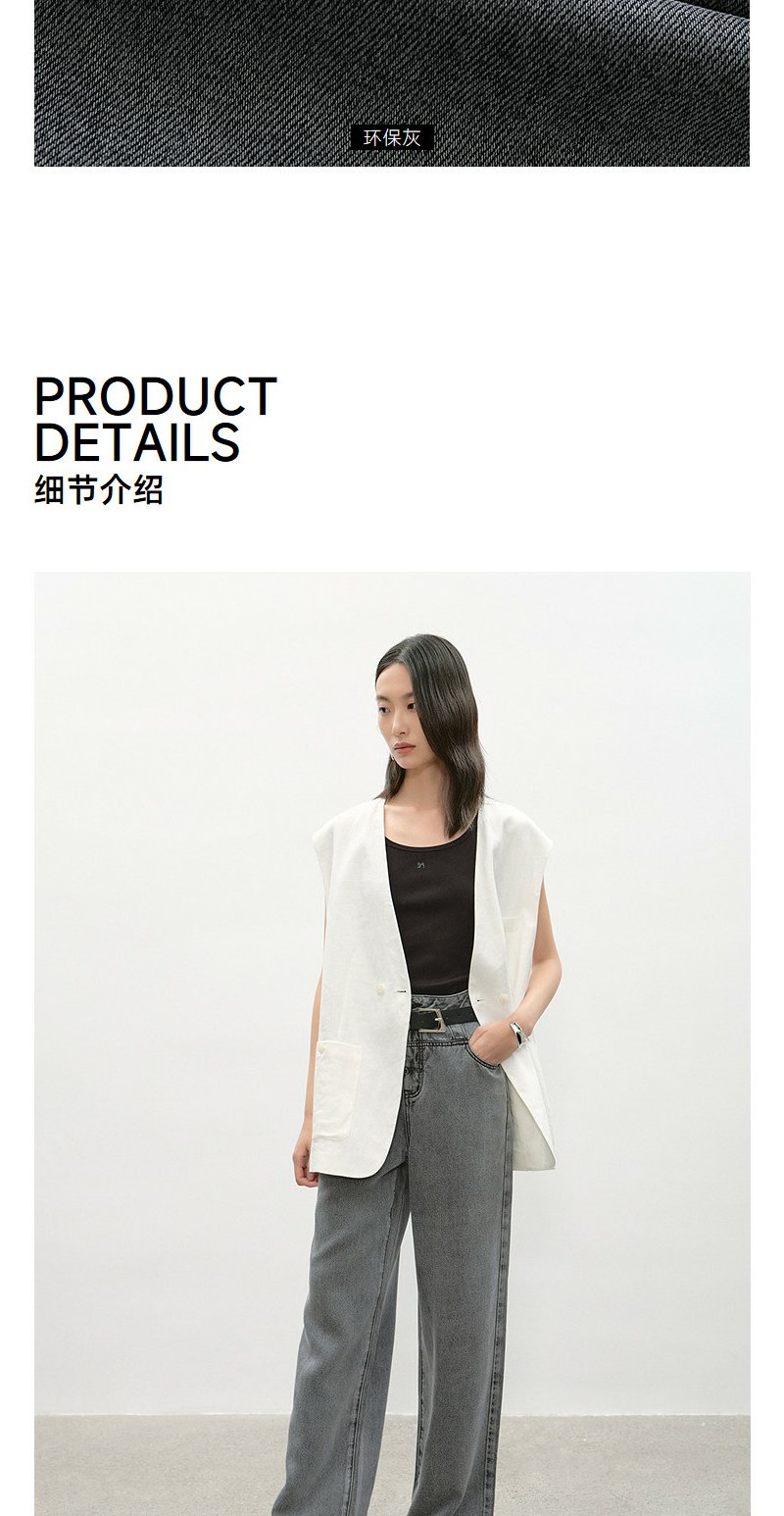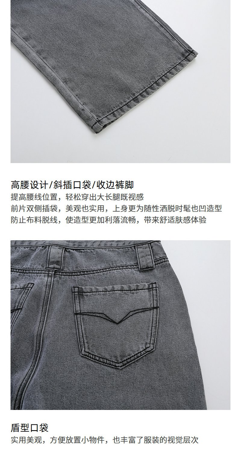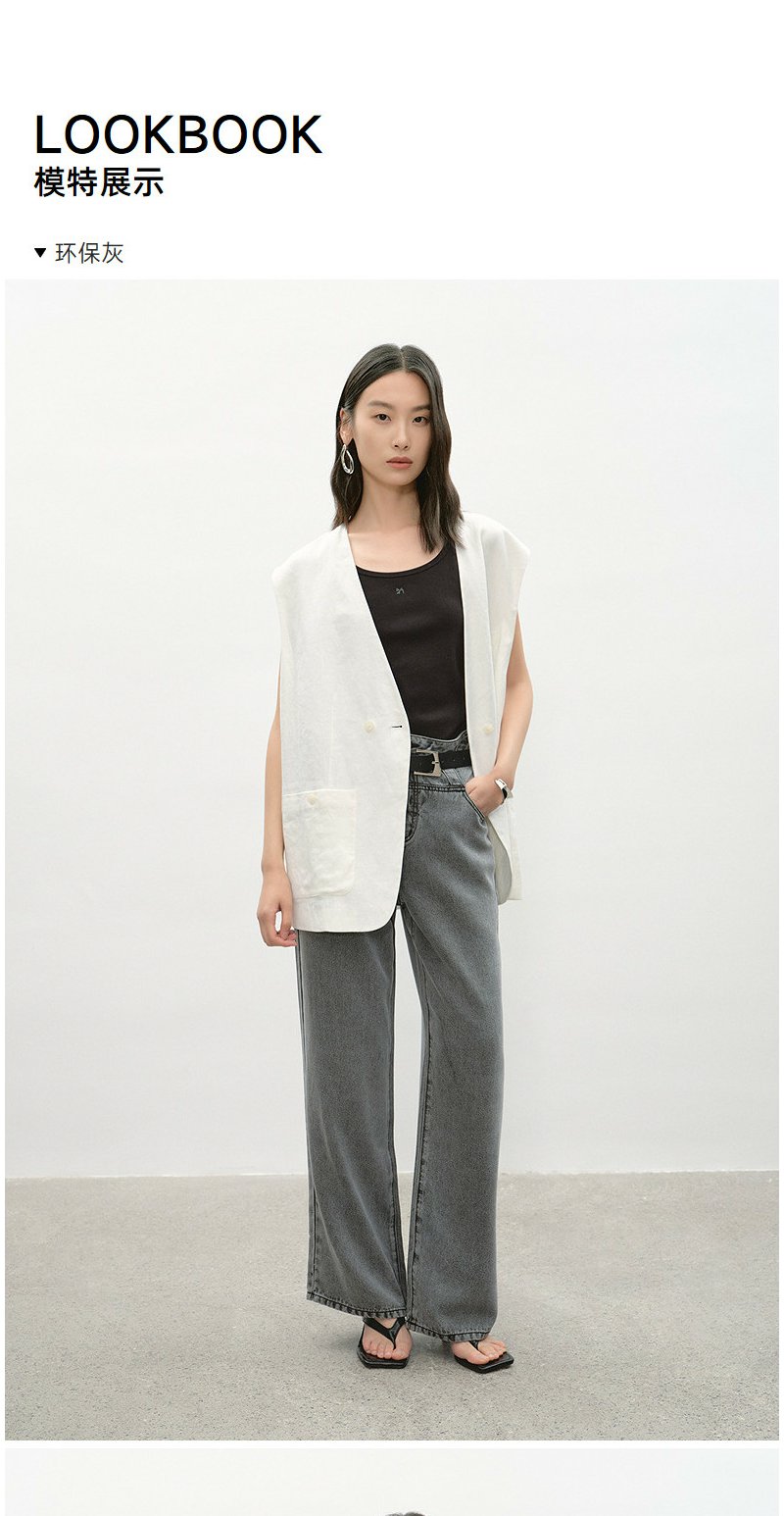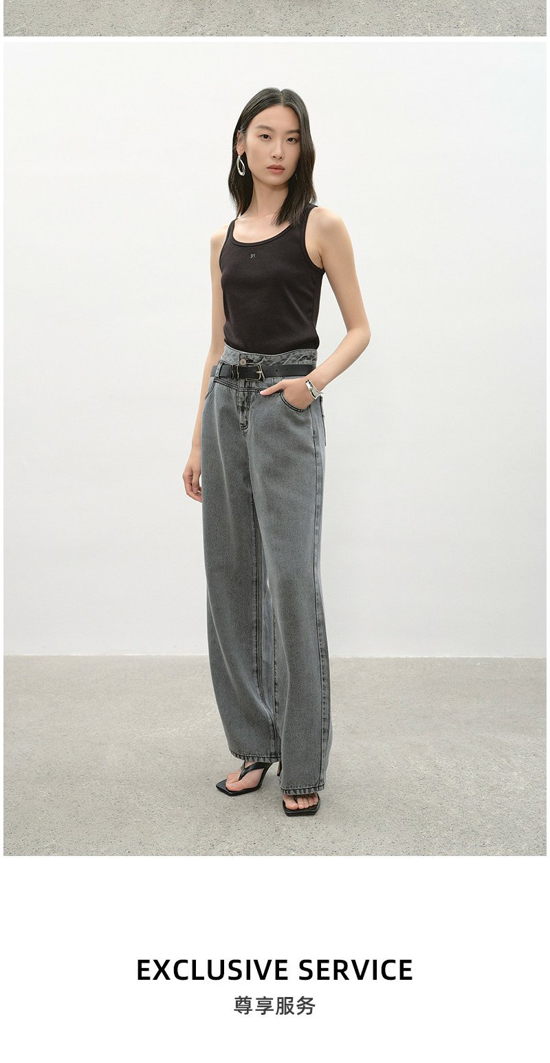 NEELLY纳俪商场同款夏季新款时尚高腰直筒牛仔裤女复古烟灰阔腿裤N26044H04565