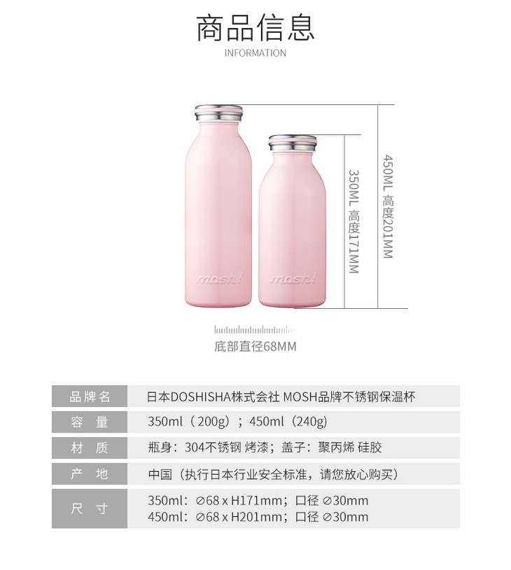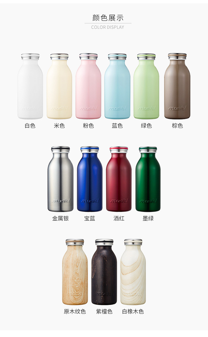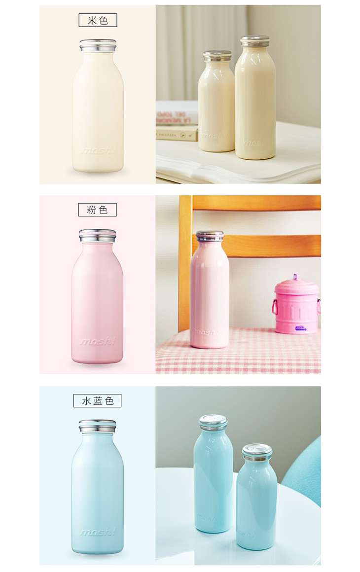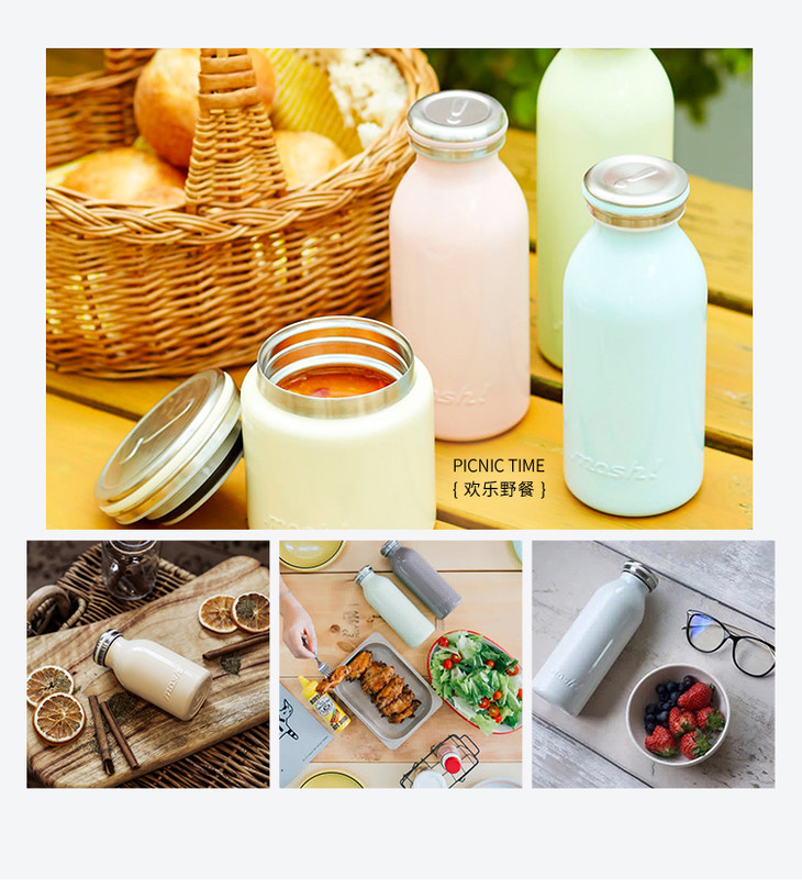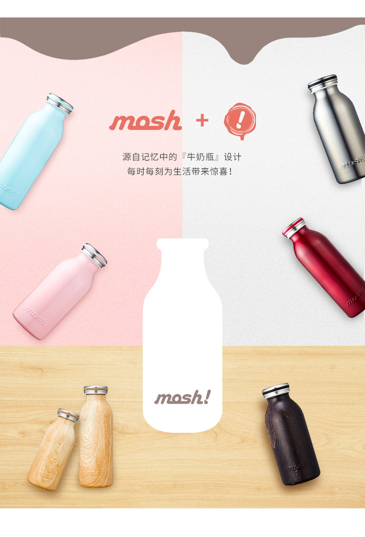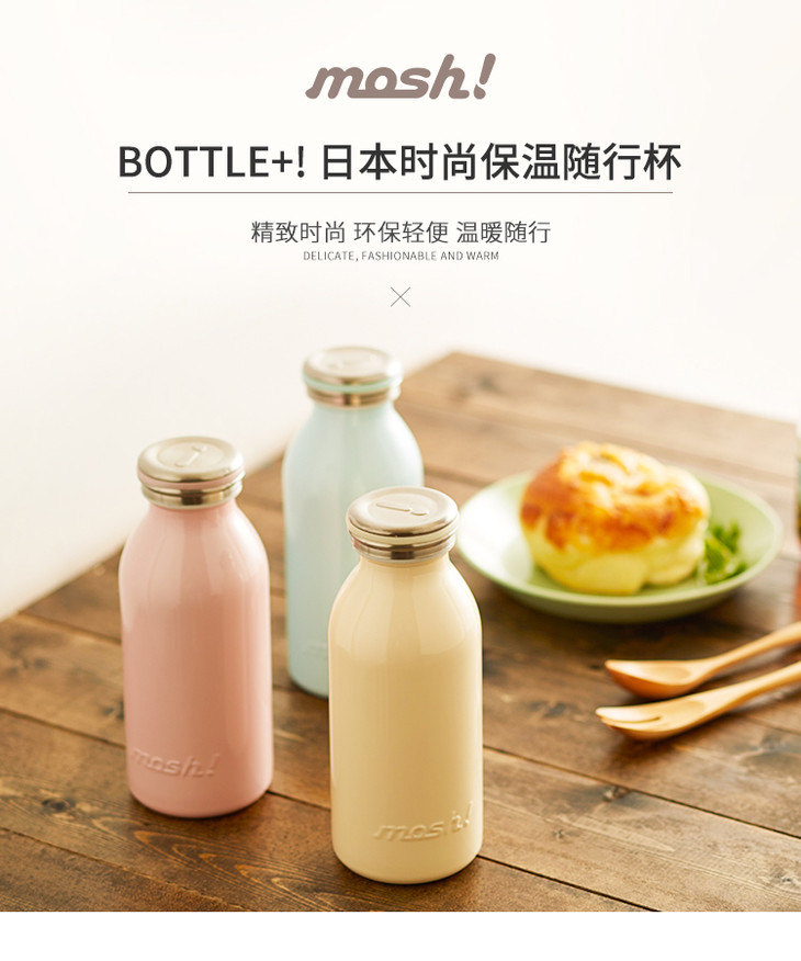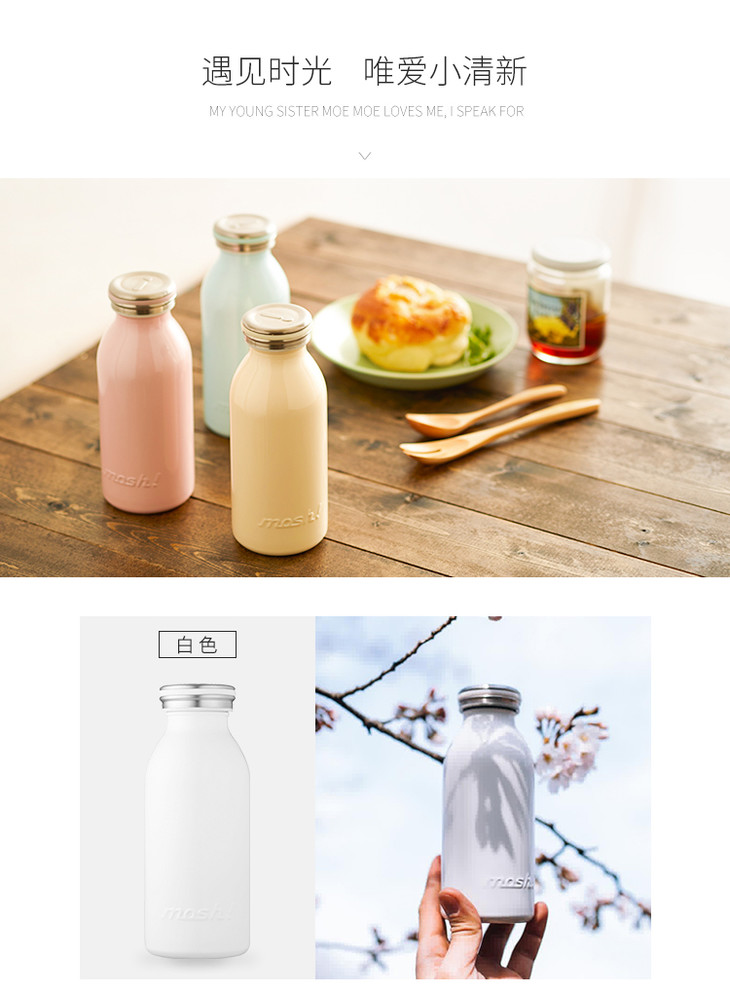 日本进品牌mosh! 保温杯牛奶杯350ml可爱小清新学生保温水壶