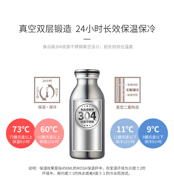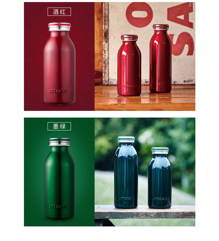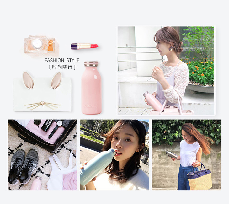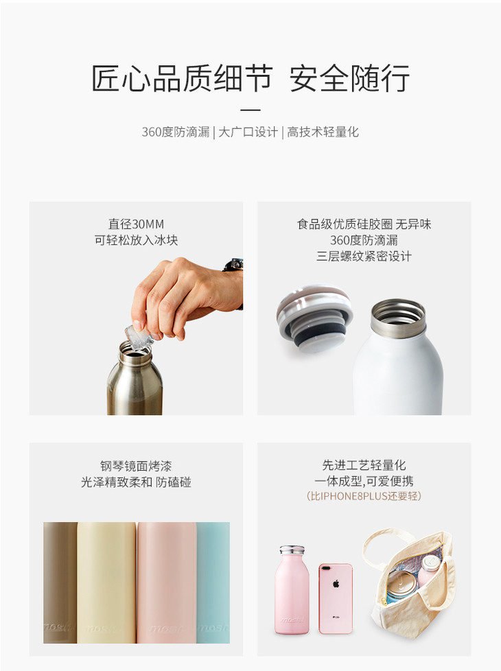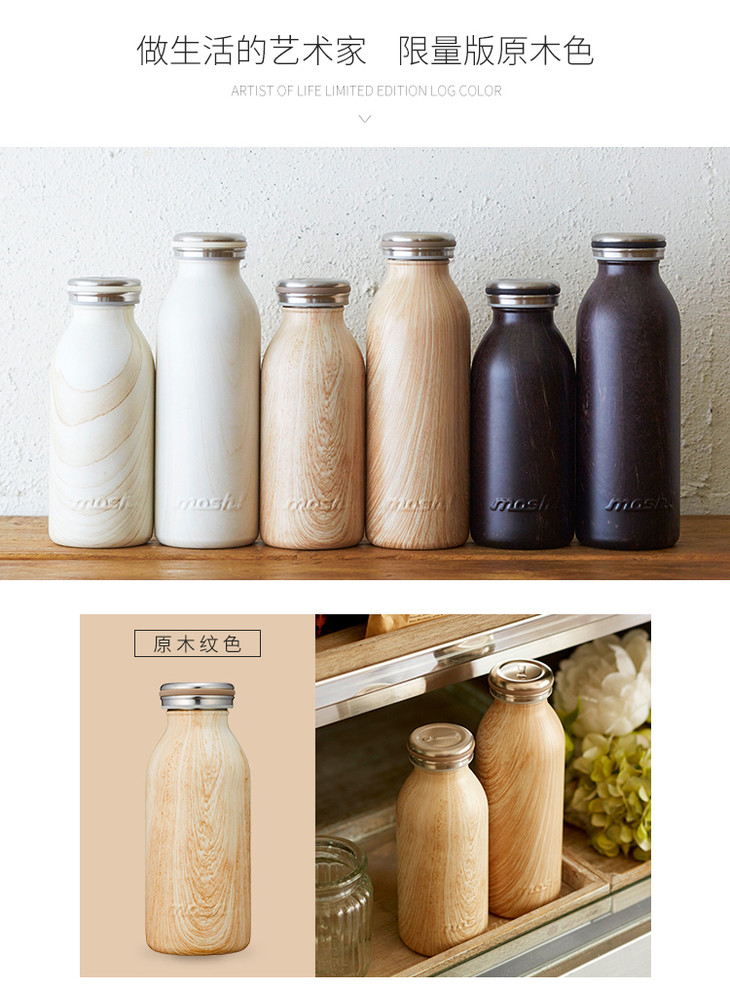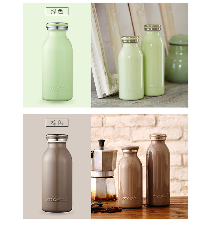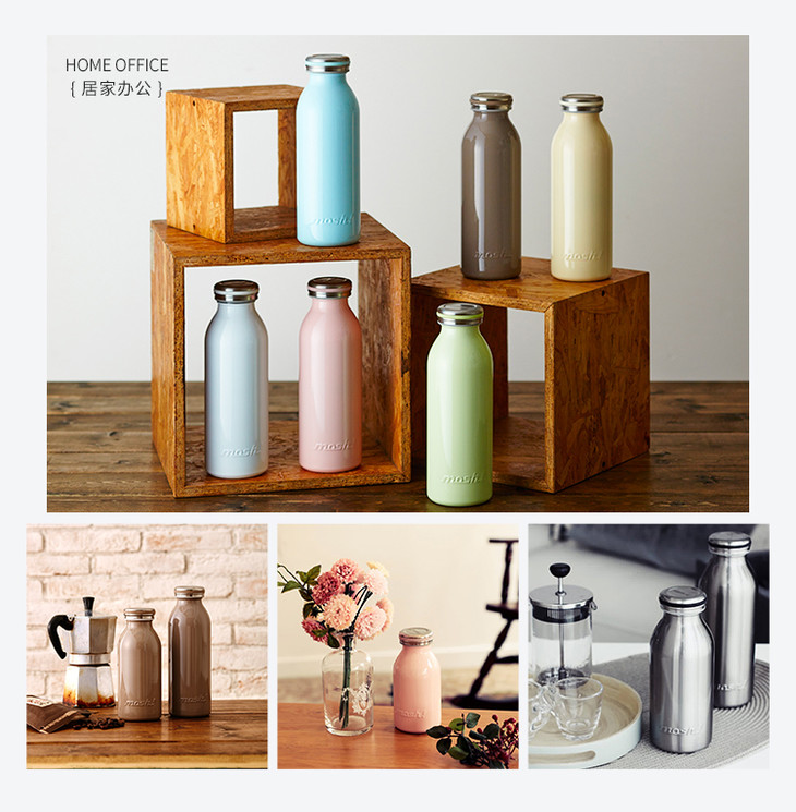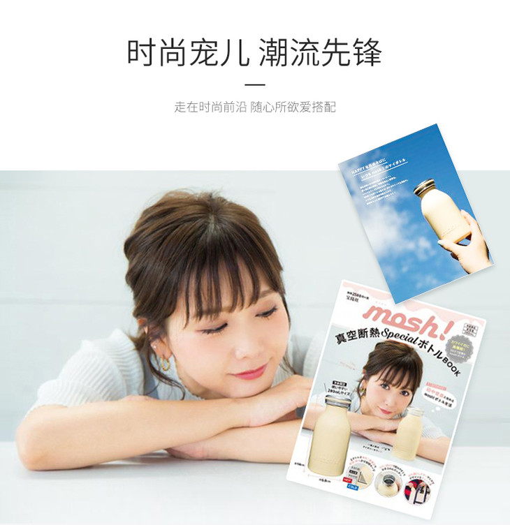 日本进品牌mosh! 保温杯牛奶杯350ml可爱小清新学生保温水壶