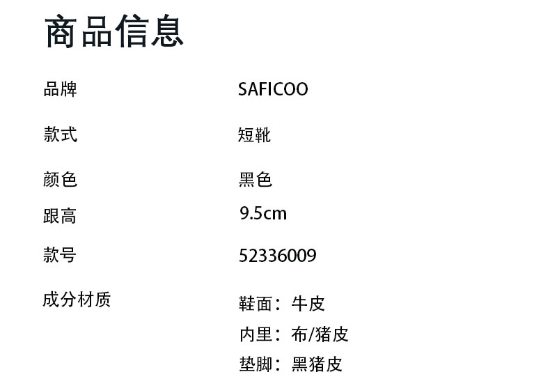 SAFICOO 秋冬新款 真皮高跟尖头 细跟短靴