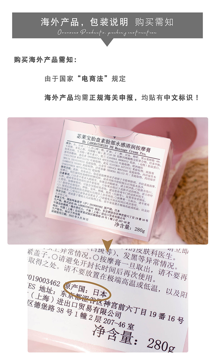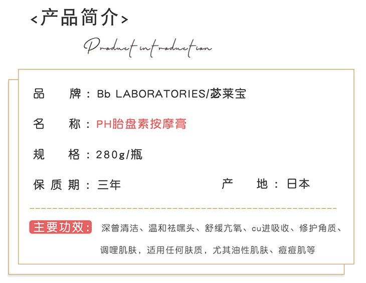 日本Bb LABORATORIES/苾莱宝脸部胎盘素深层清洁ph按摩膏