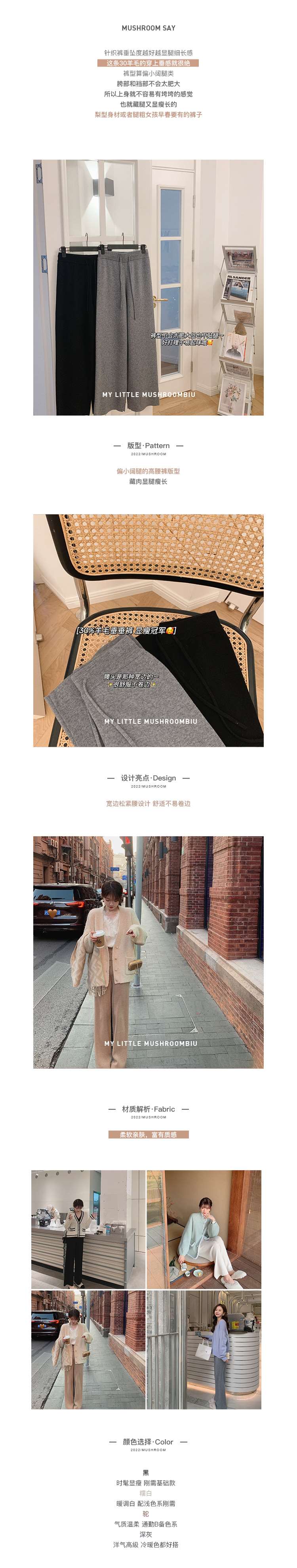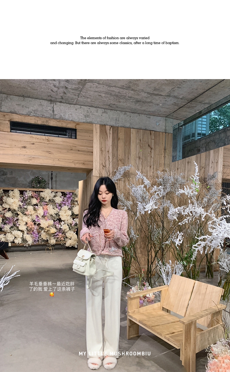 金蘑菇菇【羊毛垂垂裤 糯白 L 】藏肉也太厉害了吧?巨显瘦垂坠质感休闲裤