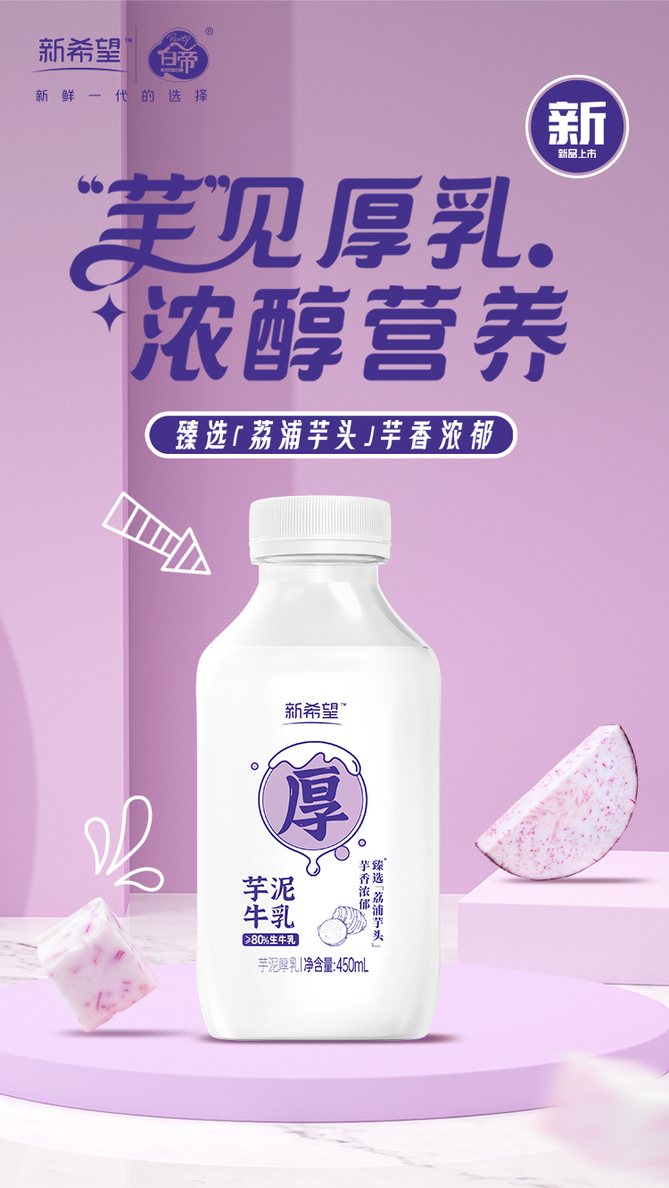 【新希望霓虹丸丸芋泥厚乳】450ml*4瓶生牛乳冷鲜低温营养学生早餐奶