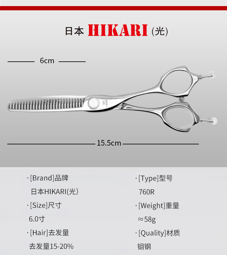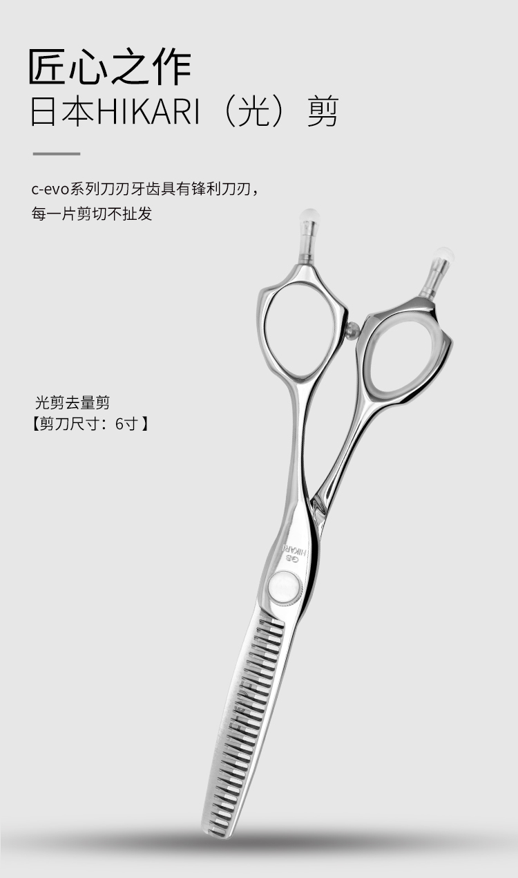 HIKARI光剪c-evo 760R 剪刀 女发牙剪/无痕牙剪/调量剪/打薄剪/去发量15-20% /正刃/6寸