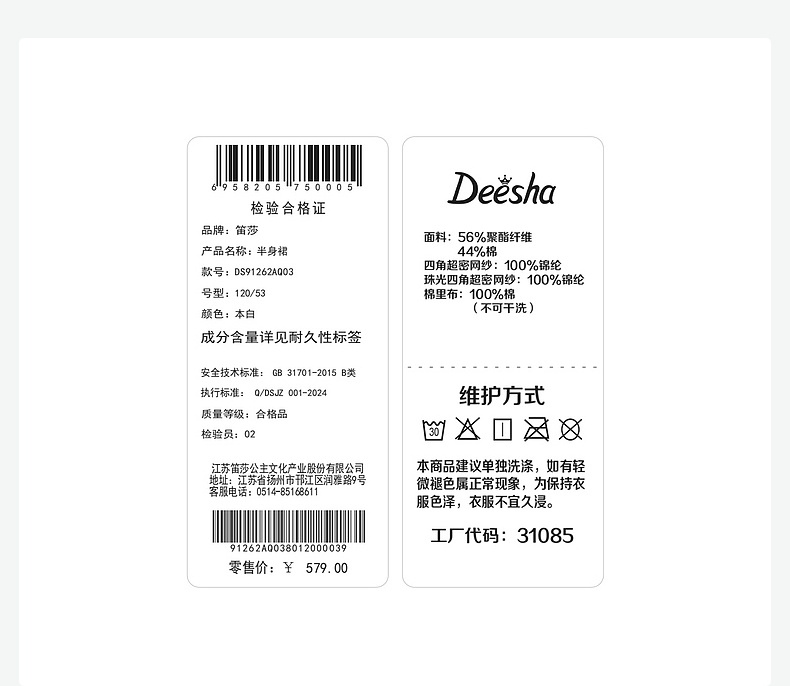笛莎/Deesha 2026年夏季新款中童半身裙P精致公主半身裙