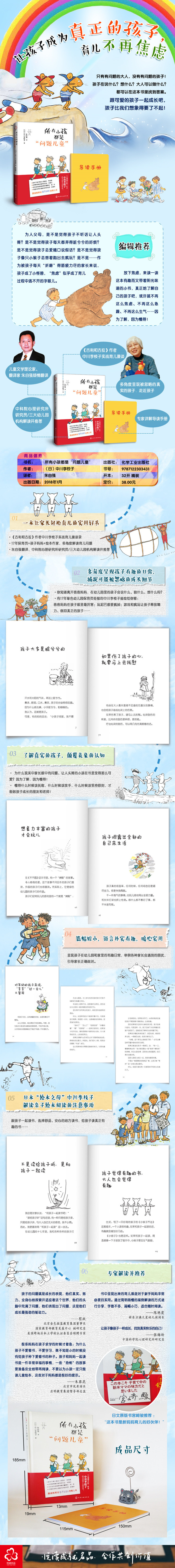 绘本作家,多角度解读育儿问题。2.朱自强翻译并作序,中科院心理研究所研究员张梅玲/北京金色摇篮教育集团董事长、国家教育部教育发展中心副研究员程跃/新东方满天星幼儿园园长陈艳霞/启明教育集团督导部总监朱葵花共同解读并推荐。3.篇幅短小,简单易懂,暖心实用。4.呈现孩子成长生活的有趣日常,举例孩子成长中家长遇到的各种问题,引导家长正确面对成长中的小孩。