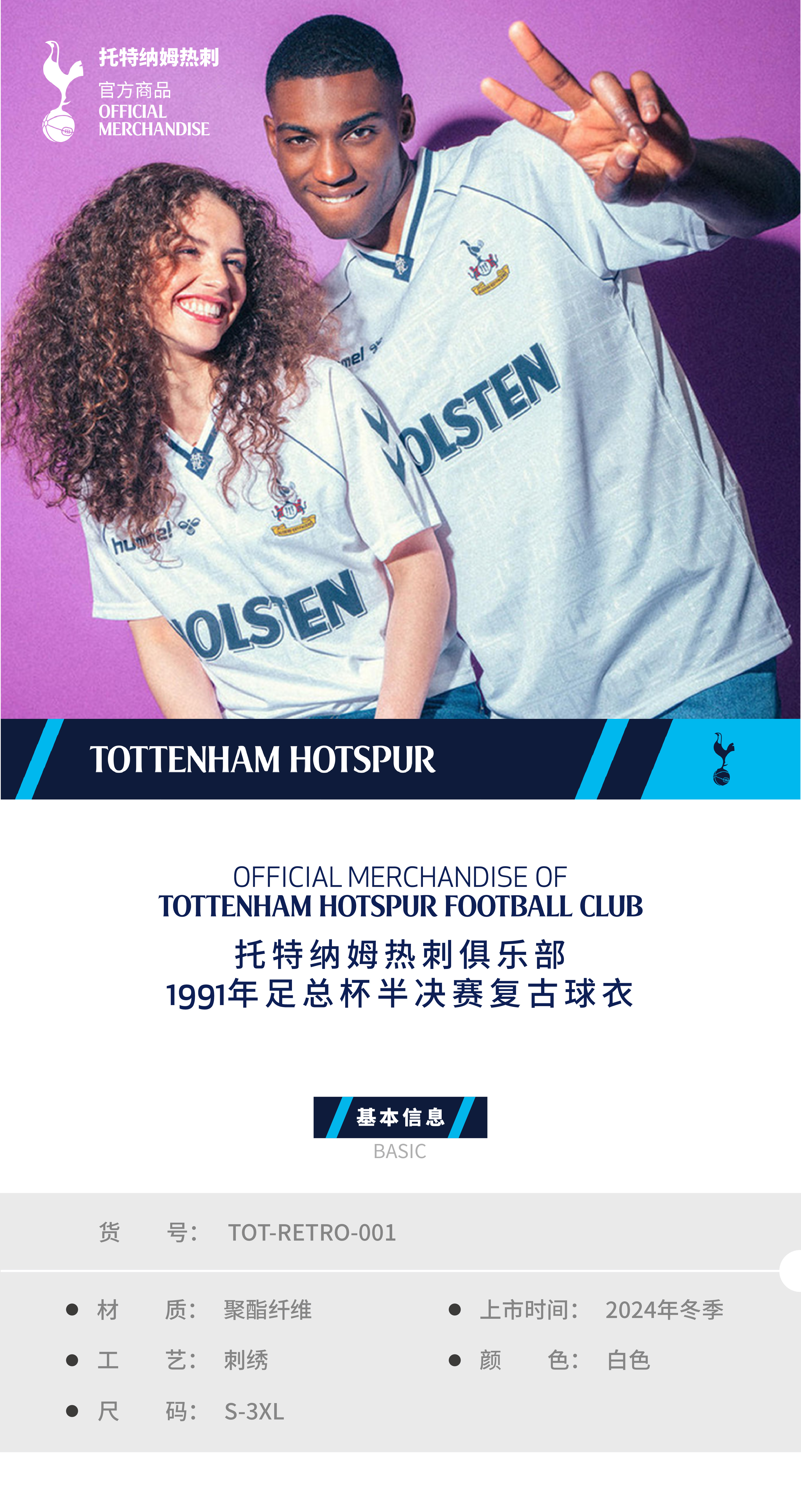 【官方正版】托特纳姆热刺俱乐部 | 1991复古球衣训练服