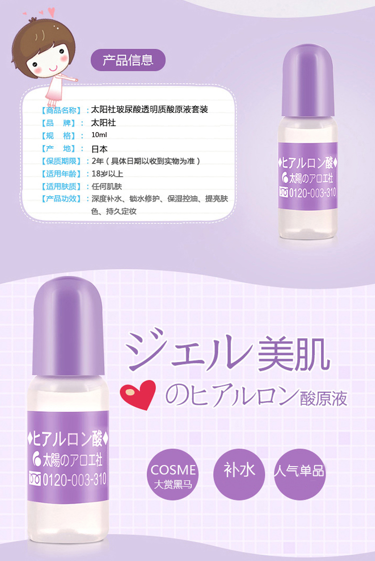 OSME大赏 正品日本太阳社玻尿酸原液10ml 透明质保湿精华液