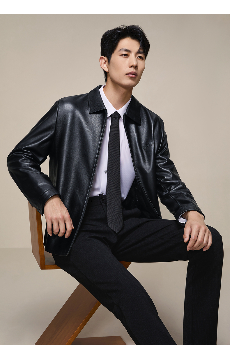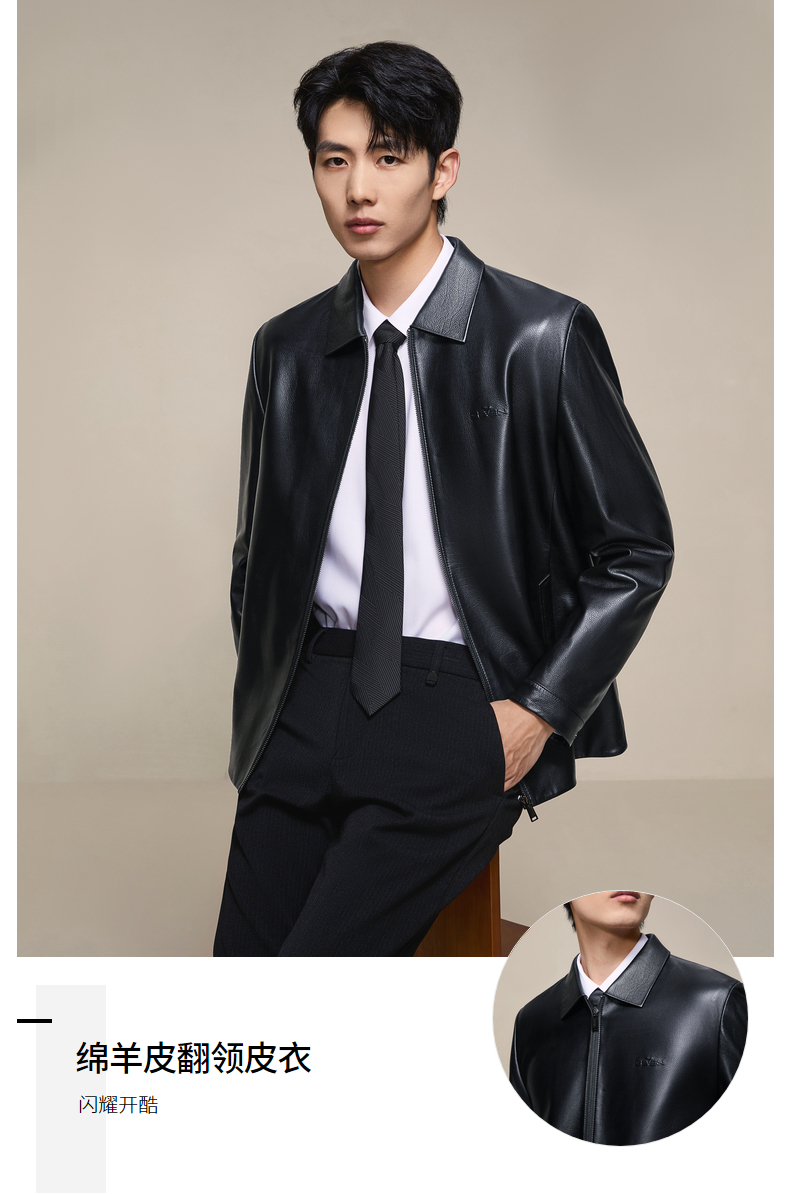 【绵羊皮】柒牌男装皮衣2025秋冬新品翻领商务百搭防风工装外套129J70400