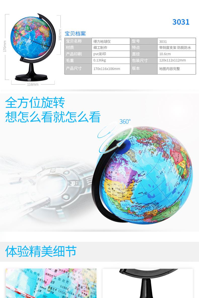 得力3031桌面迷你地球仪办公学生地理教学用品直径10.6cm批发