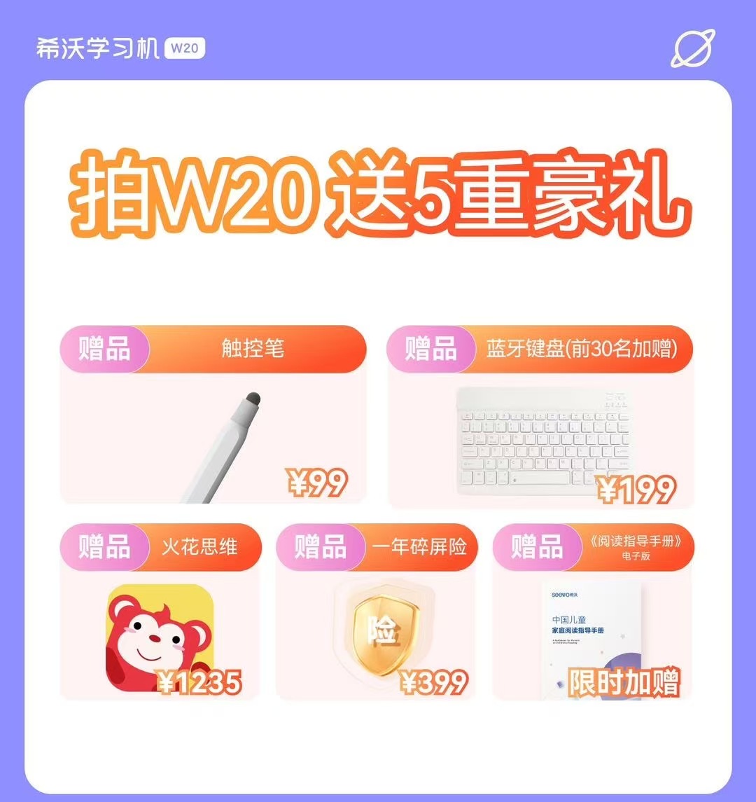 希沃学习机W20儿童启蒙小初高通用ai学习平板seewo