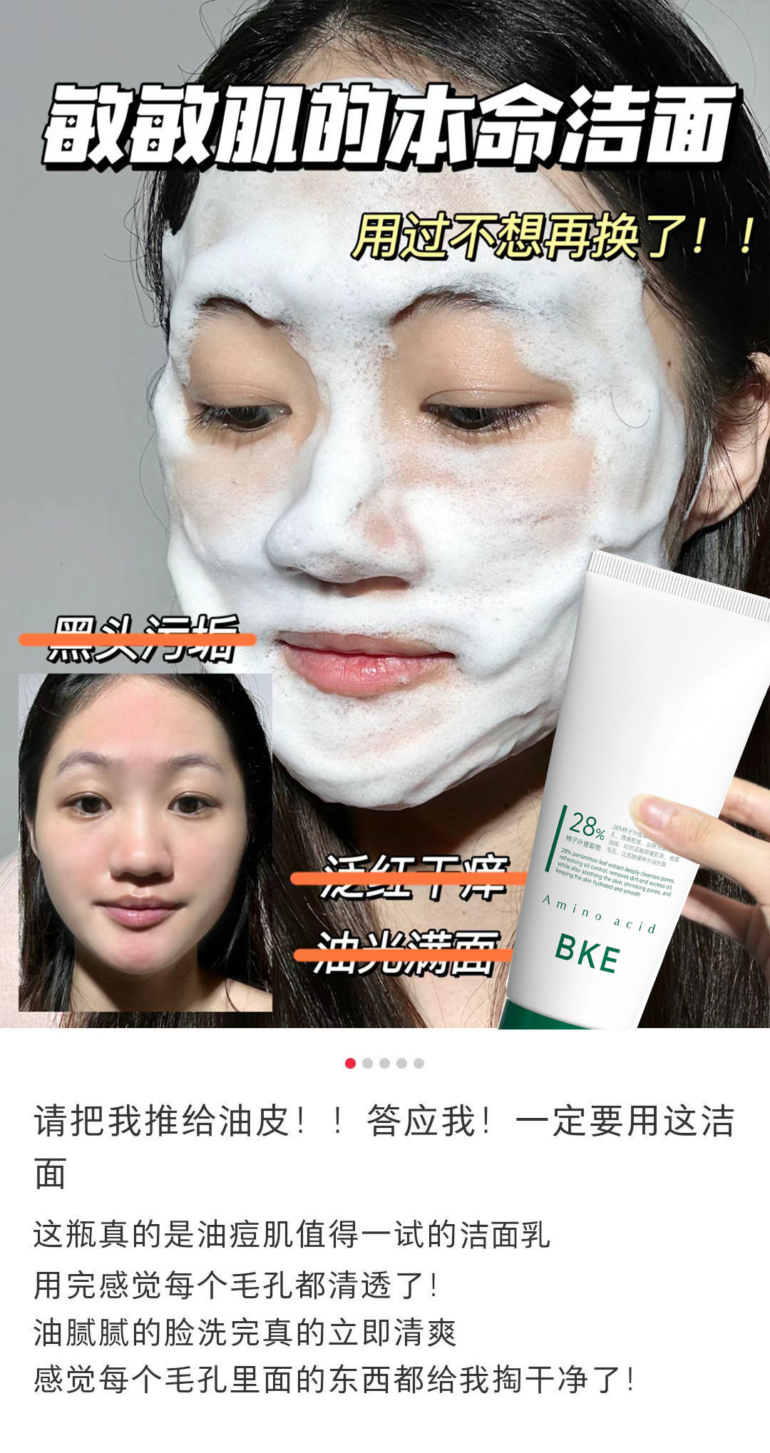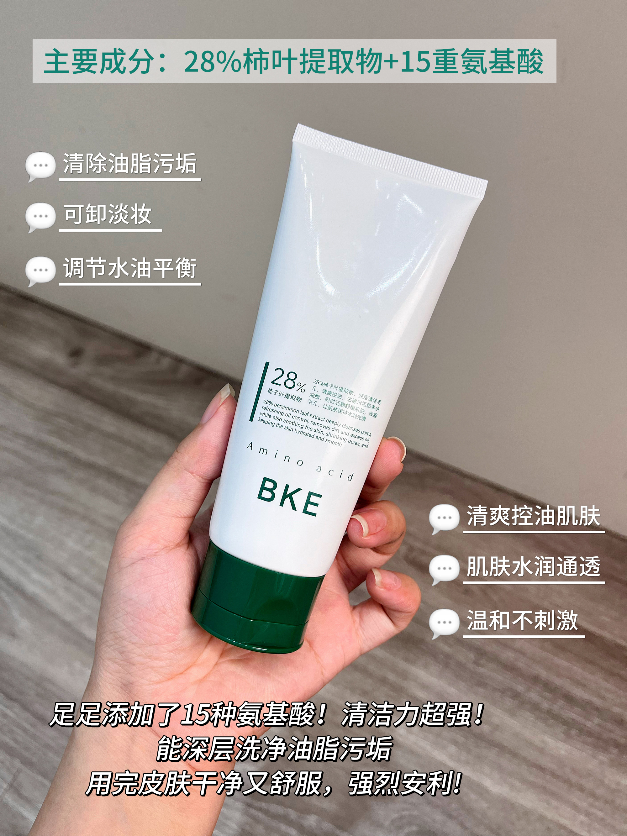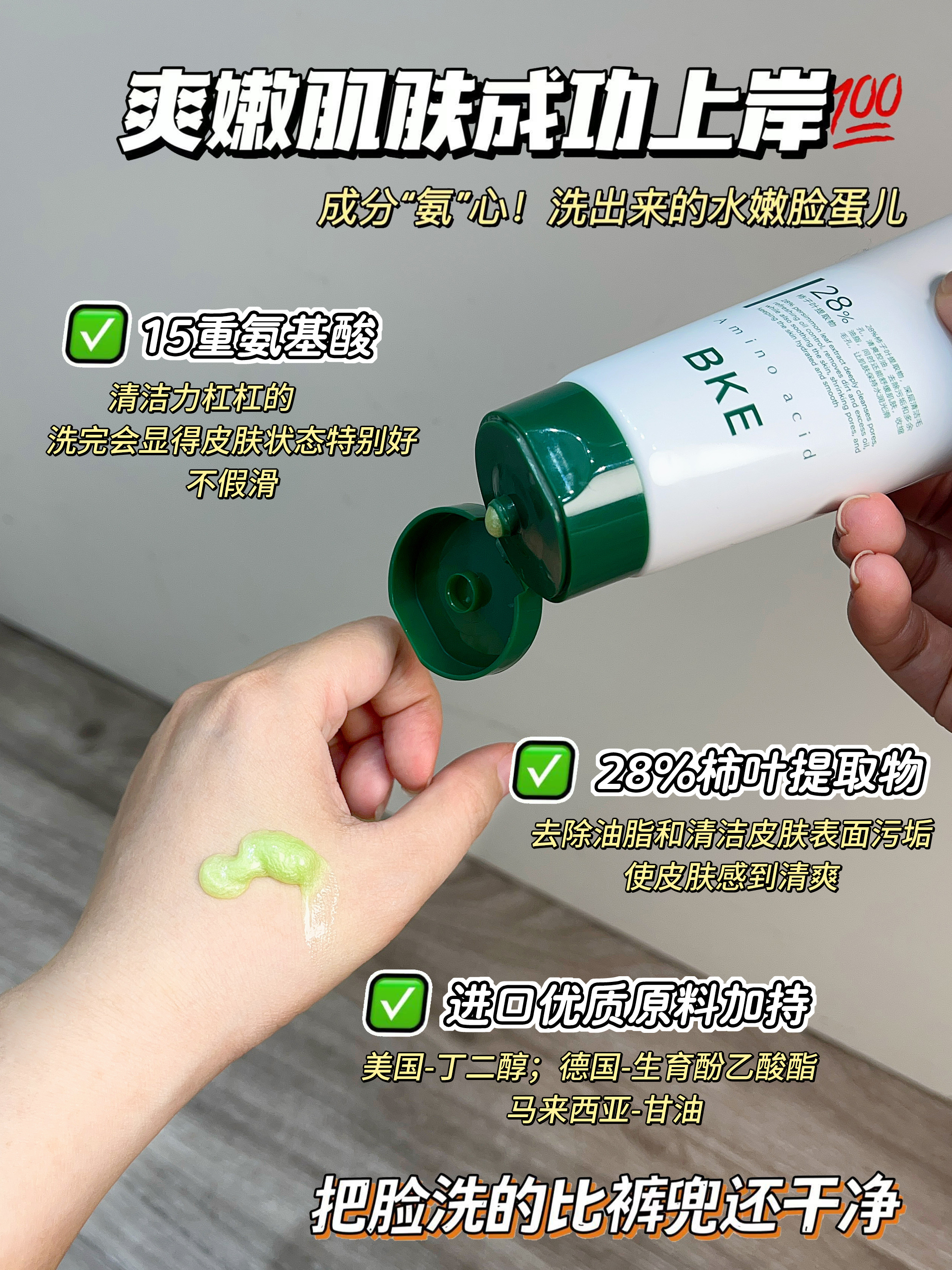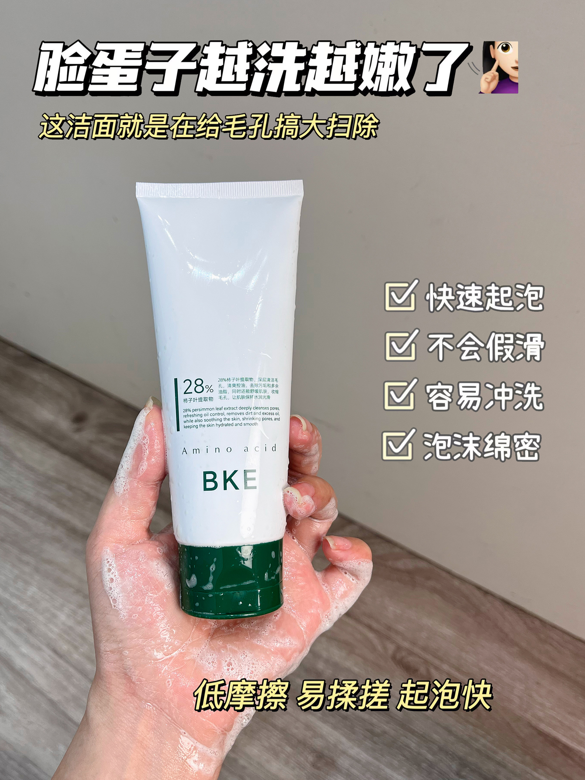 黑头星人狂爱❗❗脸越洗越嫩😎平价洁面王者【BKE柿叶氨基酸洁面膏】洗完脸滑溜溜的呢~日常淡妆可直接卸妆!越洗肌肤越透亮