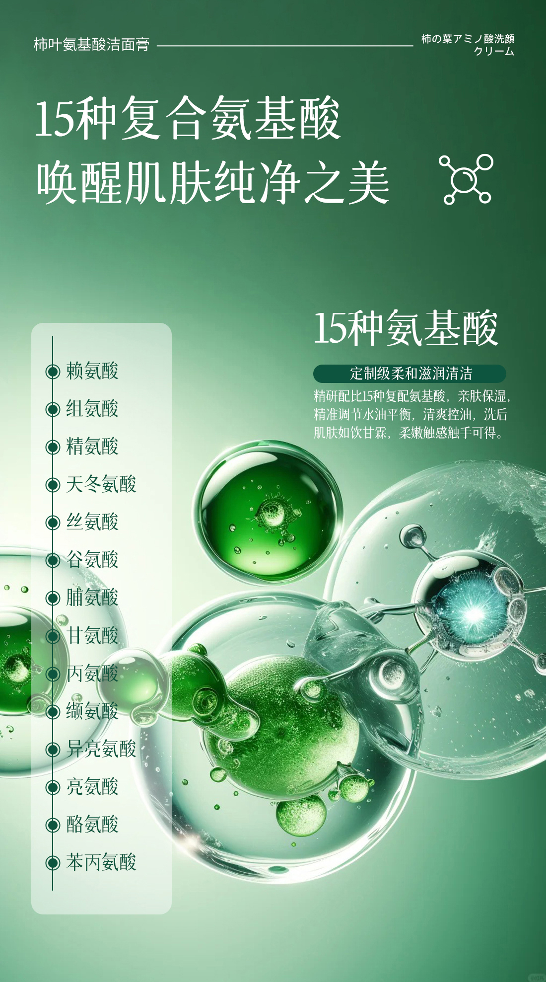 精研配比15种复配氨基酸,亲肤保湿精准调节水油平衡,清爽控油,洗后肌肤如饮甘霖,柔嫩触感触手可得