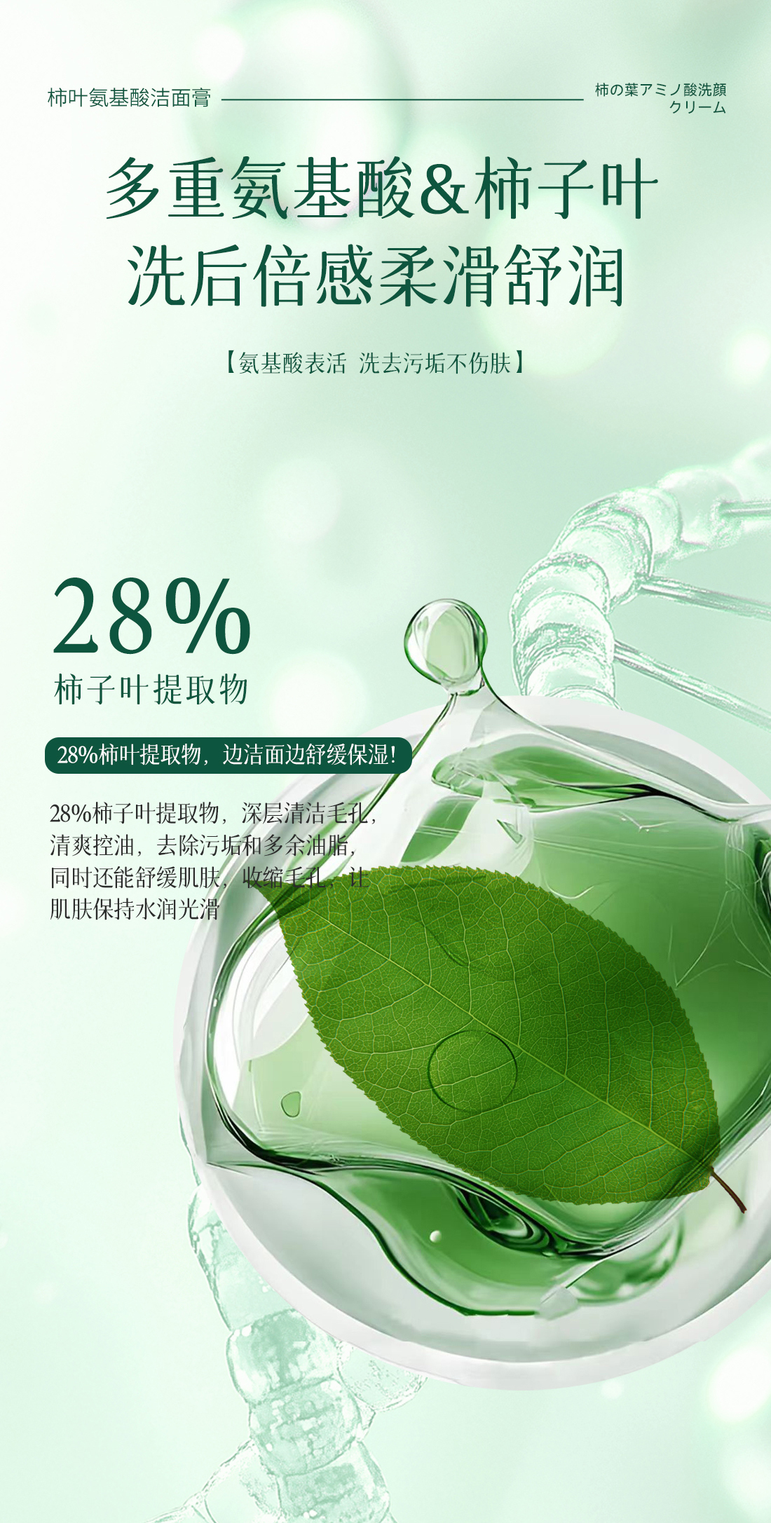 ✅28%柿叶提取物添加,边洁面边舒缓保湿!