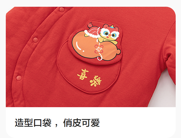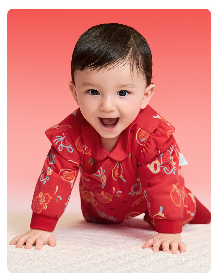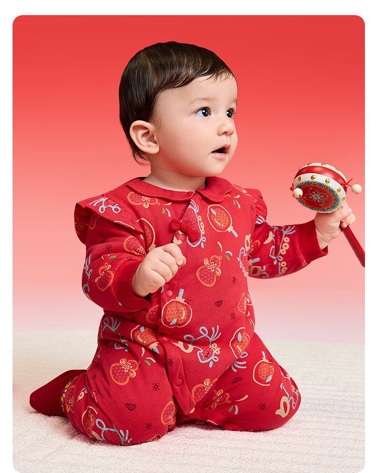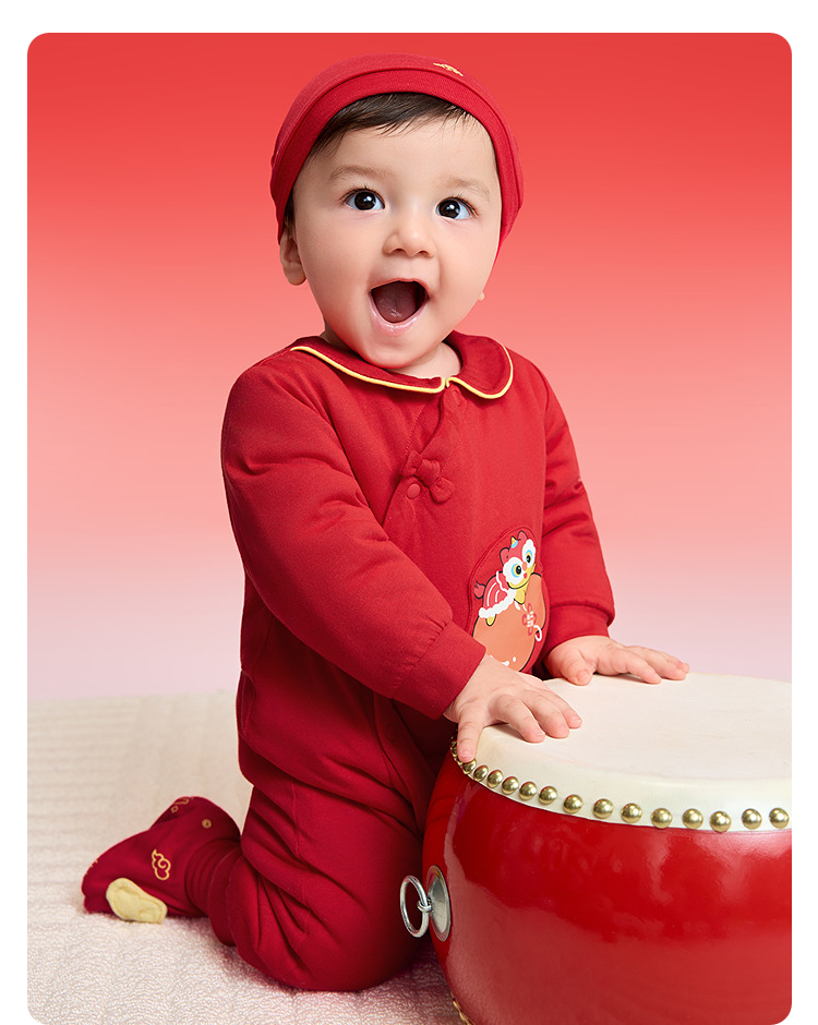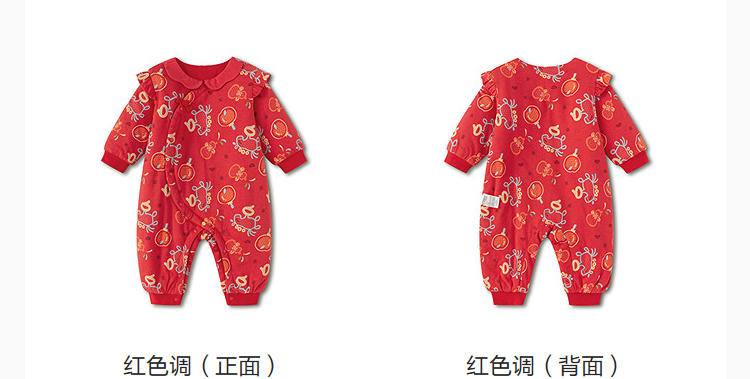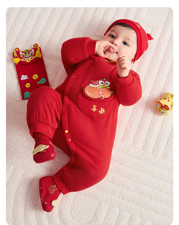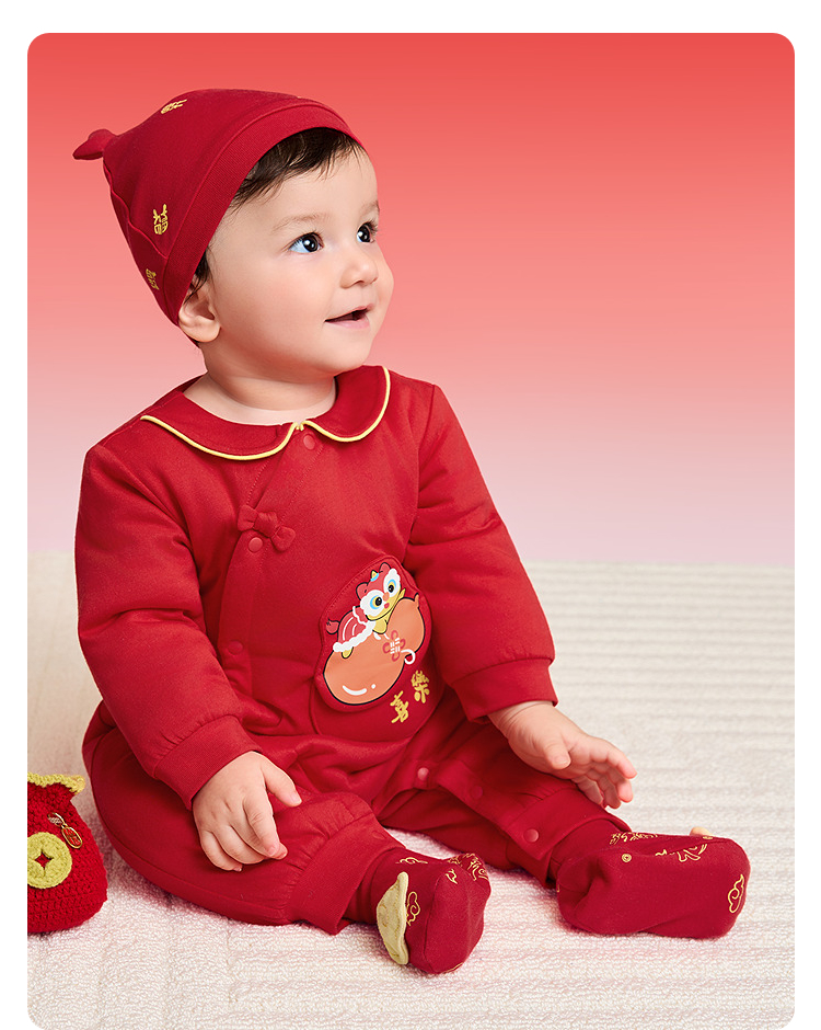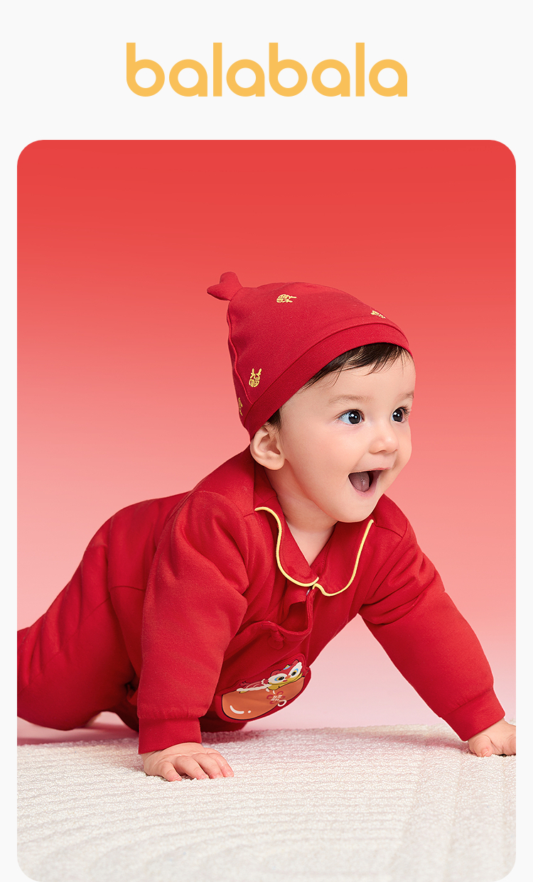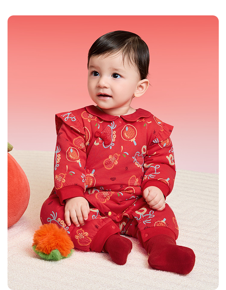 【balaOne】巴拉巴拉童装宝宝内着连体衣2025新款年服喜庆中国红