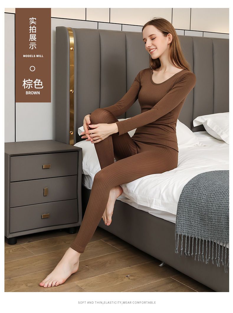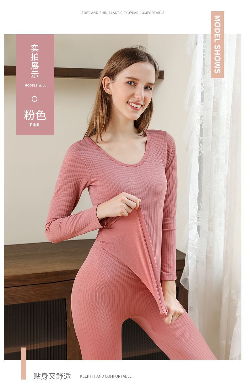 49元抢两套【买一送一!素色显瘦保暖套装】日系修身竖纹内衣,保暖舒适不紧勒,亲肤细腻,抗皱耐穿,秋冬睡衣睡裤家居服,收腹提臀无痕打底衫