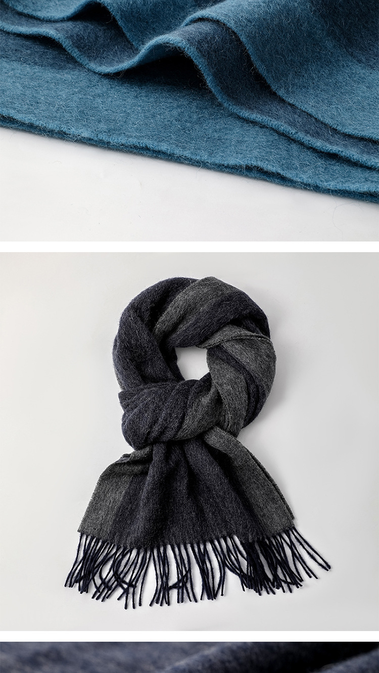 羊毛男士围巾新款韩版秋冬季渐变双色简约围巾时尚保暖围脖35*196cm