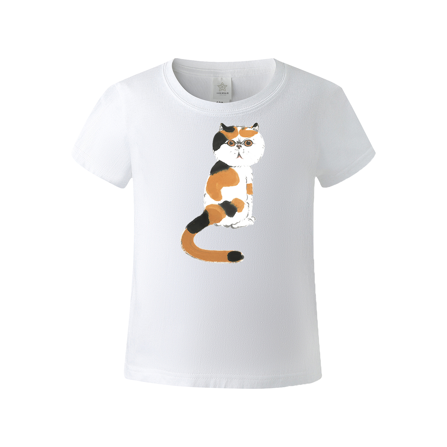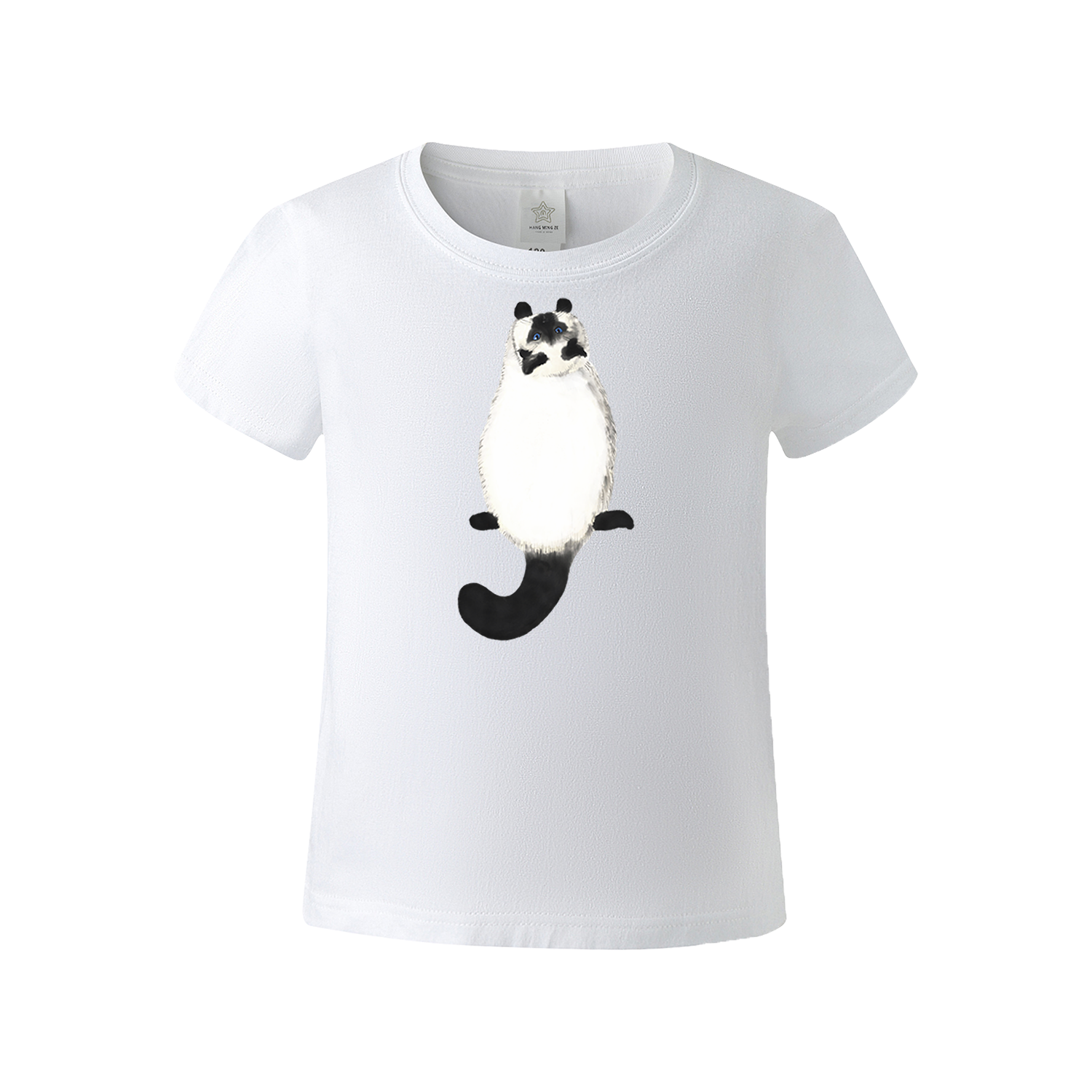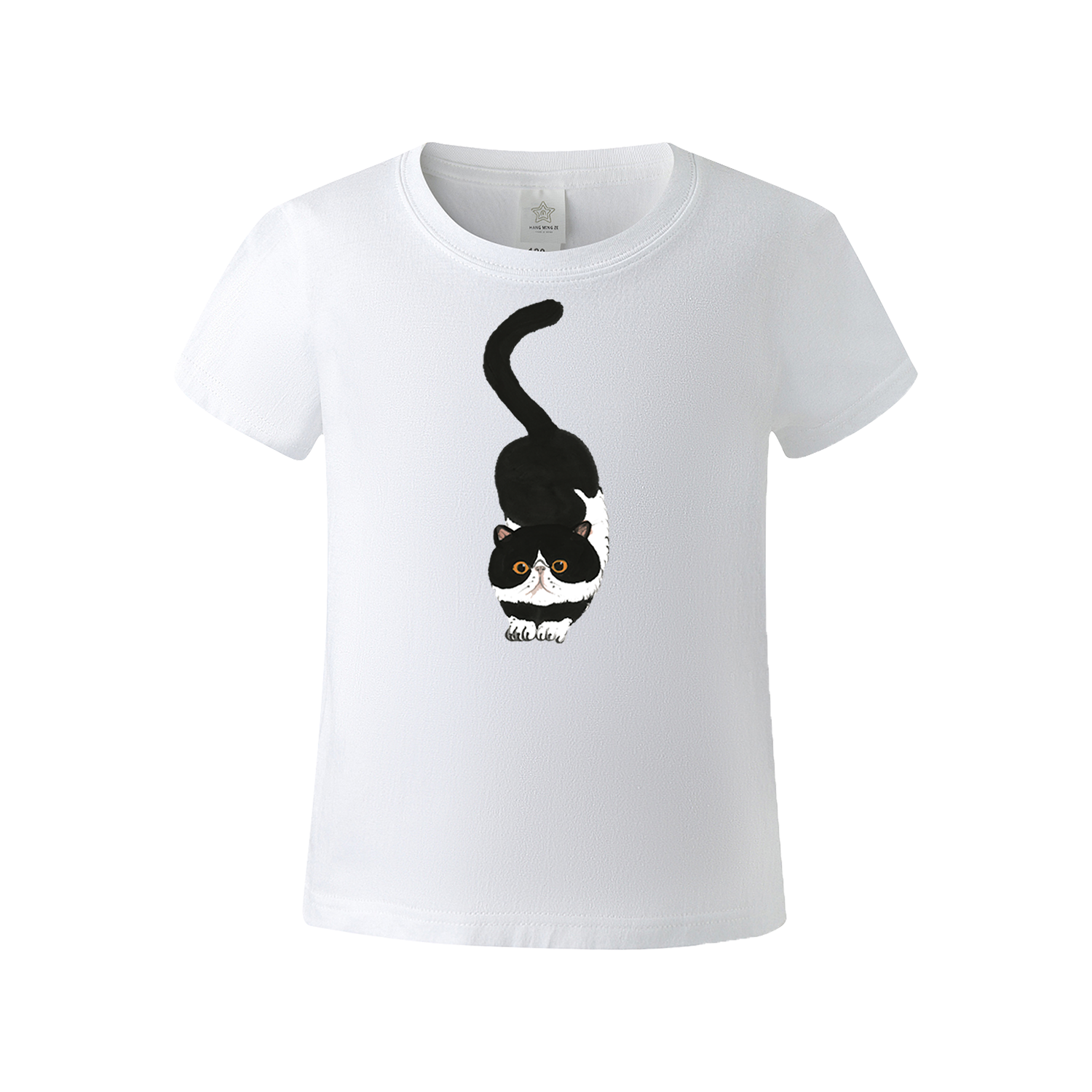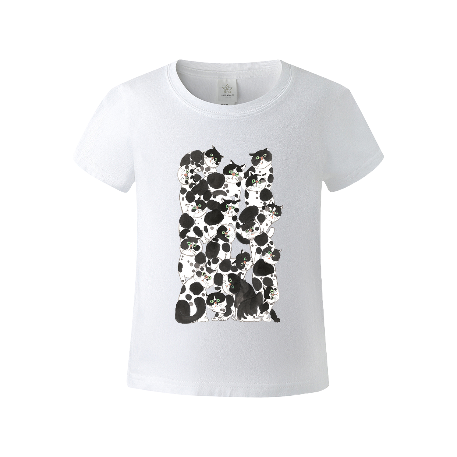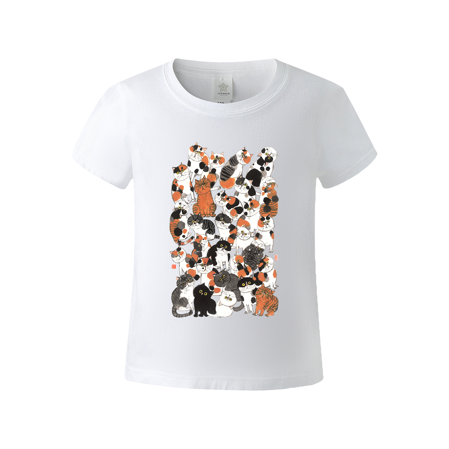 薛继业水墨猫画 创意国潮儿童款新疆长绒棉短袖印花T恤男女圆领T