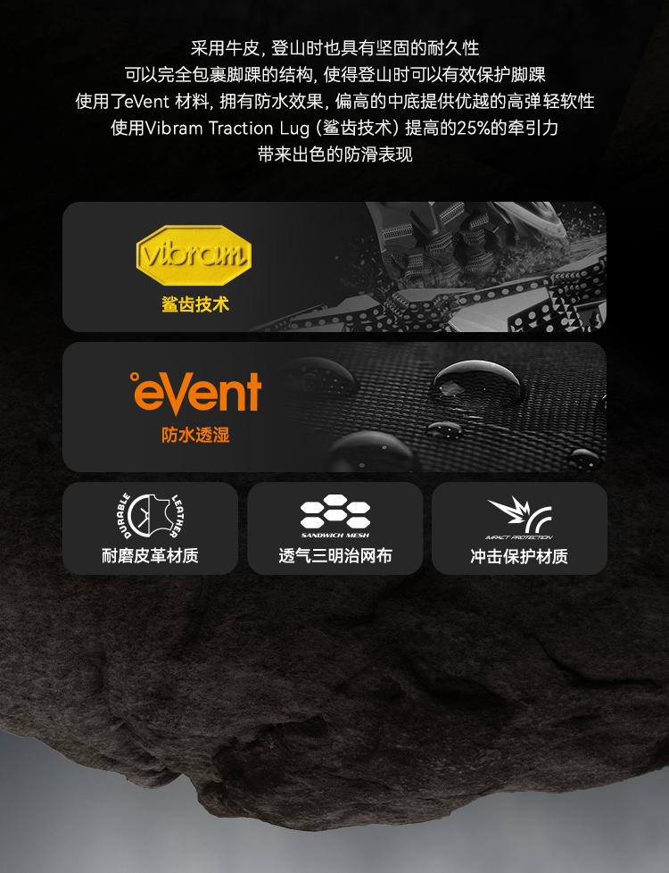 【MT-MEVA】伯希和户外高帮登山鞋男eVent防水Vibram防滑徒步鞋女