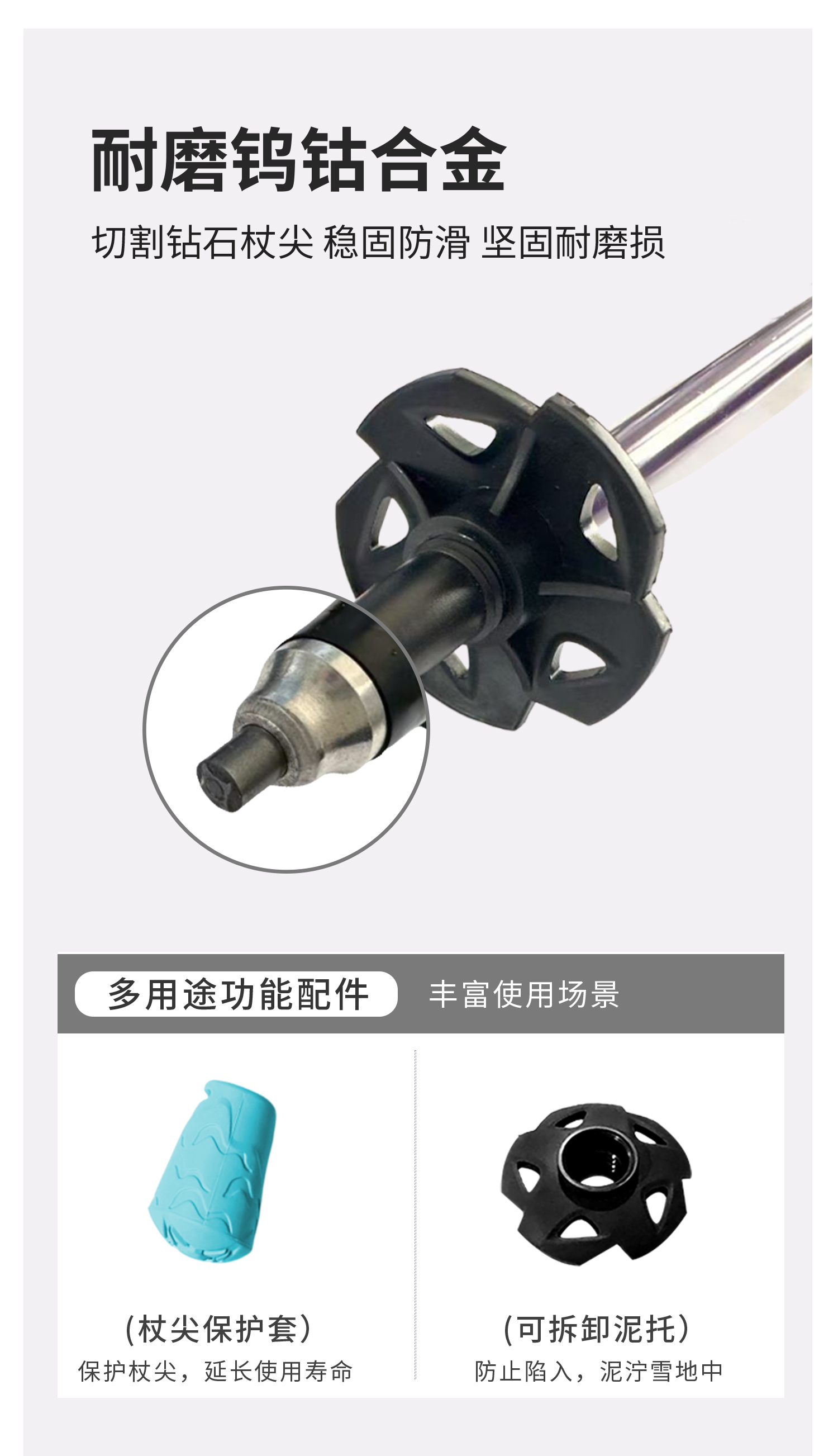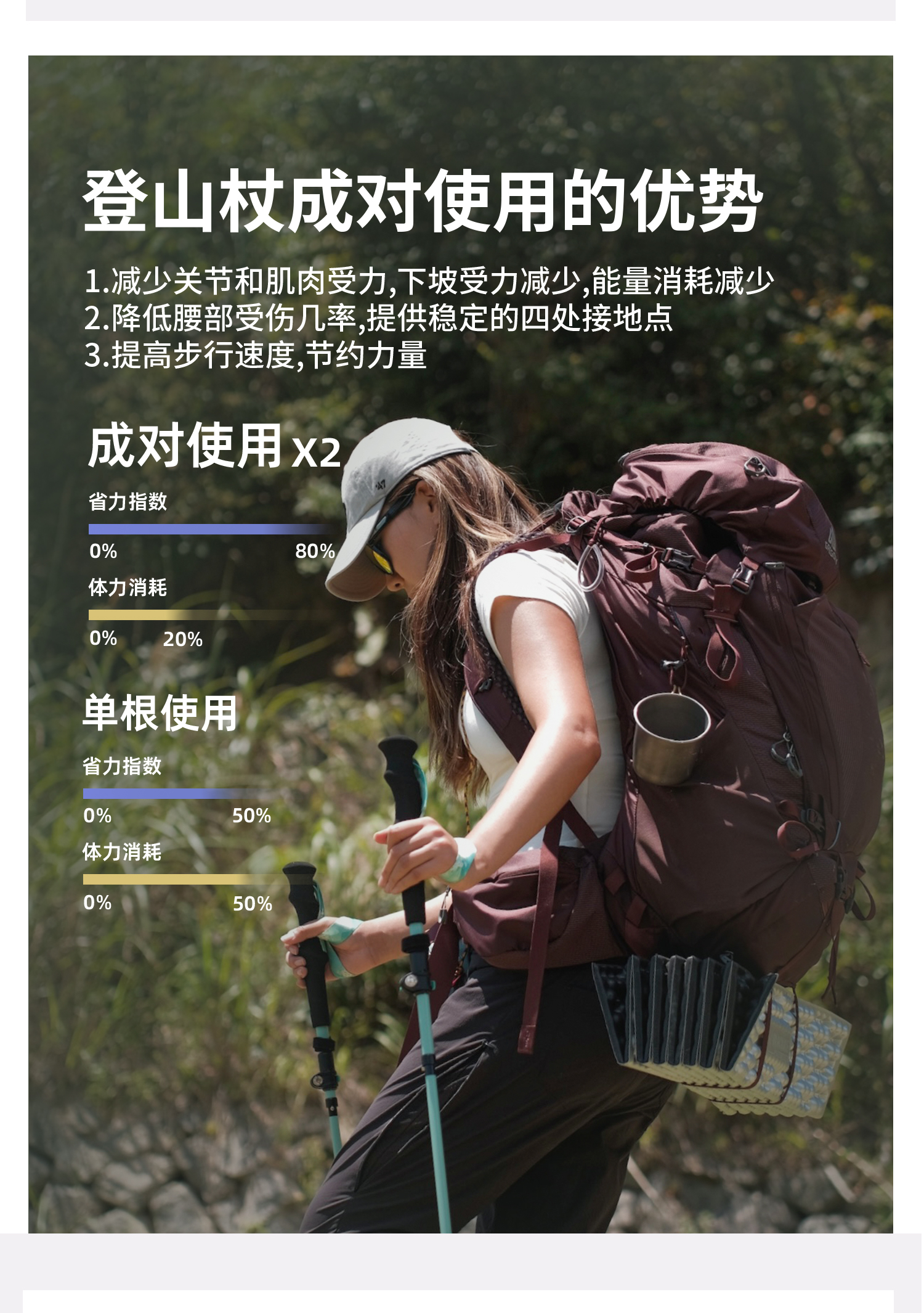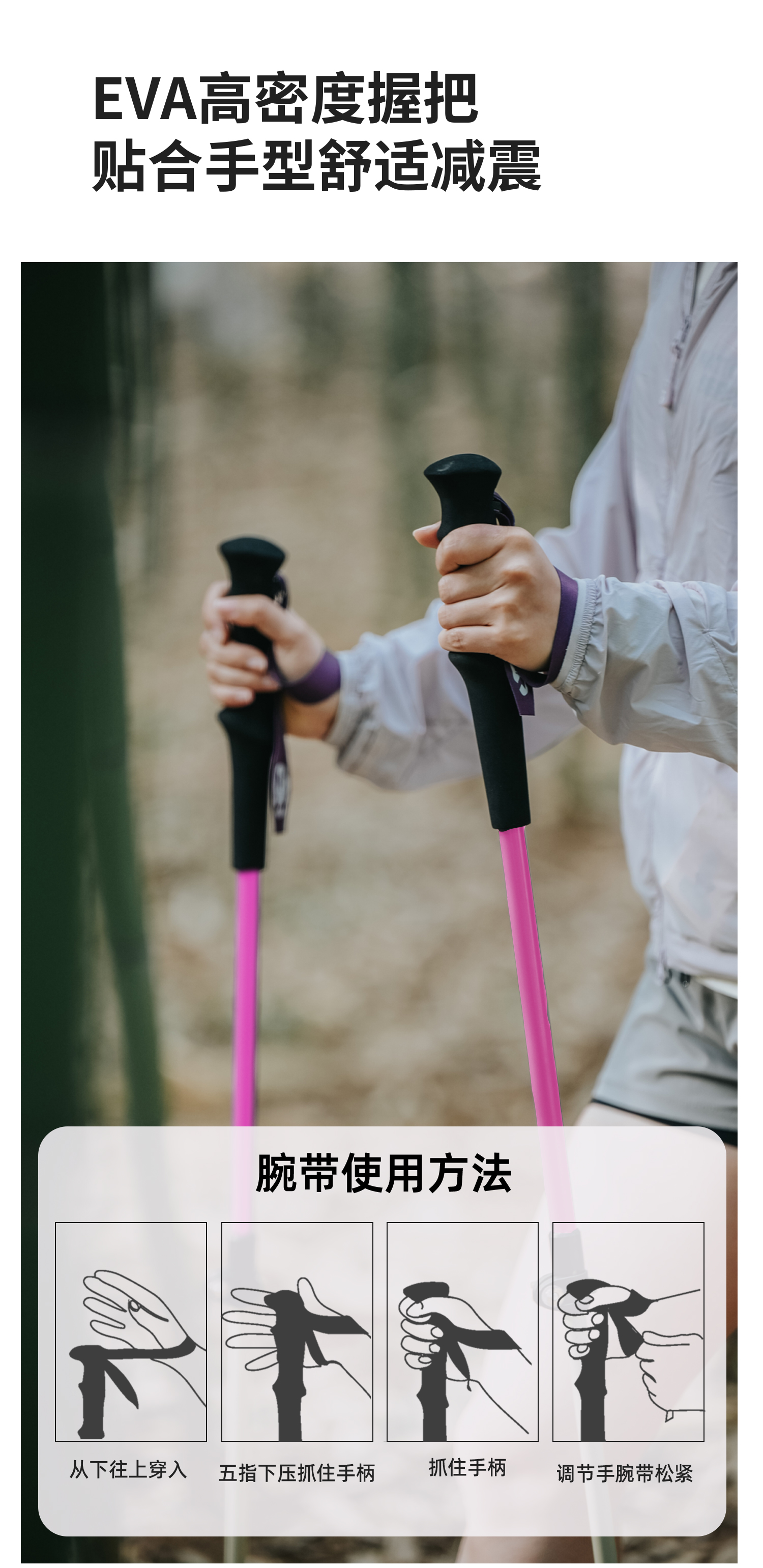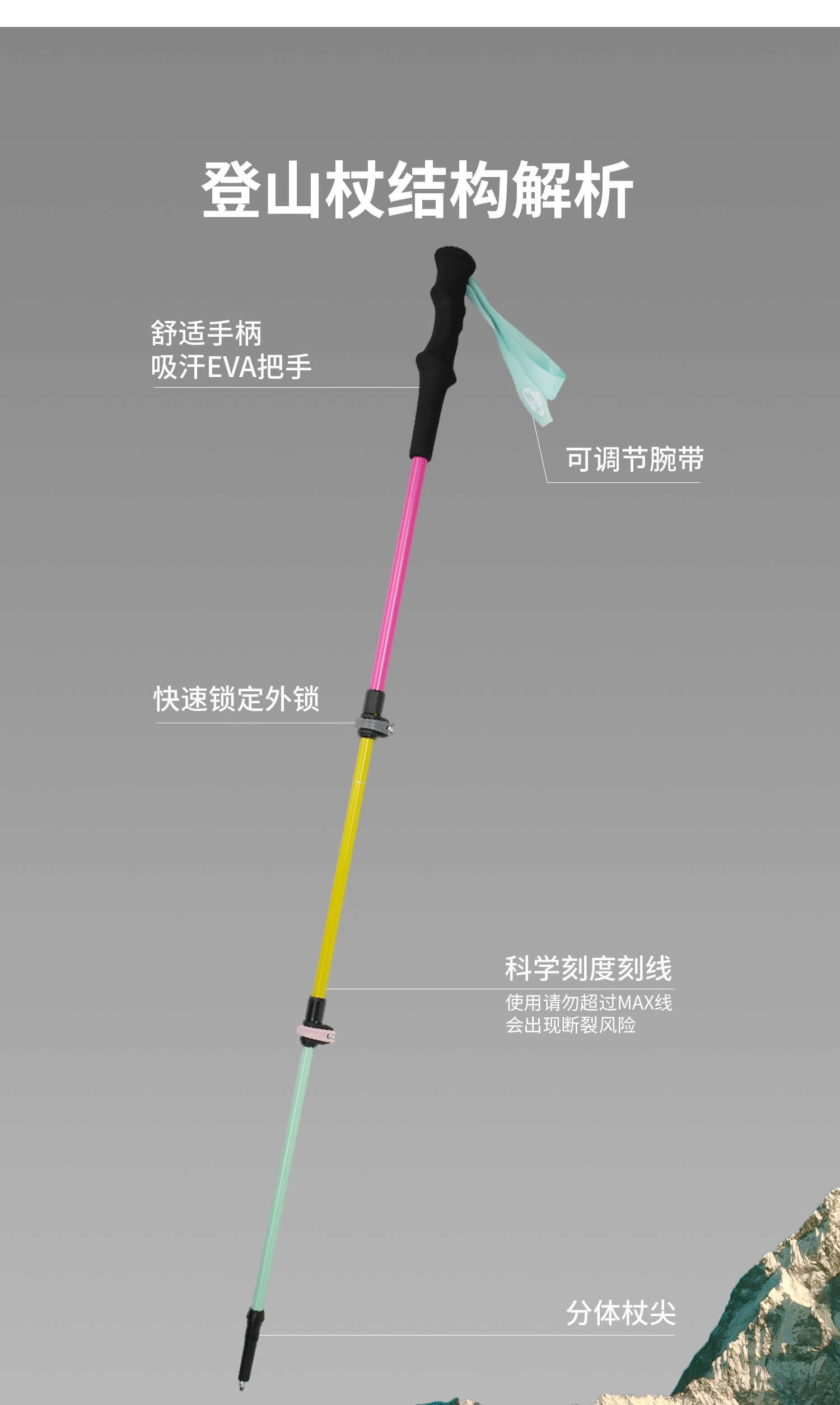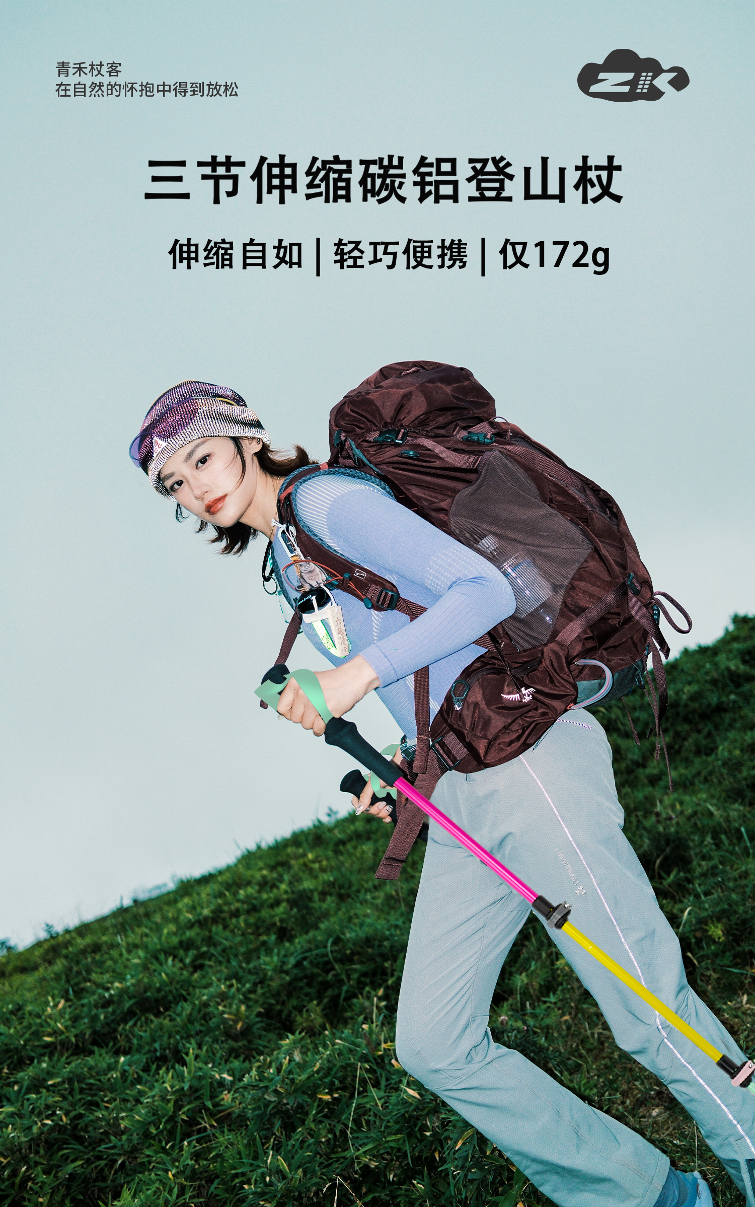 ZK青禾杖客 三节碳金伸缩登山杖舒适好抓握马卡龙色系