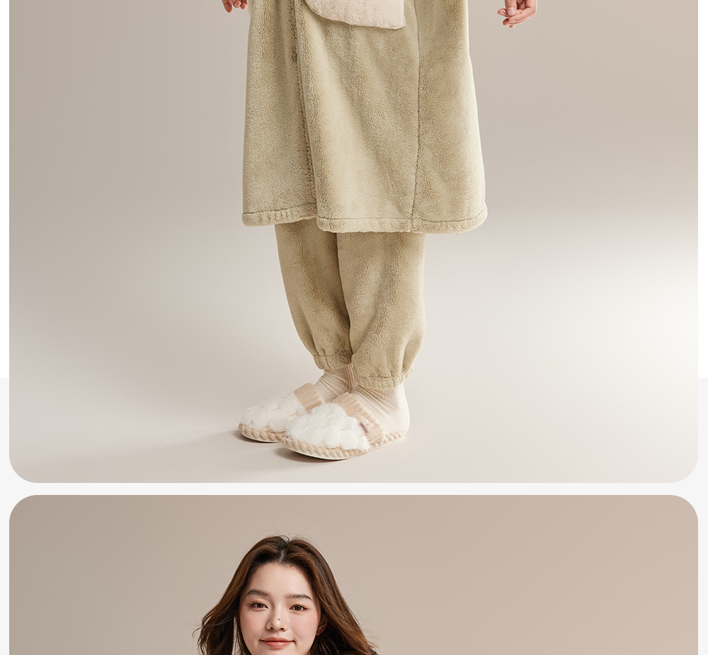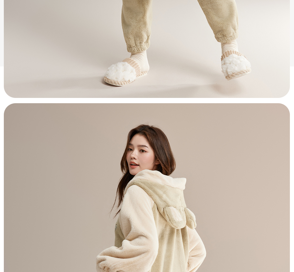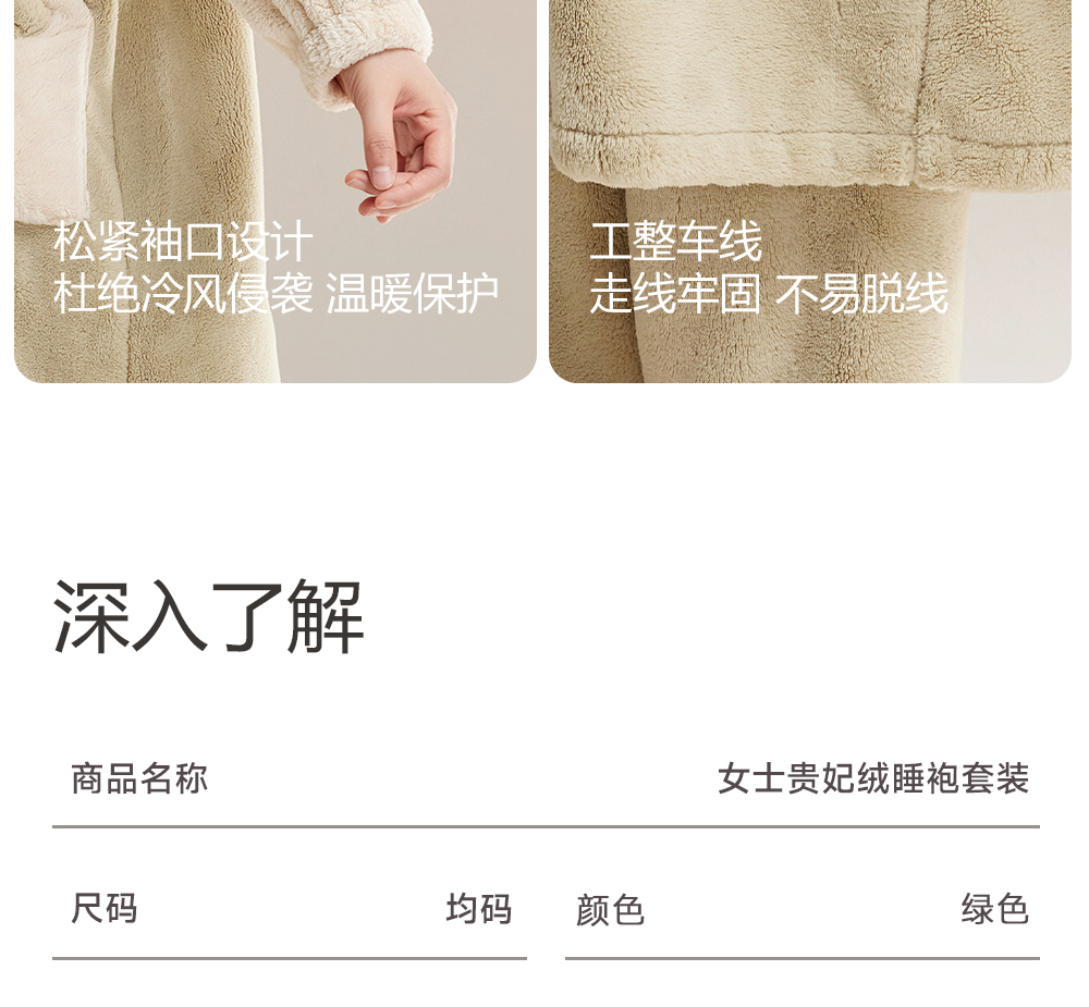 美季美优女士贵妃绒睡袍套装