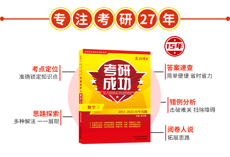 2027考研数学三历年真题详解考研成功2011-2025近十五年真题标准答案详细解析 红博士考研成功晋远图书品牌直营