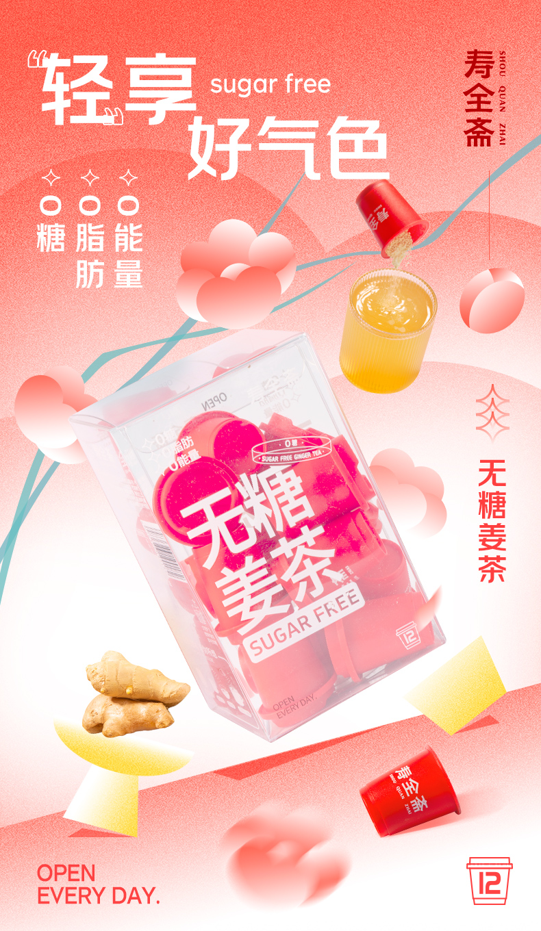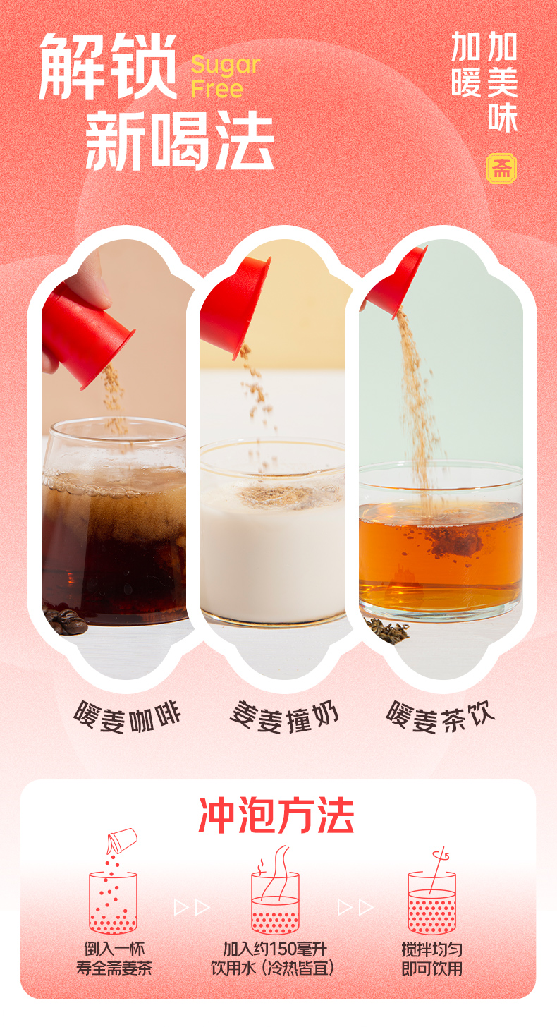 【女神节】【中华老字号】寿全斋 无糖姜茶(12杯)96g
