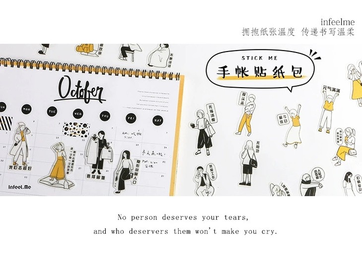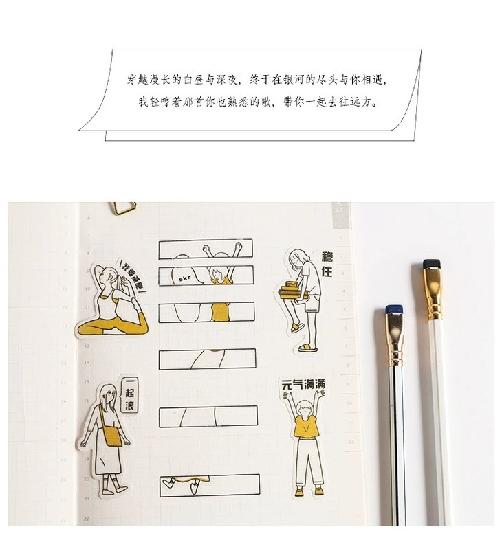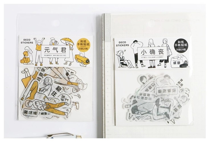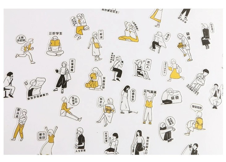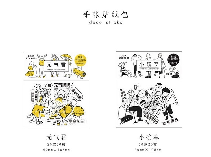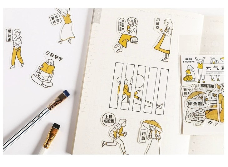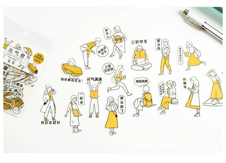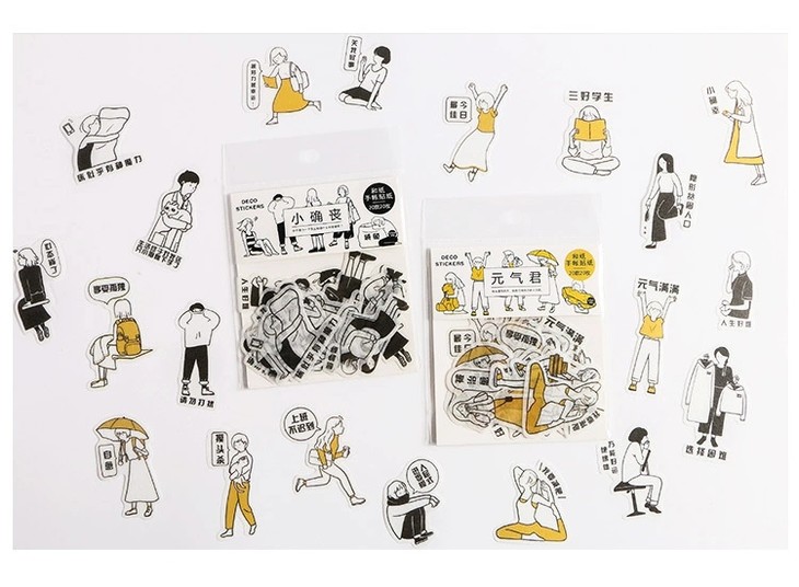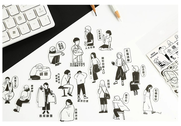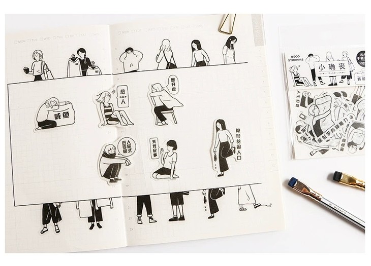 (颜色随机发)黑白元气君 人物和纸贴纸包 简约日式 手帐