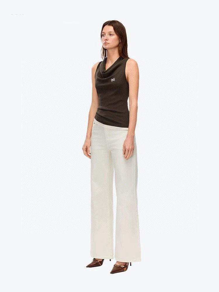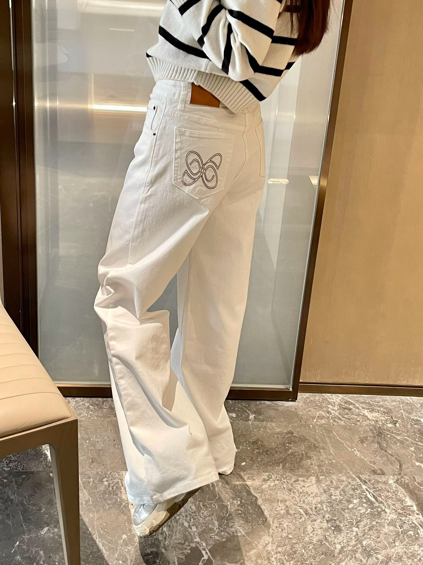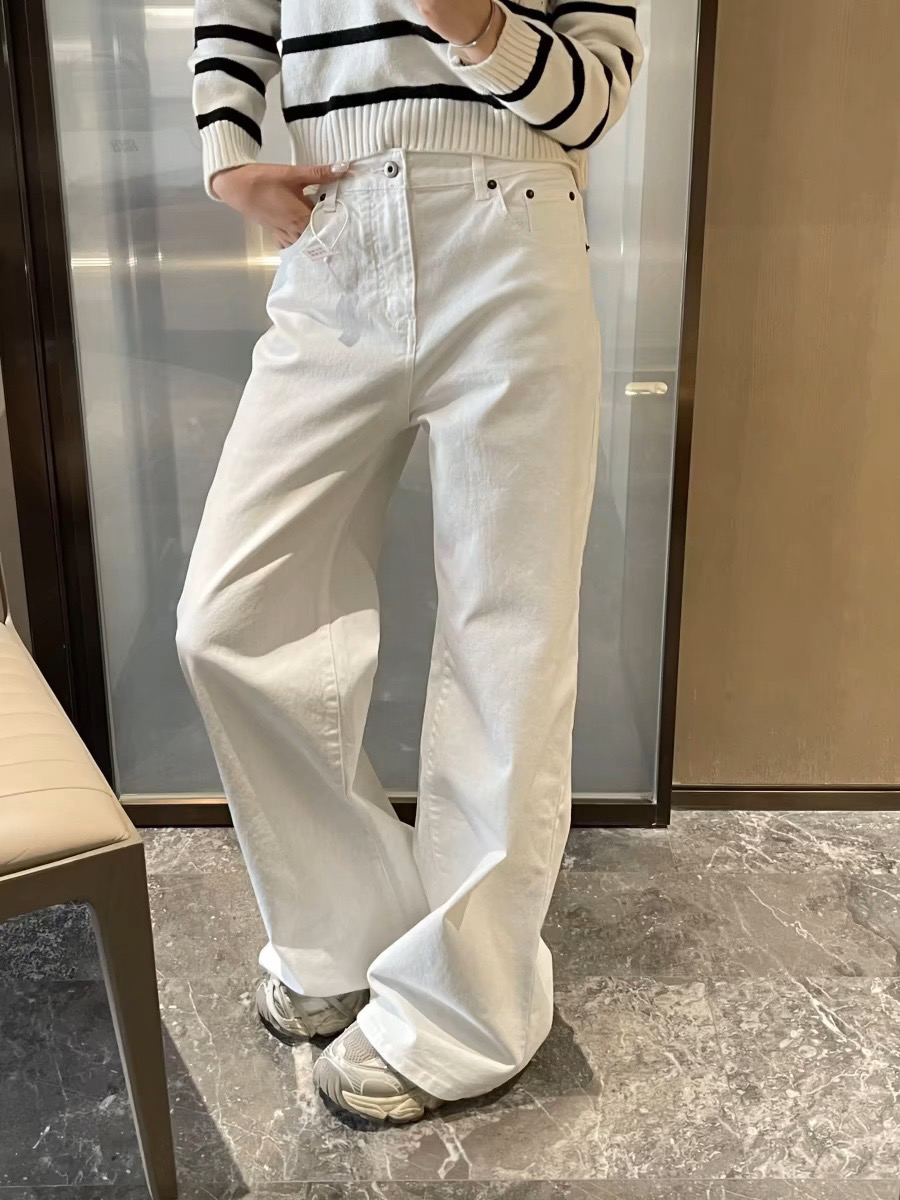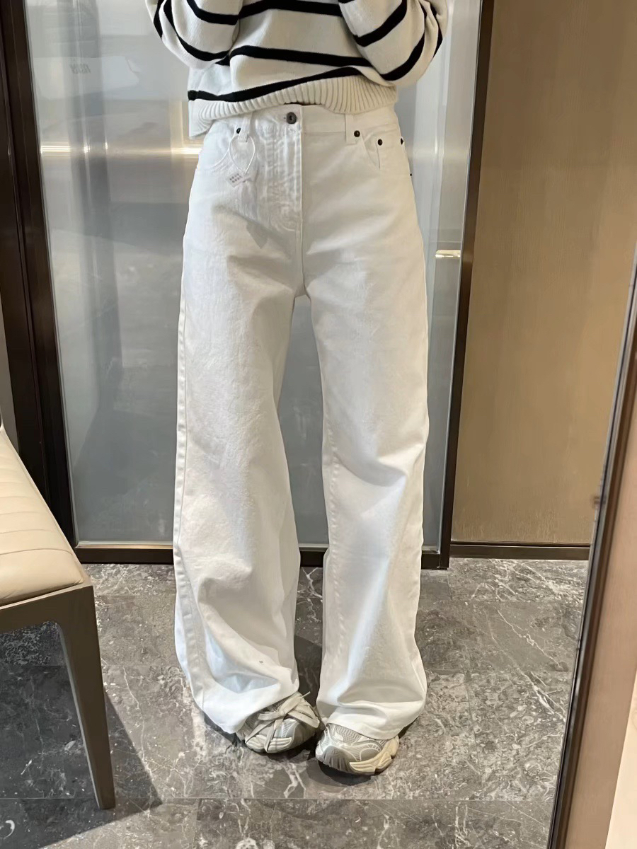 经典白色牛仔阔腿裤