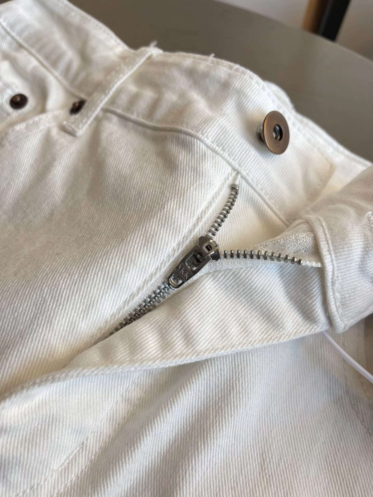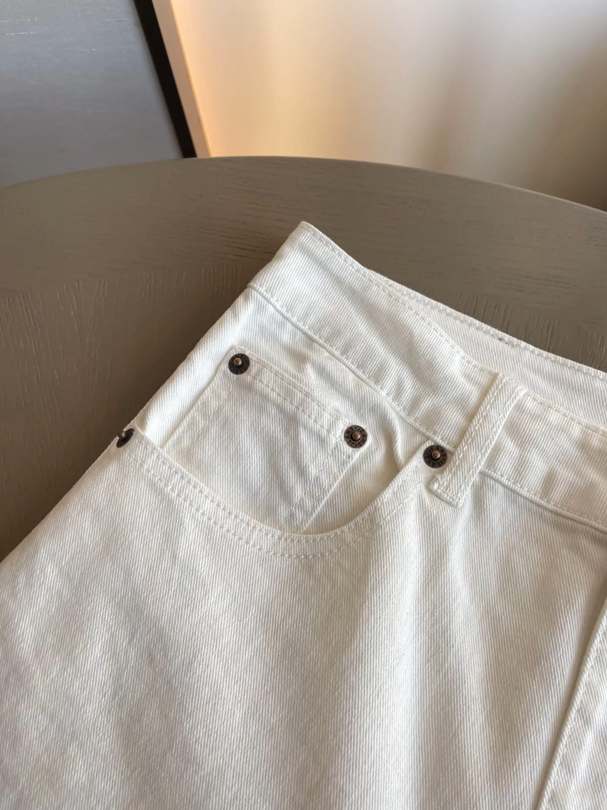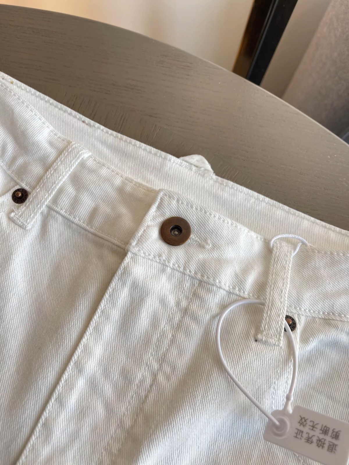 An*n Ande*白牛直营直筒阔腿裤 休闲长裤复古做旧感 白色牛仔裤 阔腿裤~