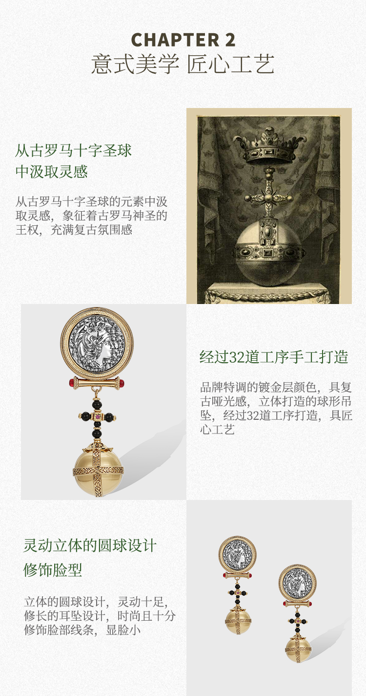 【央视主持人刘芳菲同款】Ancient Rome古罗马系列 | 罗马浮雕圣球耳环