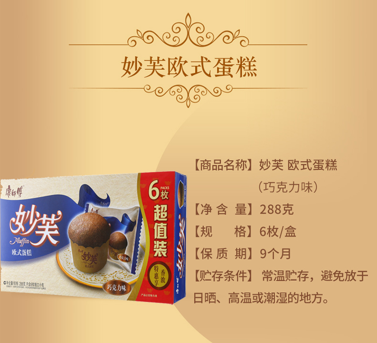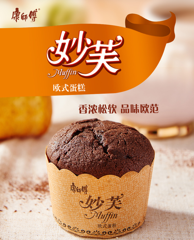 康师傅 妙芙饼干蛋糕点心营养早餐办公室休闲零食小吃巧克力味6枚超值装288g