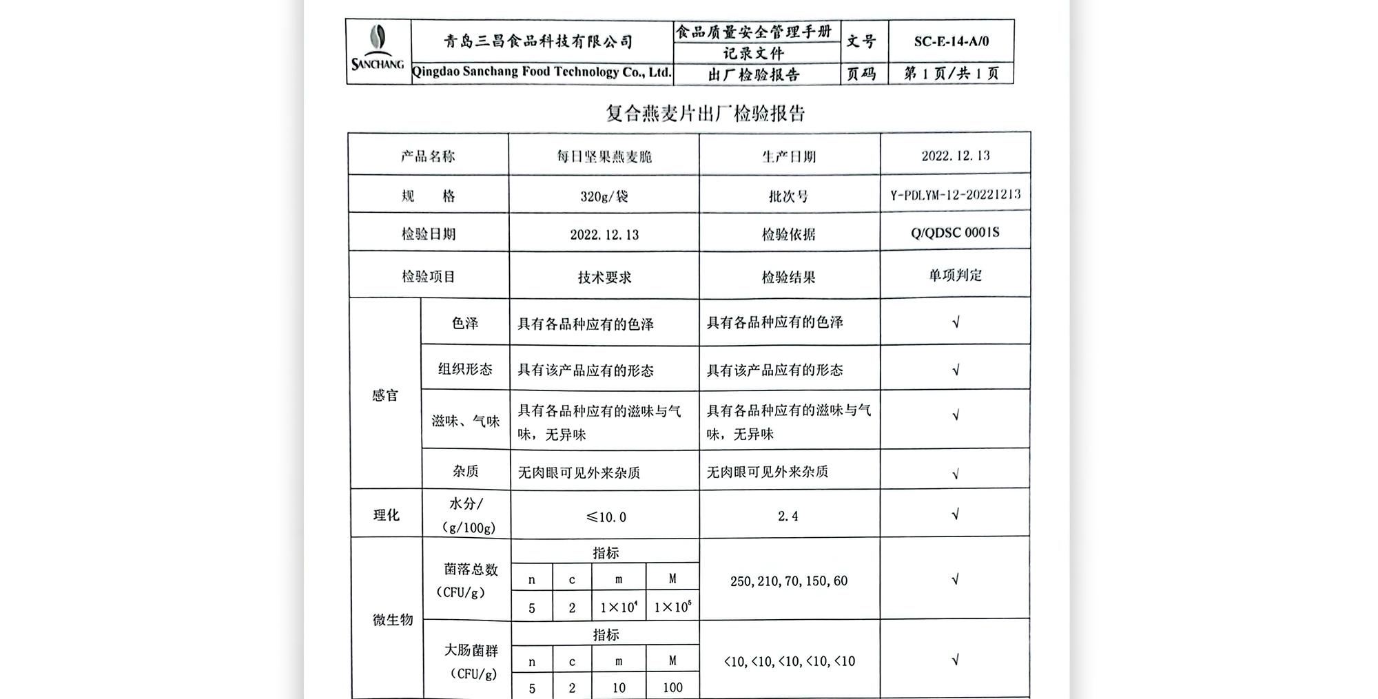 胖东来每日坚果燕麦脆320g