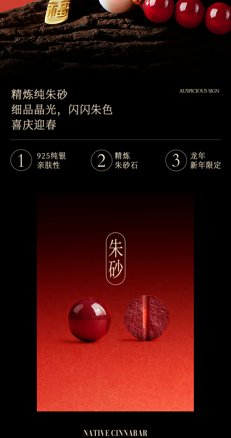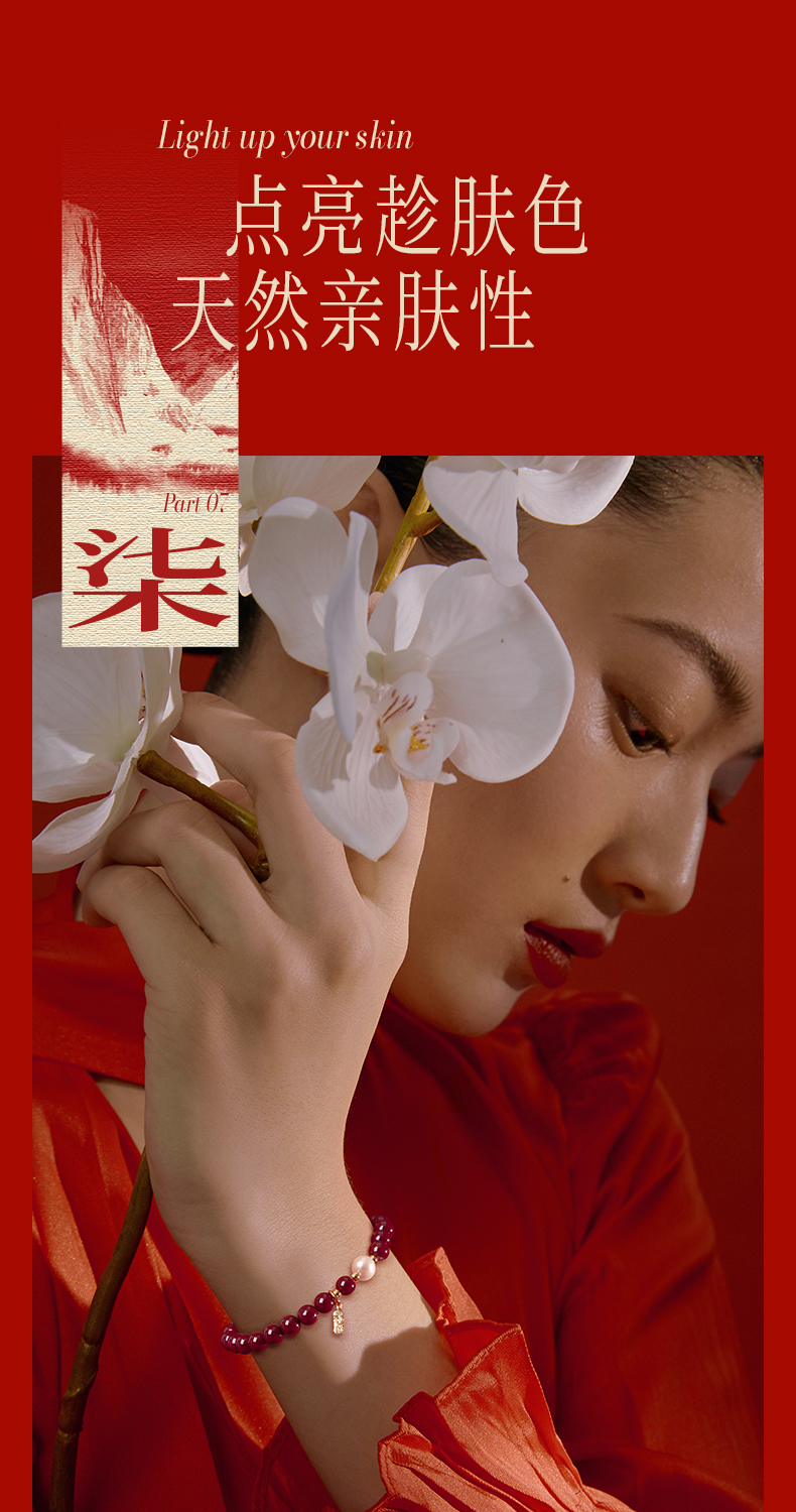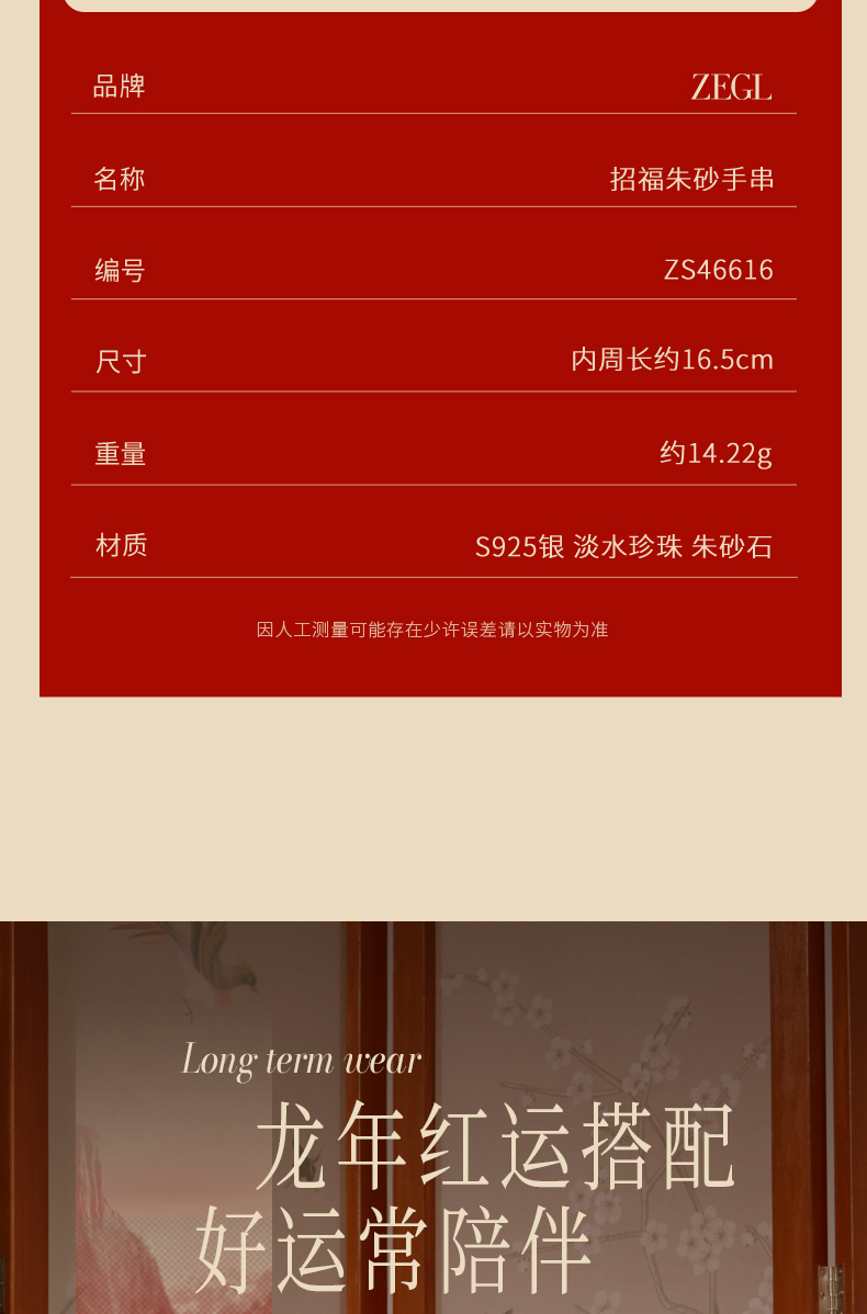 ZEGL925银朱砂石手串女款淡水珍珠手链轻奢小众精致红色新年手饰