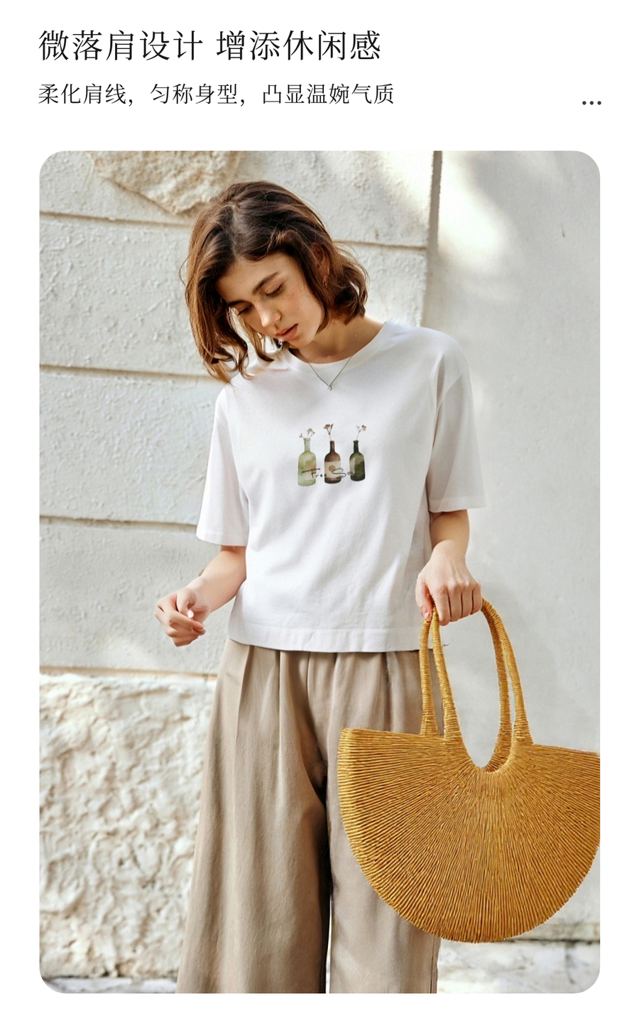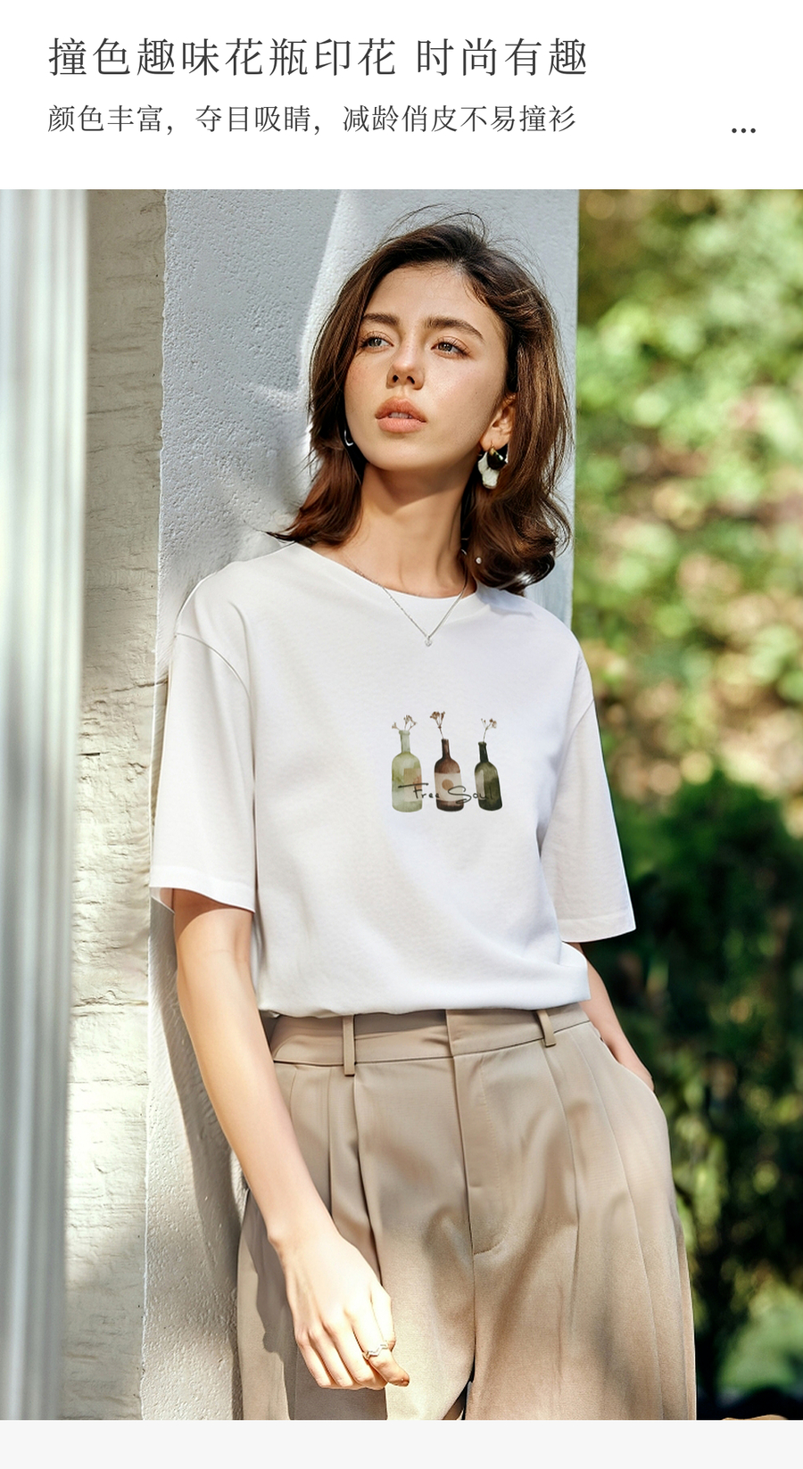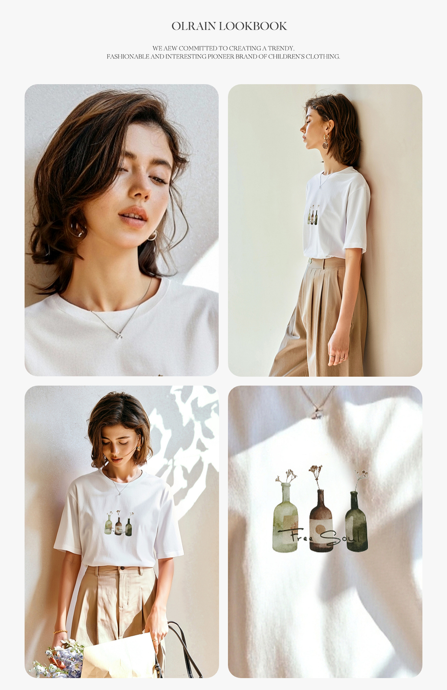 OLrain欧芮儿白色圆领印花T恤女夏季2025年新款宽松休闲短袖上衣