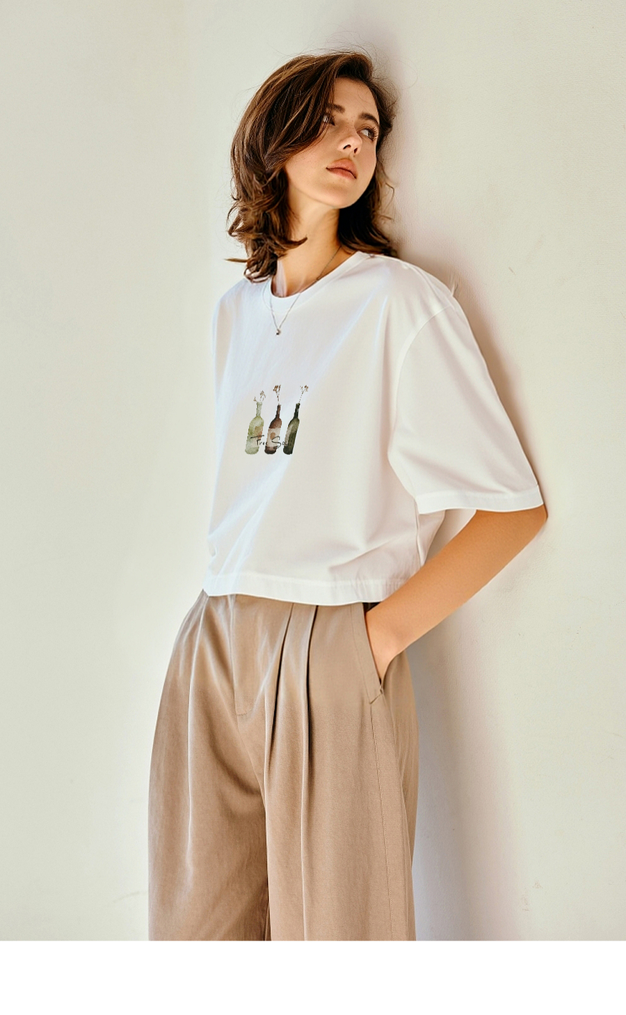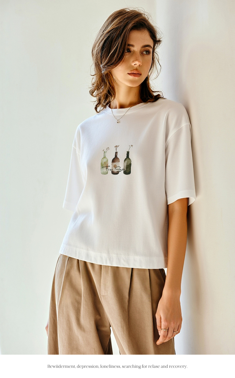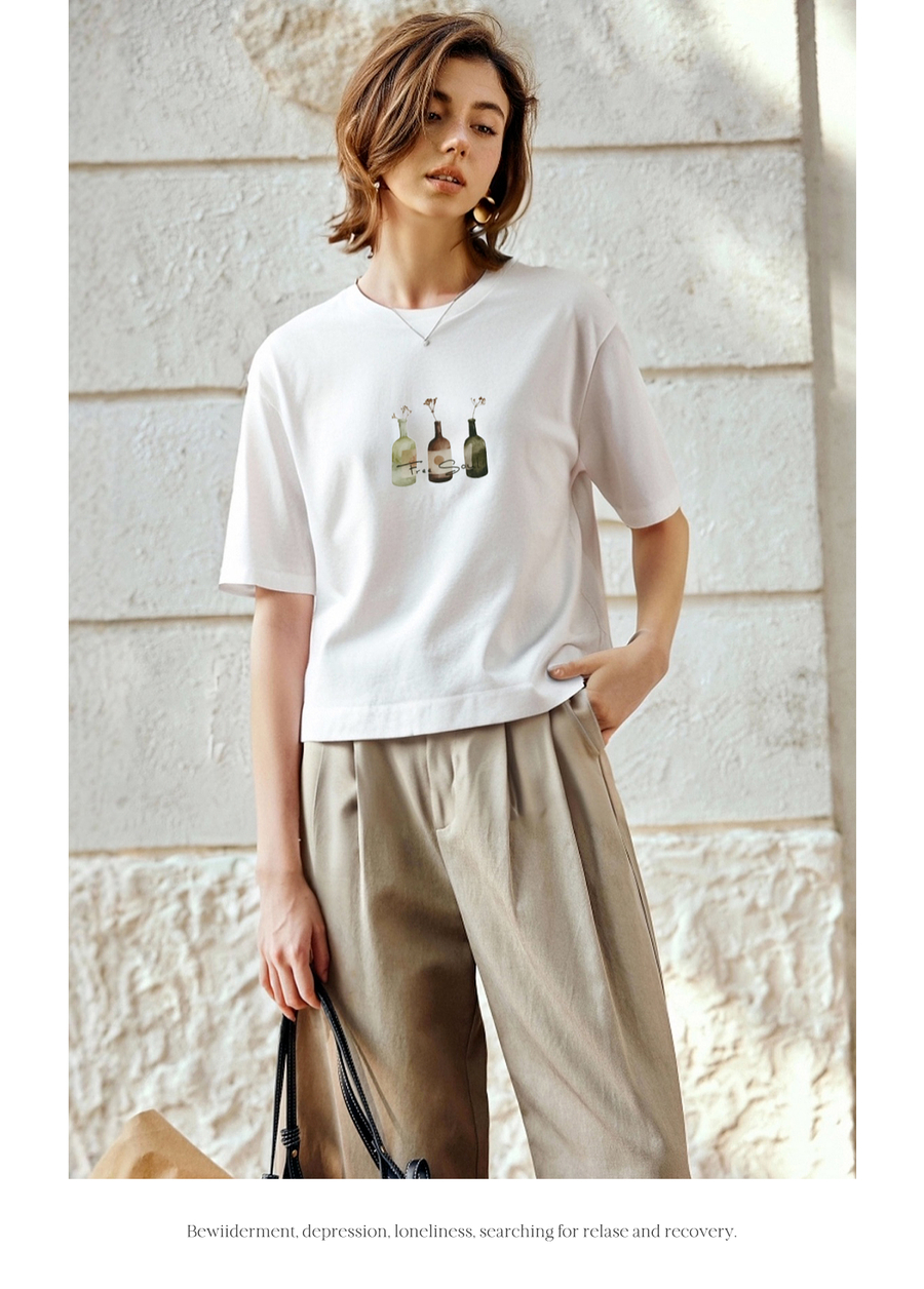 OLrain欧芮儿白色圆领印花T恤女夏季2025年新款宽松休闲短袖上衣