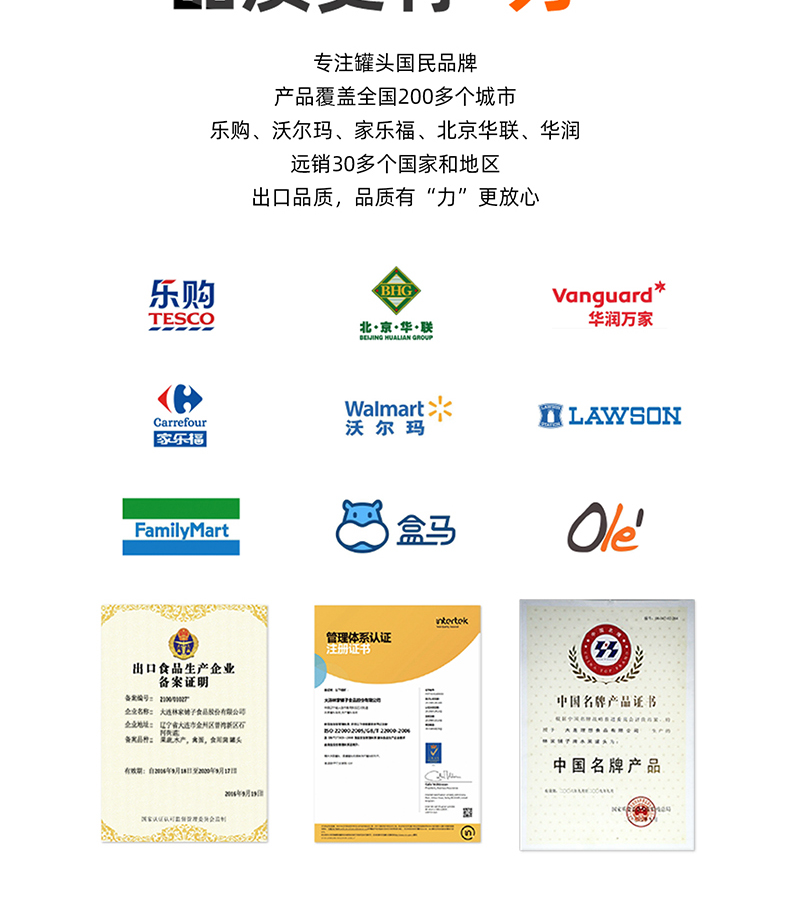 大连林家铺子食品股份有限公司成立于1996年,是中国知名及东北地区最大的罐头生产商、出口商。公司坚持“赋予产品以文化,做世界上最好的罐头”,不断最求高品质打造成年轻人也爱吃的国民零食