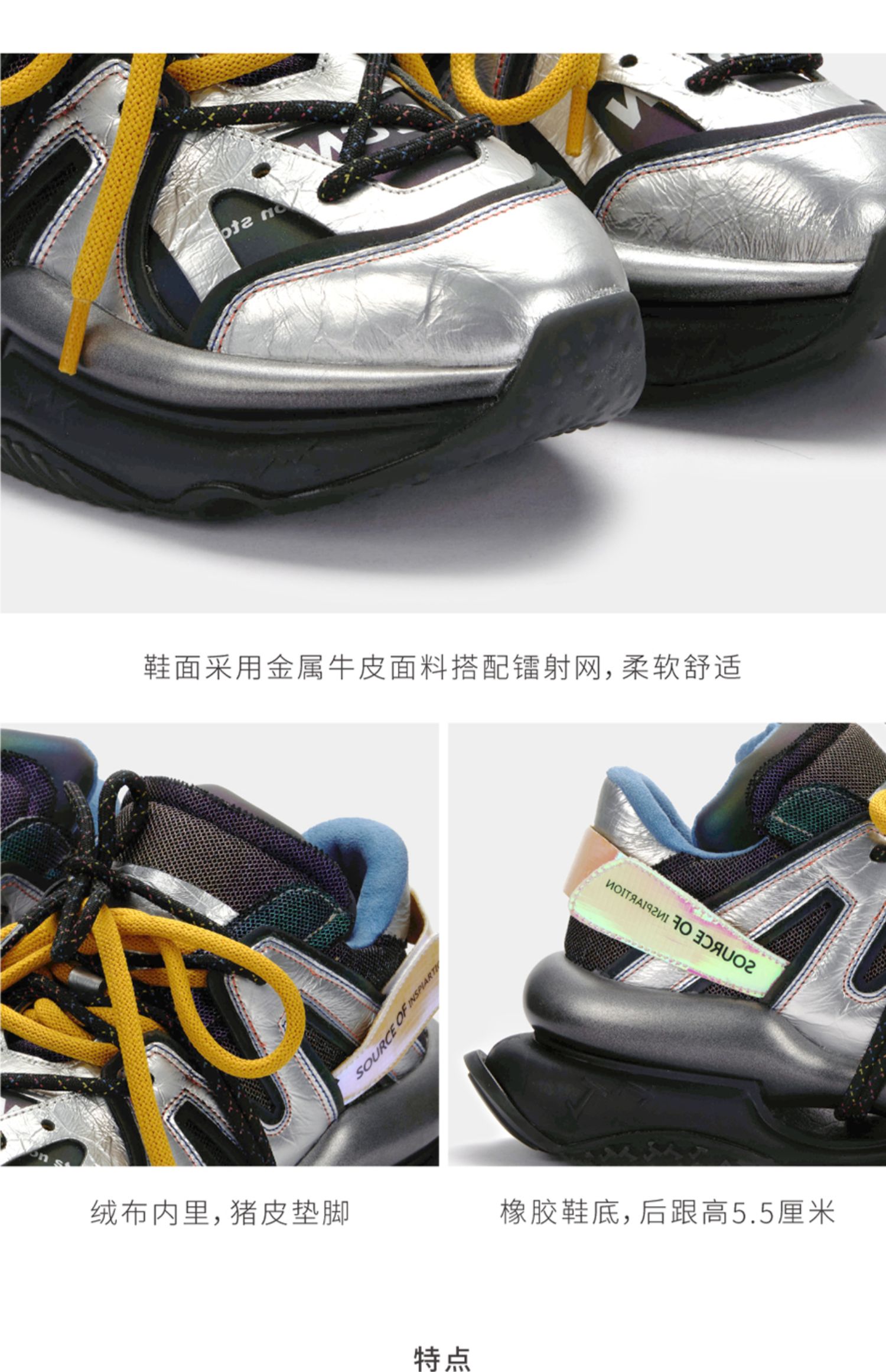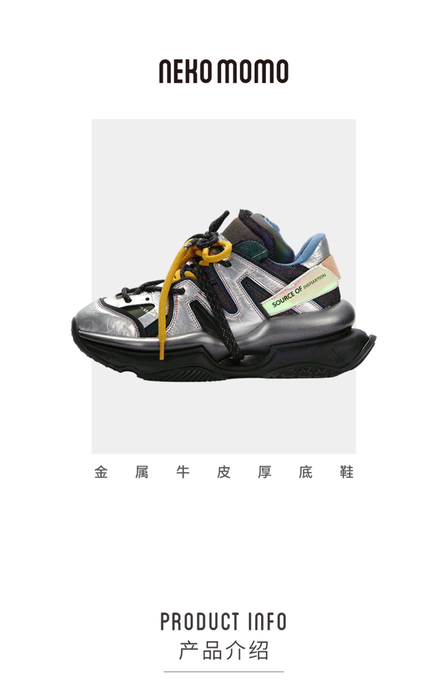 nekomomo2022年秋冬新款商场同款牛皮厚底老爹鞋女运动休闲潮鞋女M20CM32051