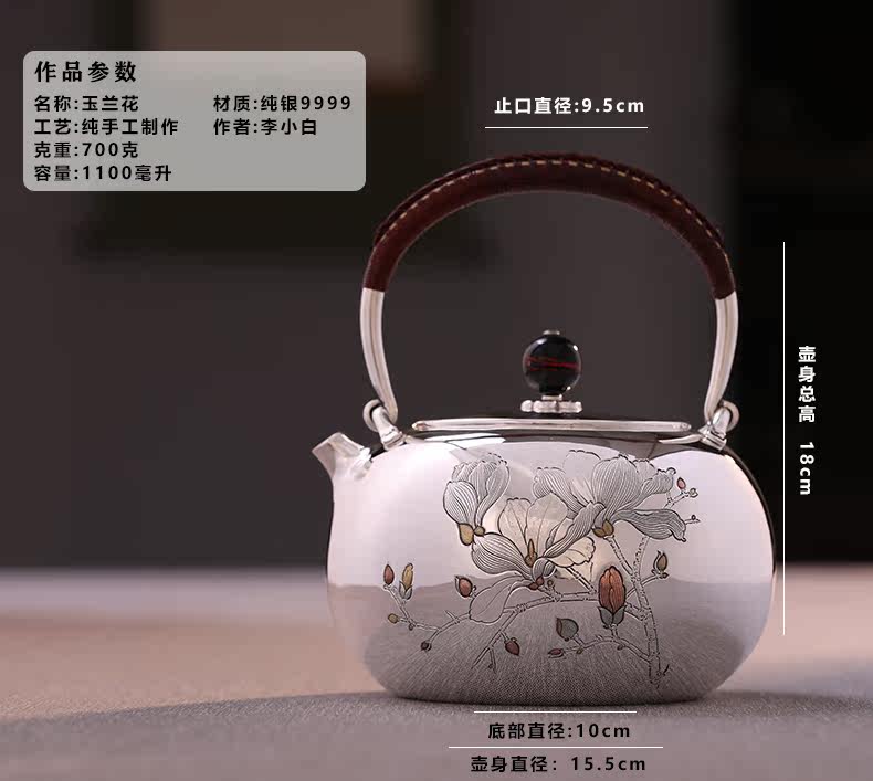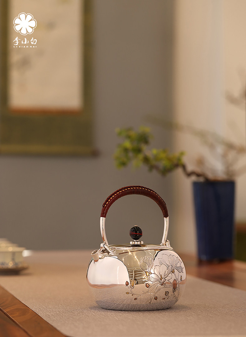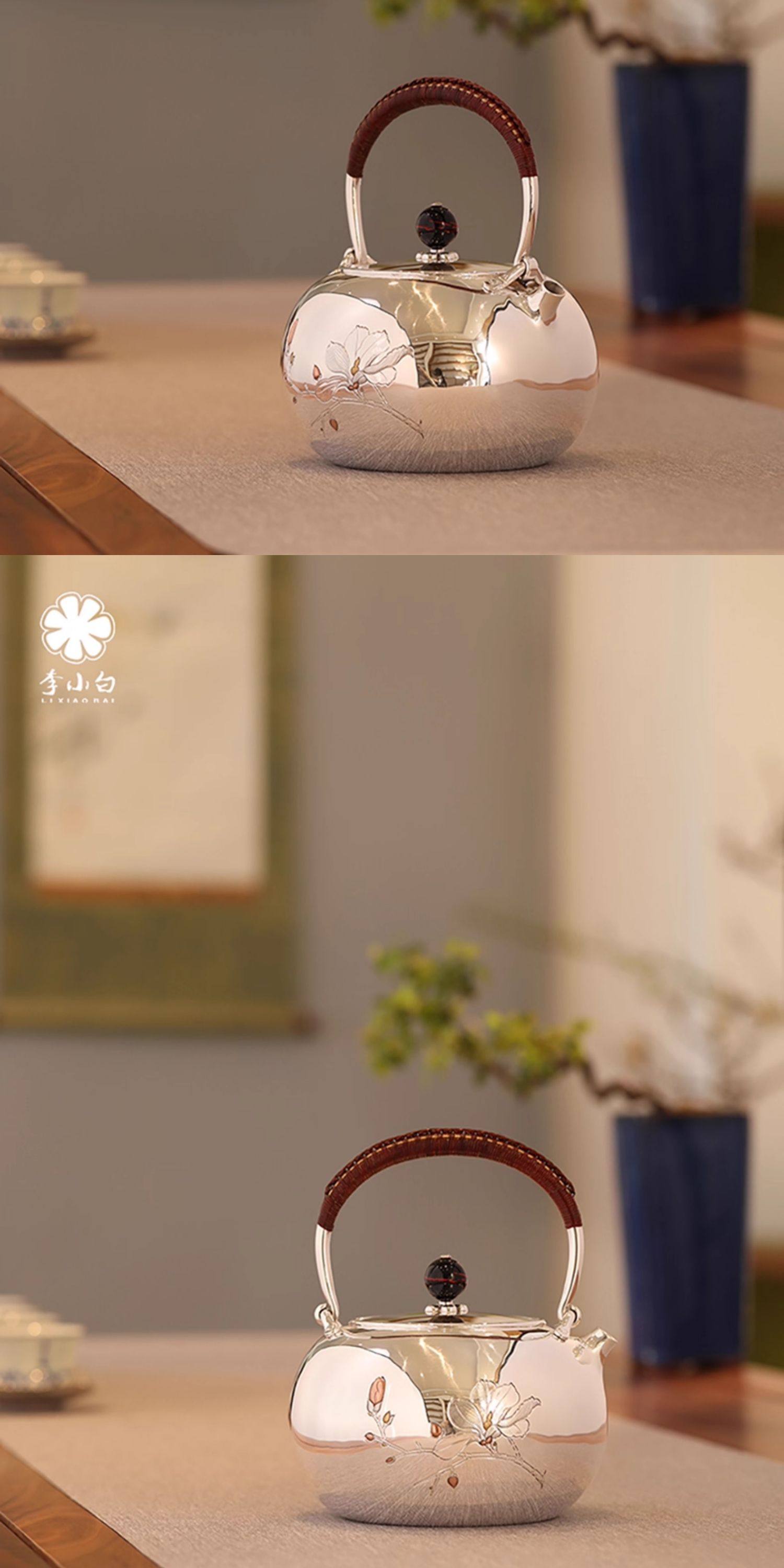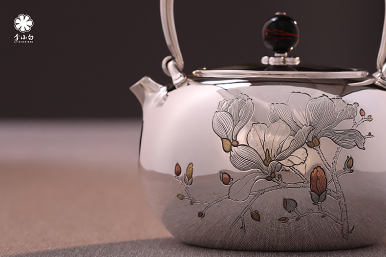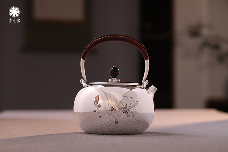 李小白银壶 纯银9999烧水壶 玉兰花银壶烧水壶 烧水银壶 银壶 茶壶