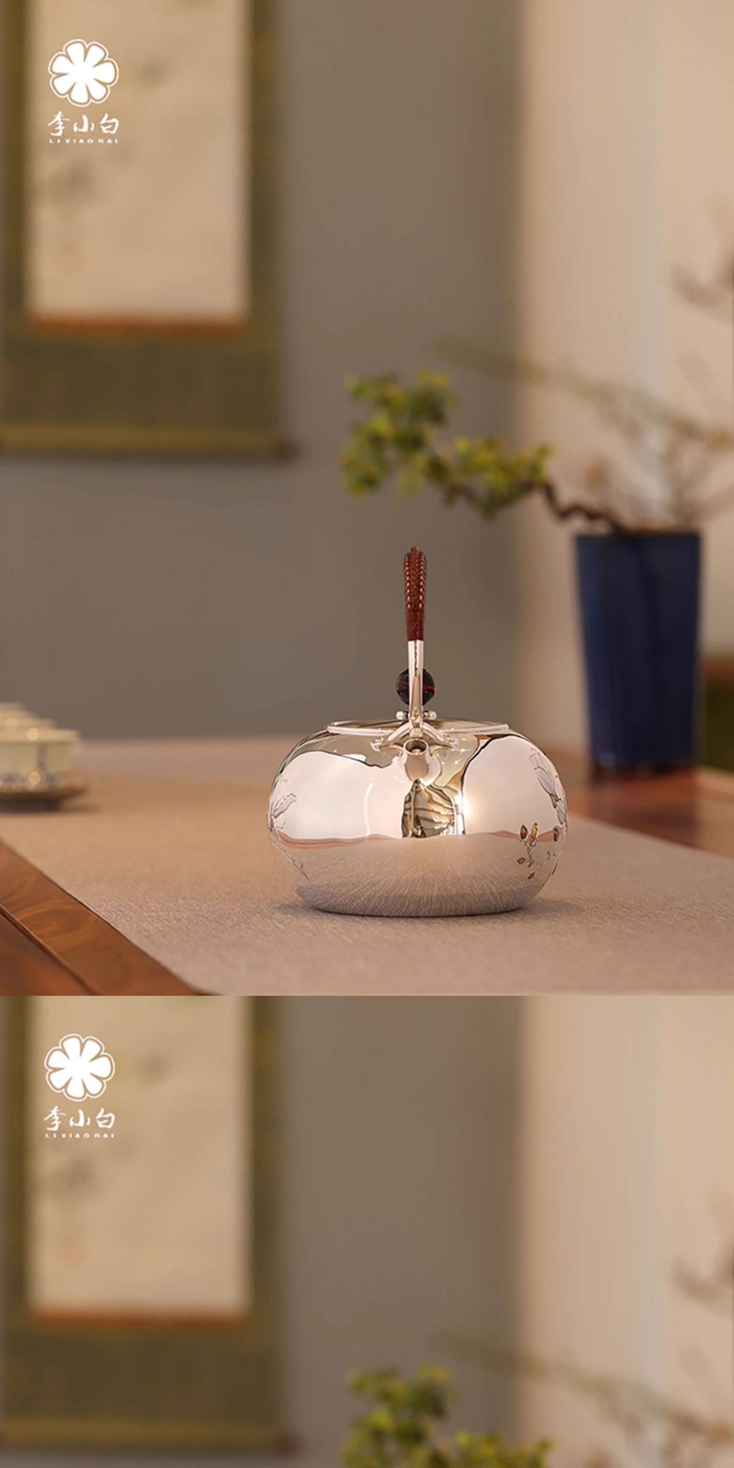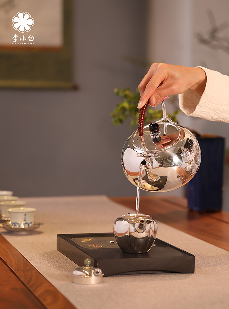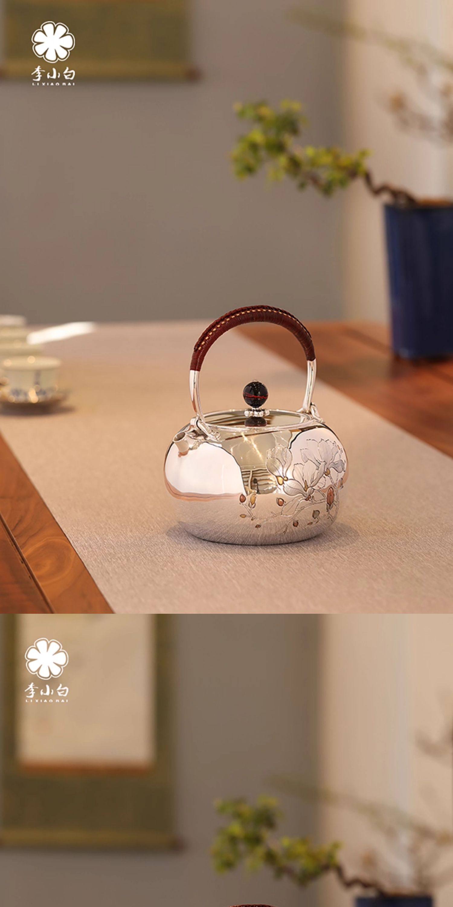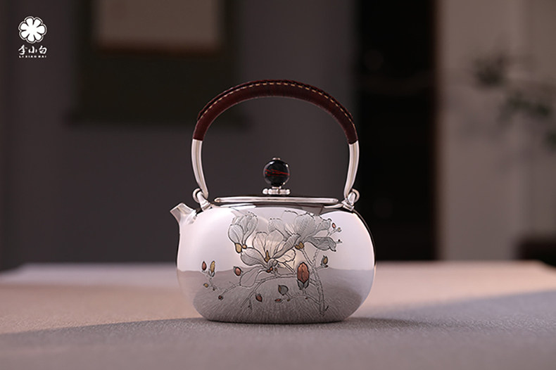 李小白银壶 纯银9999烧水壶 玉兰花银壶烧水壶 烧水银壶 银壶 茶壶