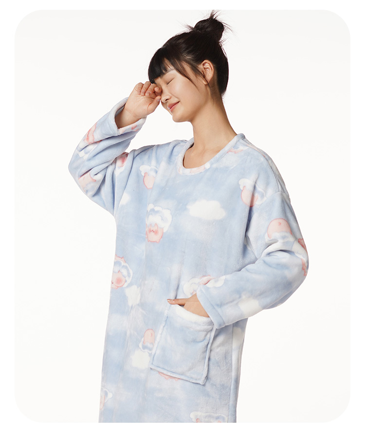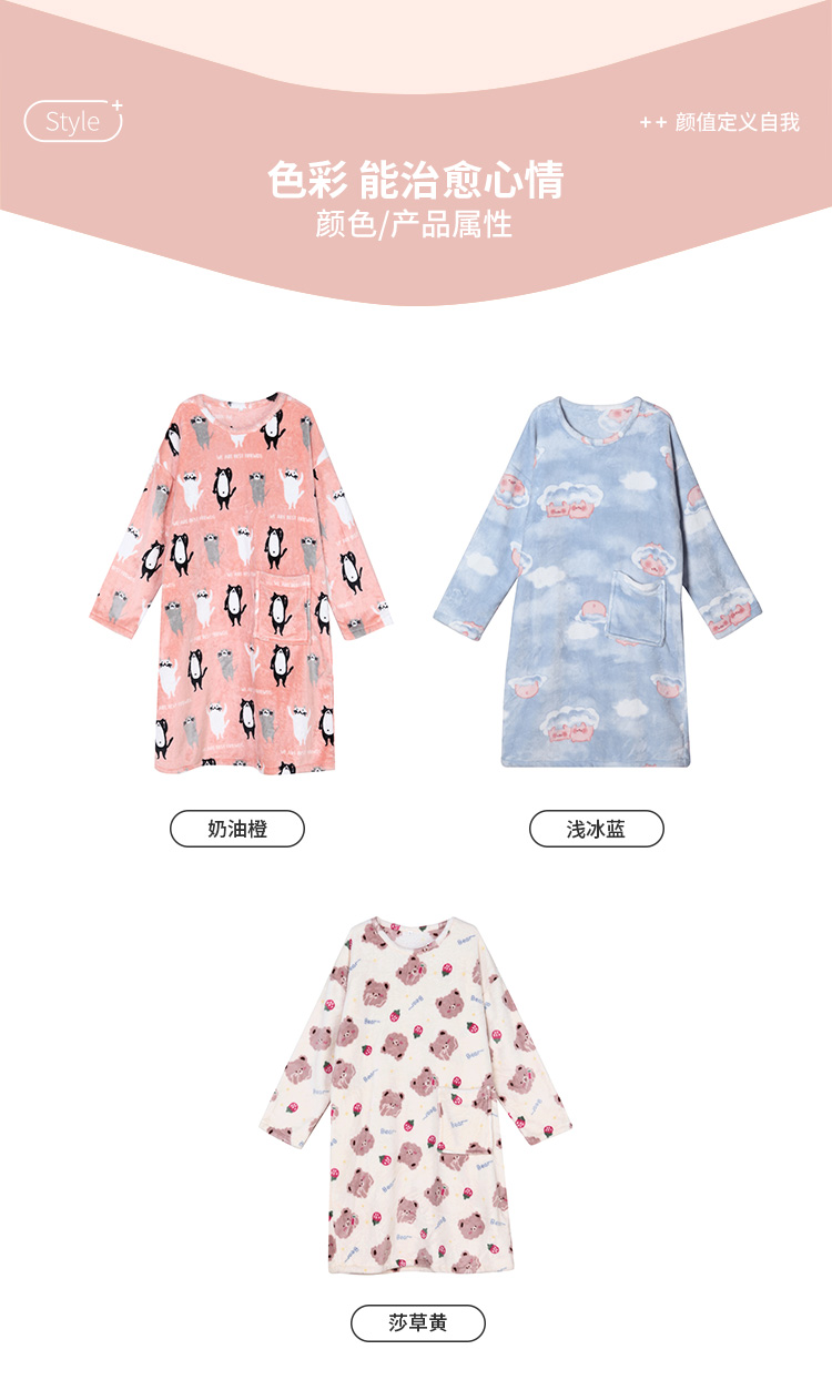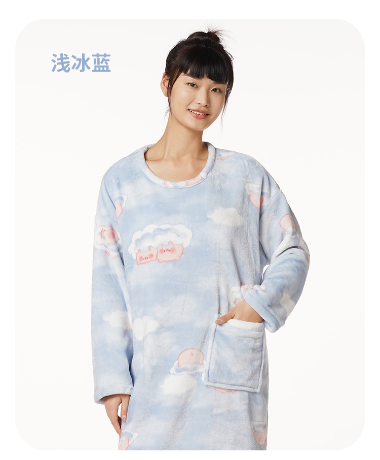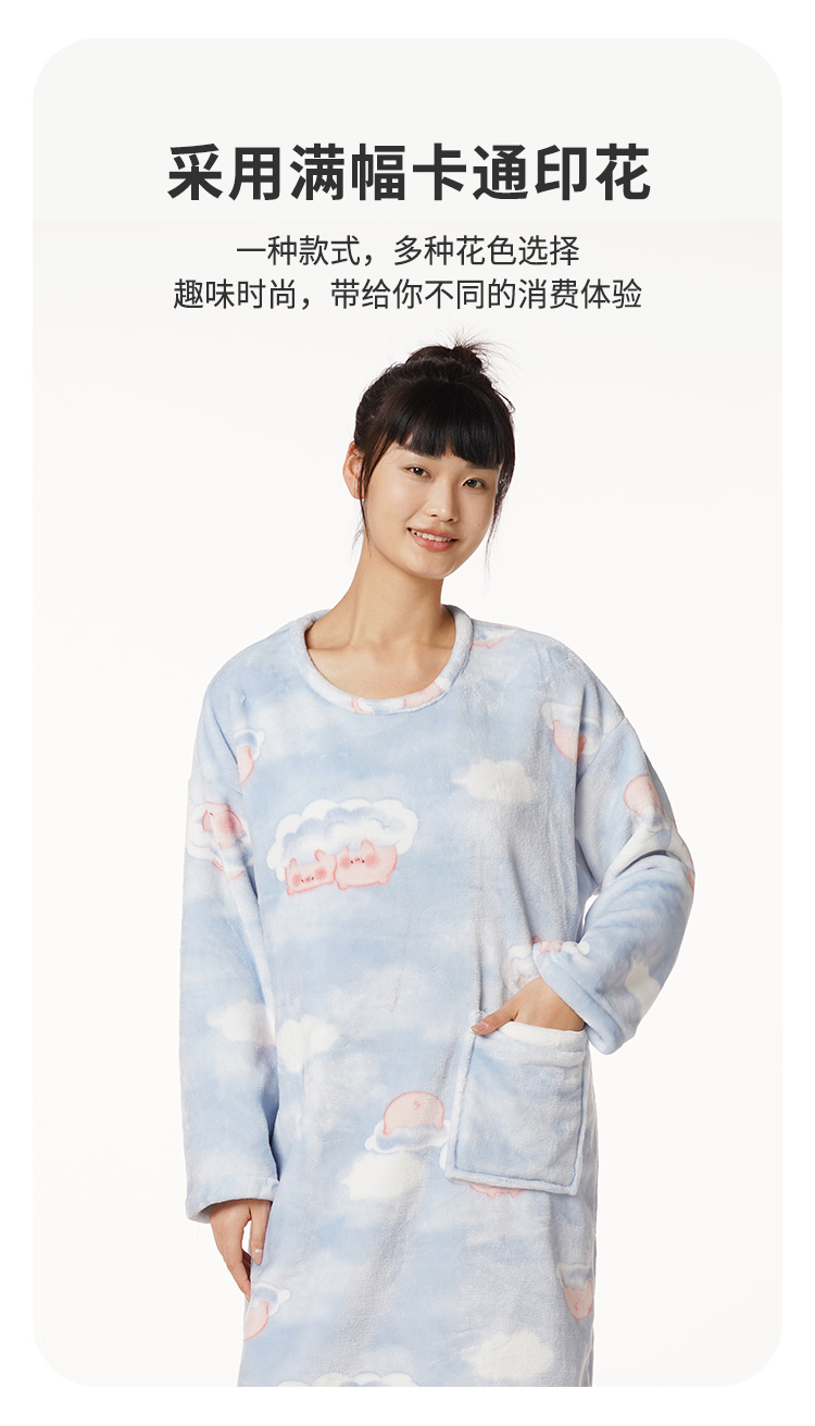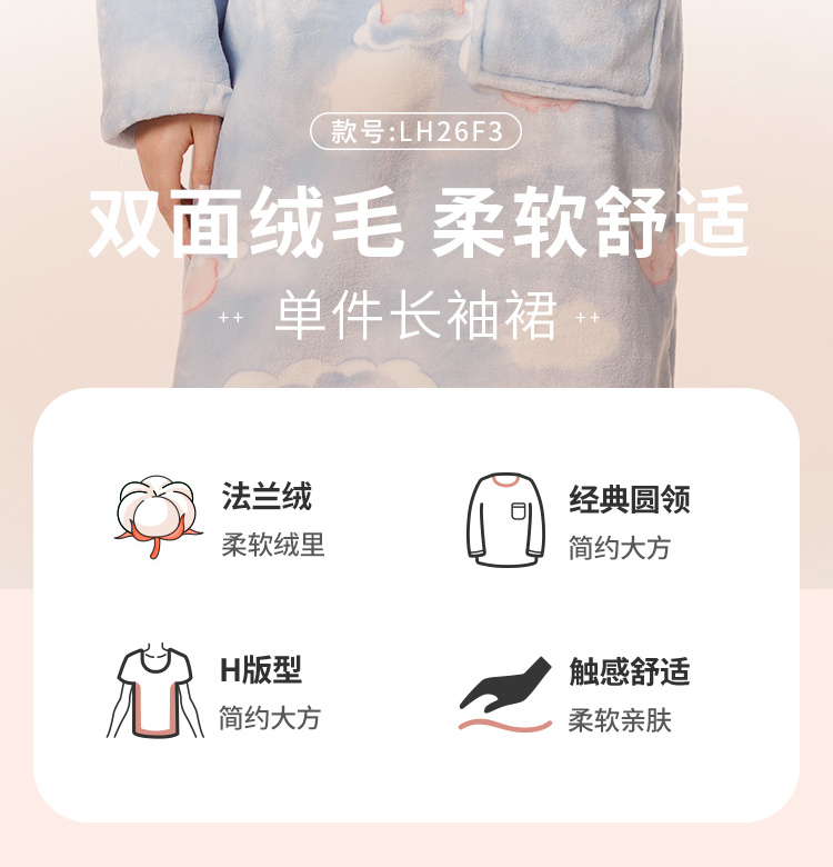 都市丽人生活家居女士特价法兰绒睡裙双面法兰绒厚家居服长袖裙睡衣LH26F3