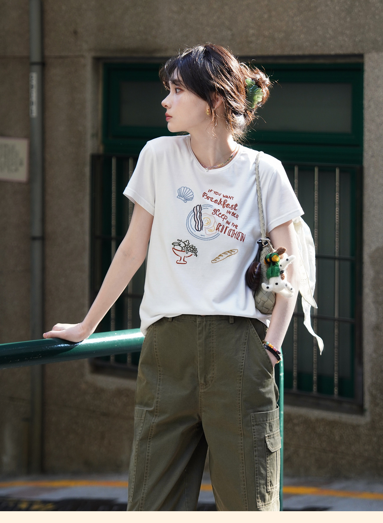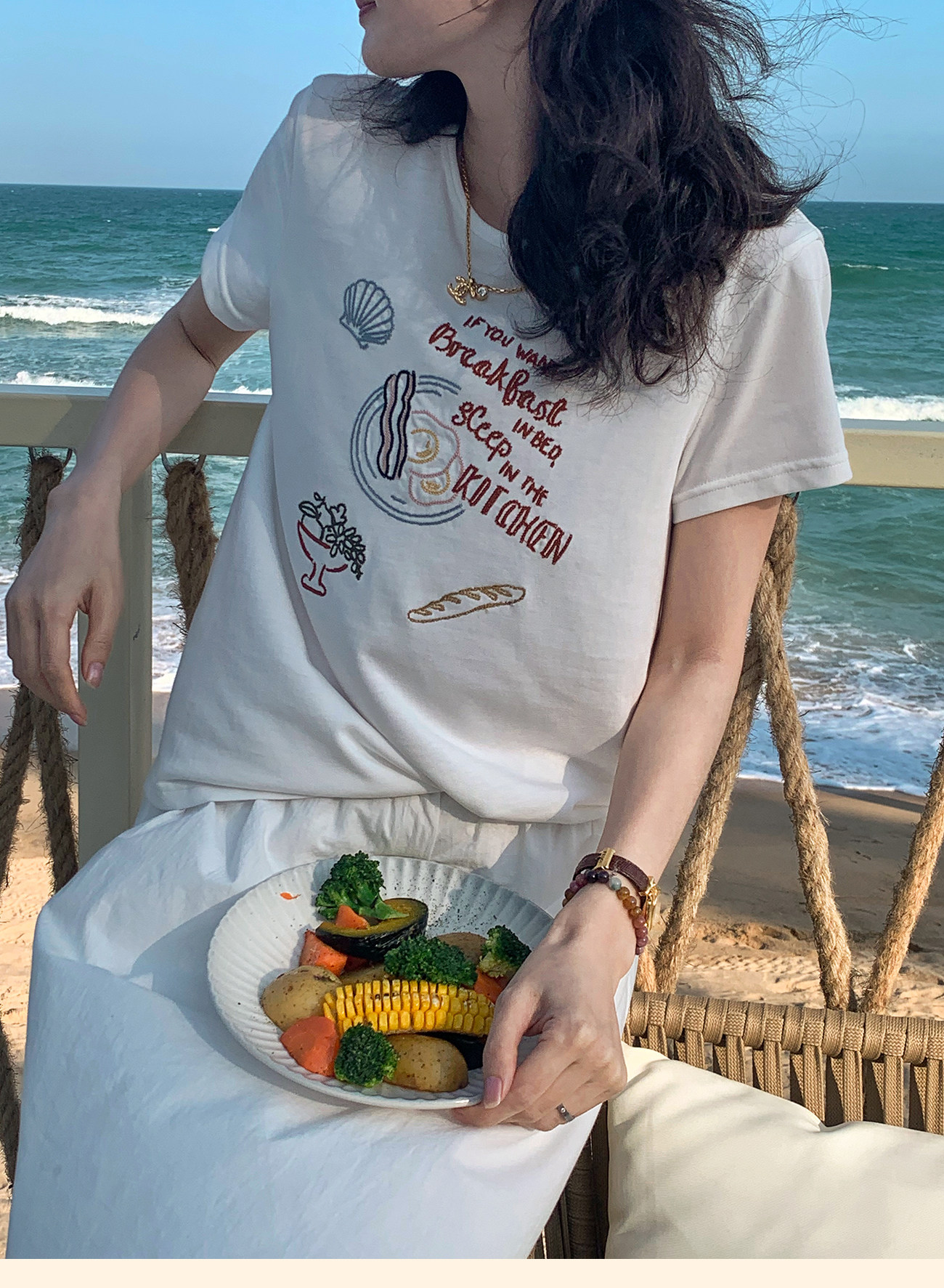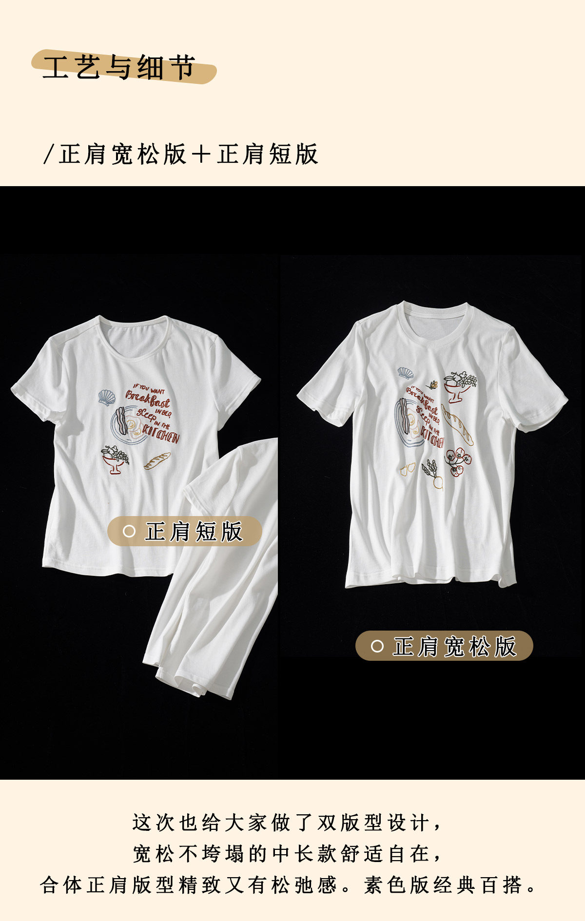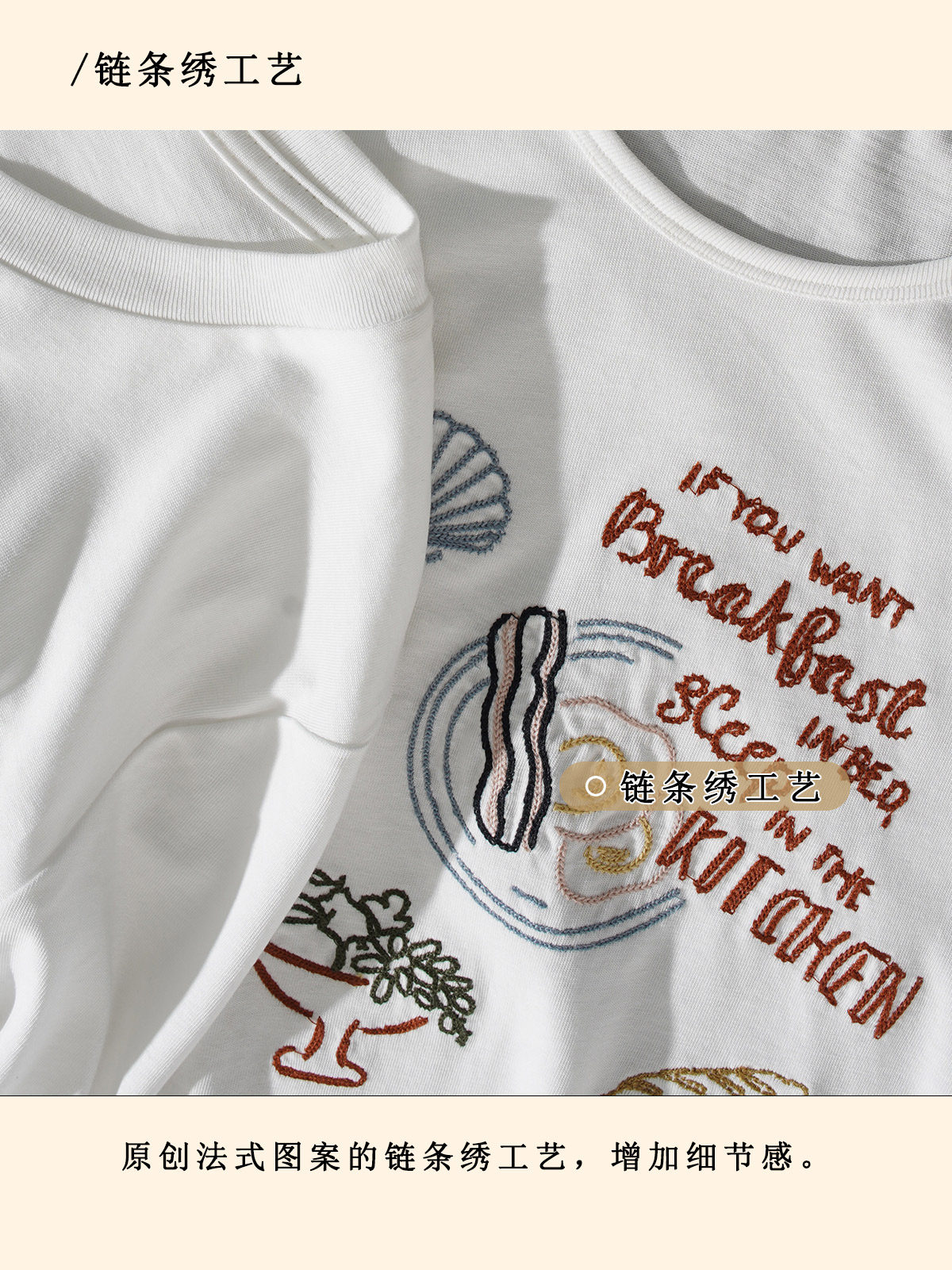 浮生八记/26A028/26A033/“莫奈的早餐”法式复古莫代尔棉彩色手绘刺绣短袖t恤