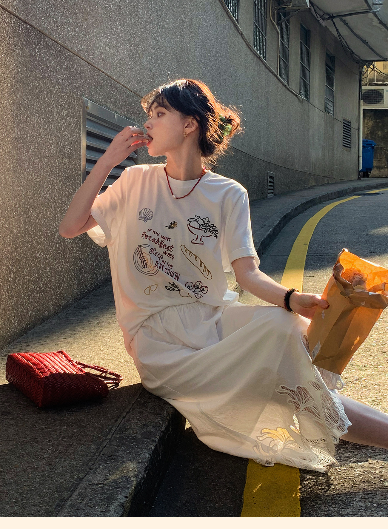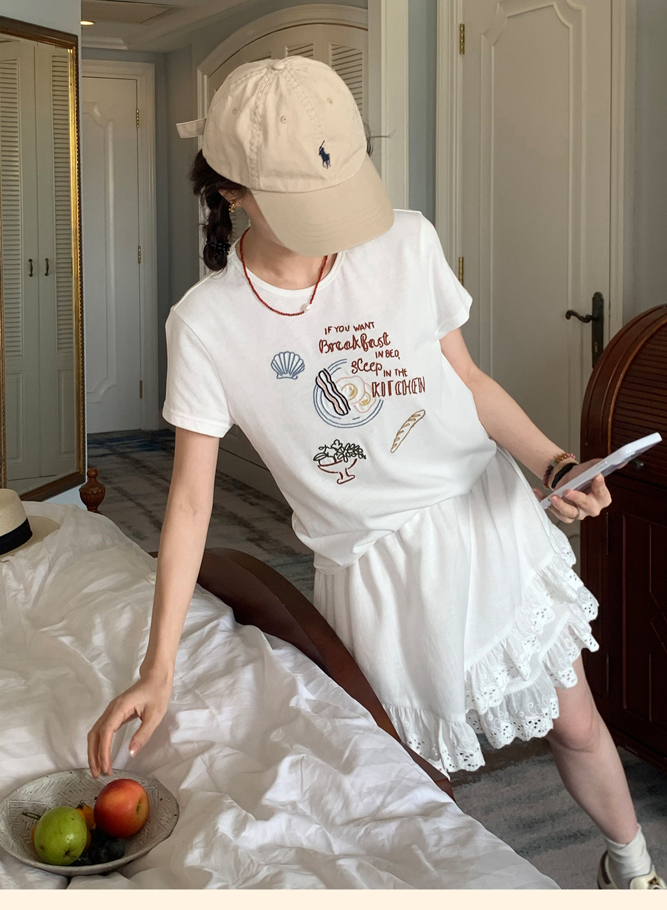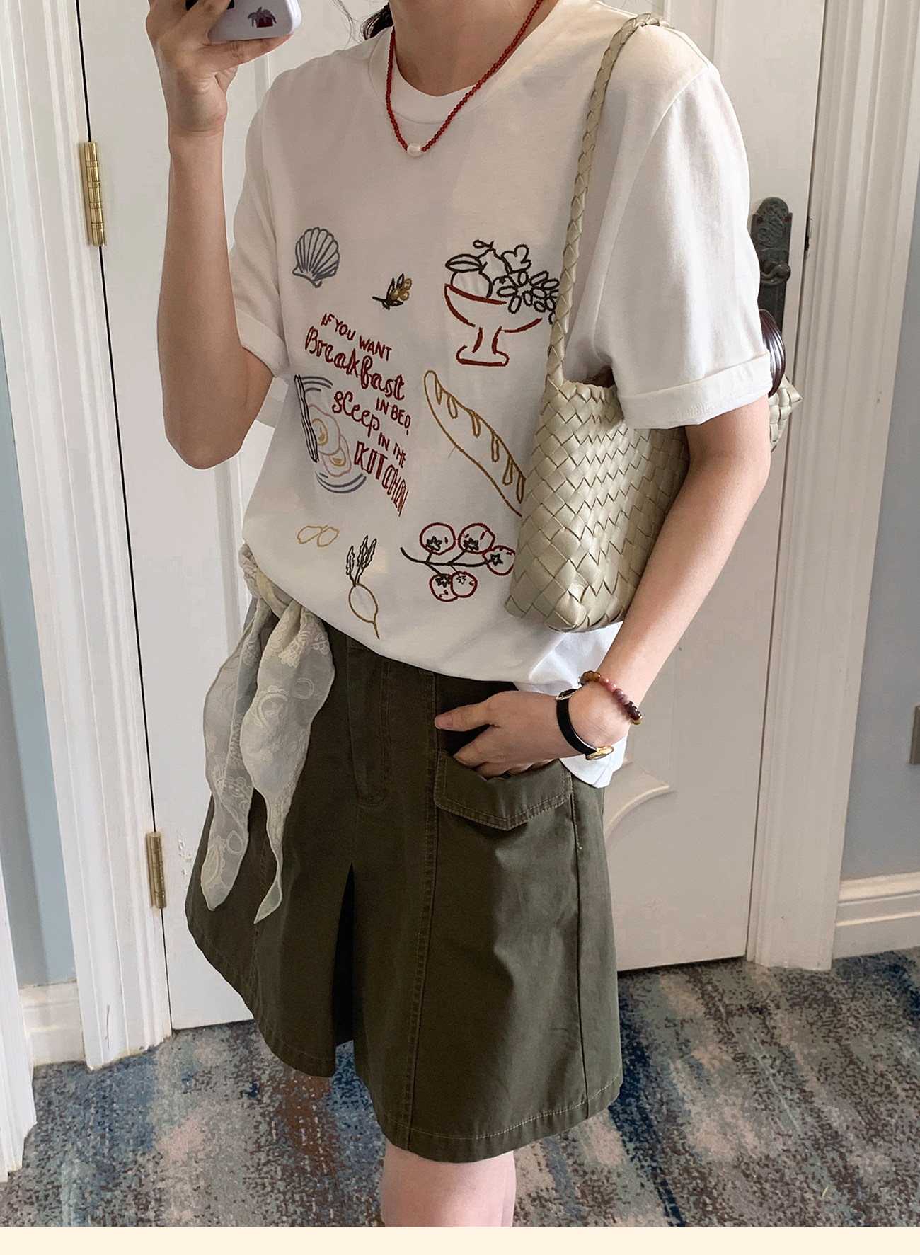 浮生八记/26A028/26A033/“莫奈的早餐”法式复古莫代尔棉彩色手绘刺绣短袖t恤