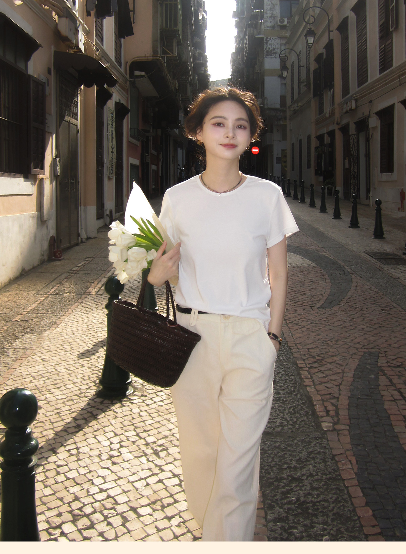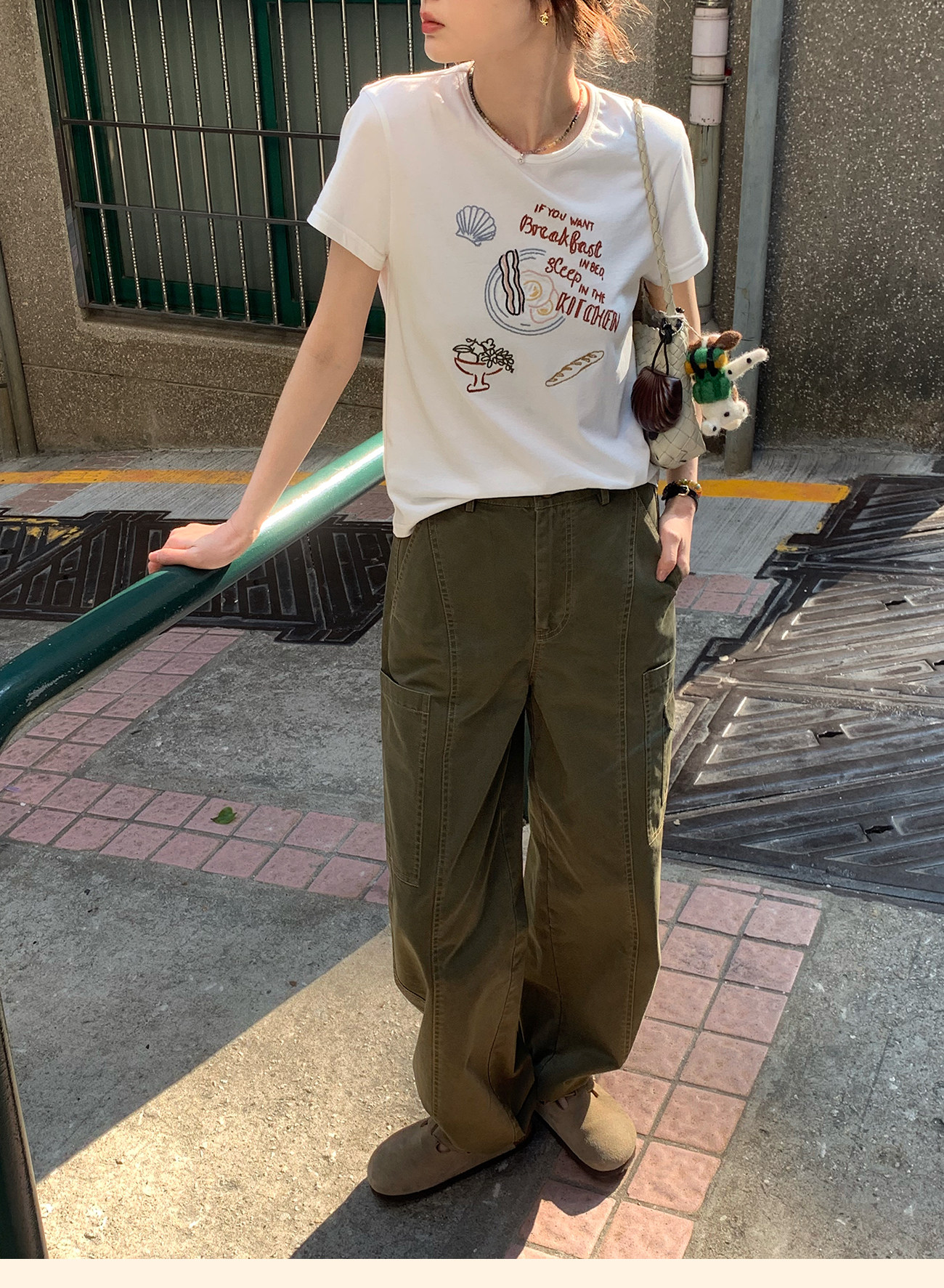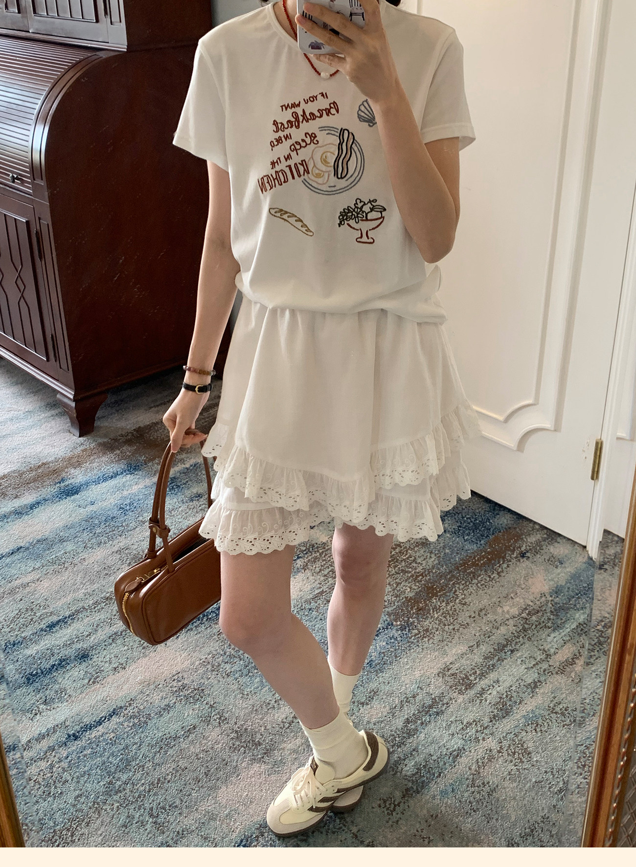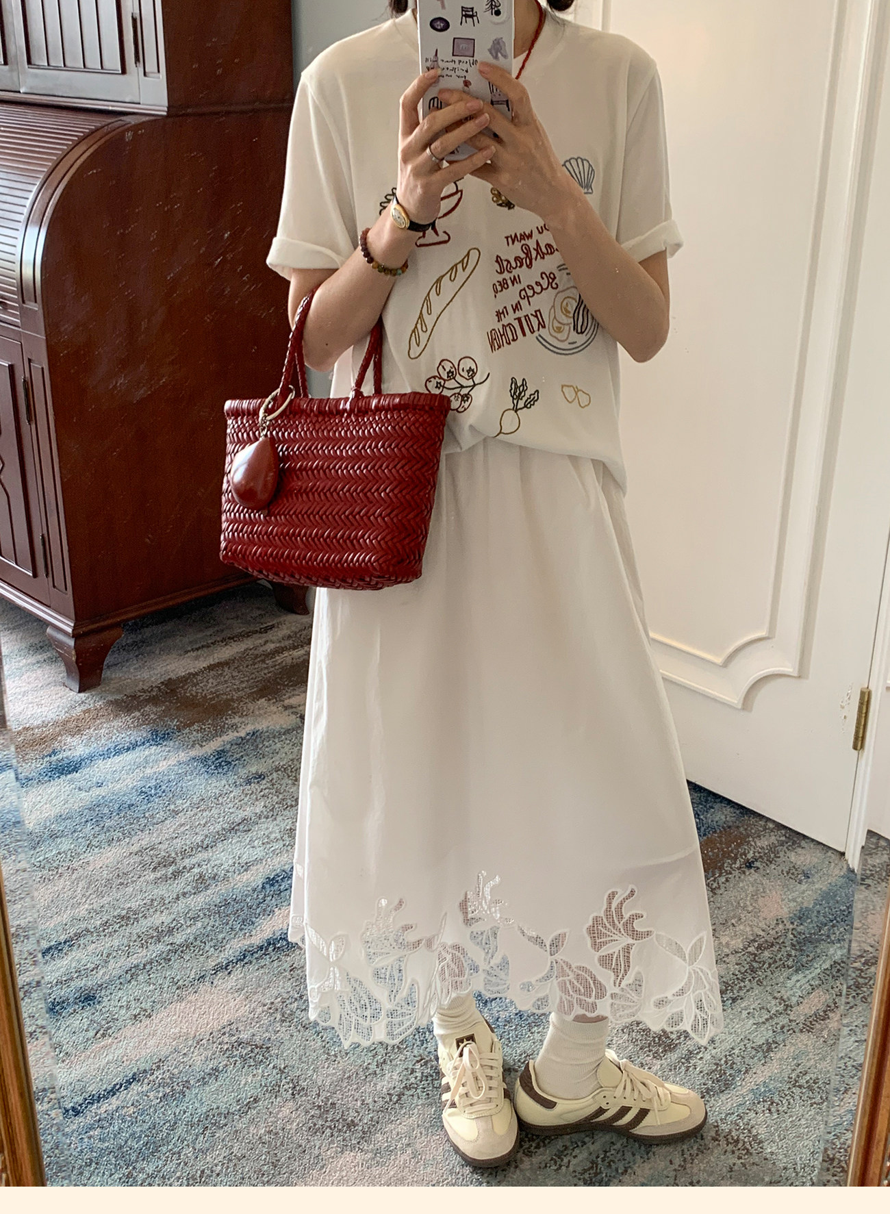 浮生八记/26A028/26A033/“莫奈的早餐”法式复古莫代尔棉彩色手绘刺绣短袖t恤