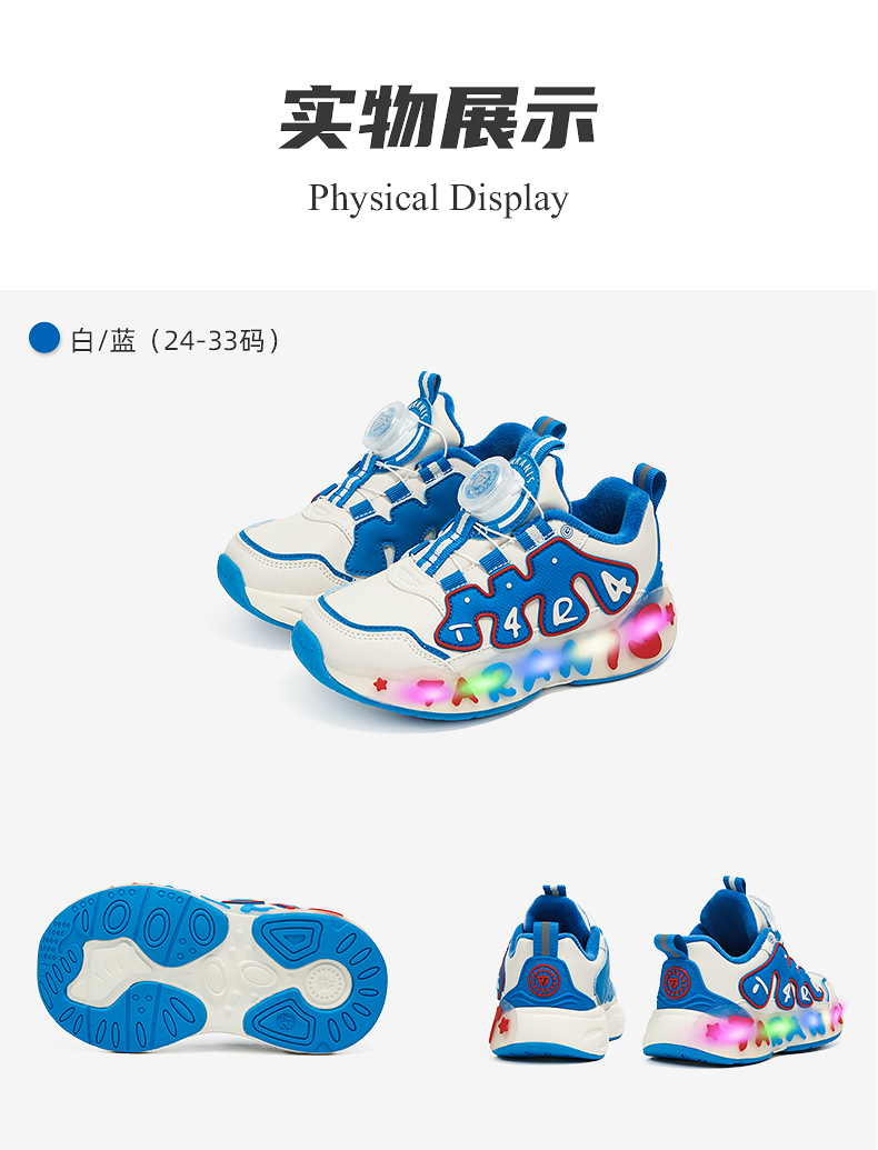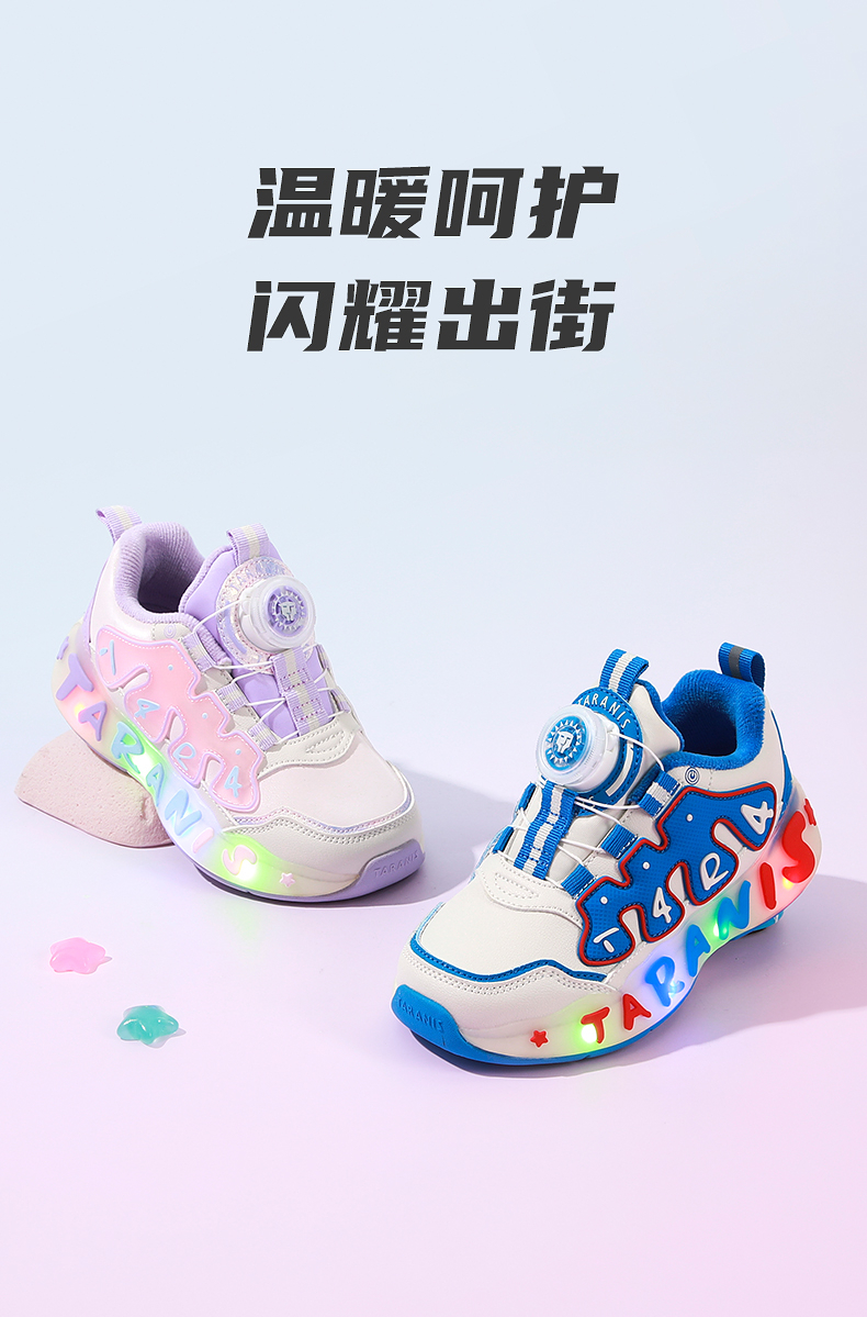 泰兰尼斯2025年冬季新款闪灯鞋男童加绒保暖女童旋钮扣可控开关发光鞋子 T01X5D6577